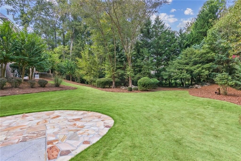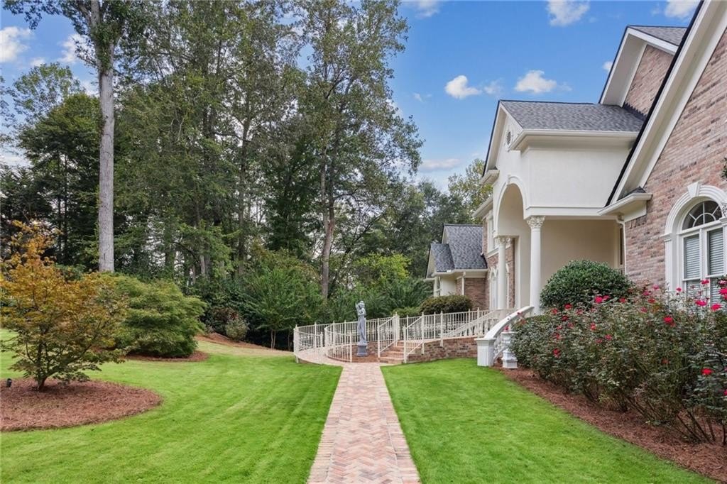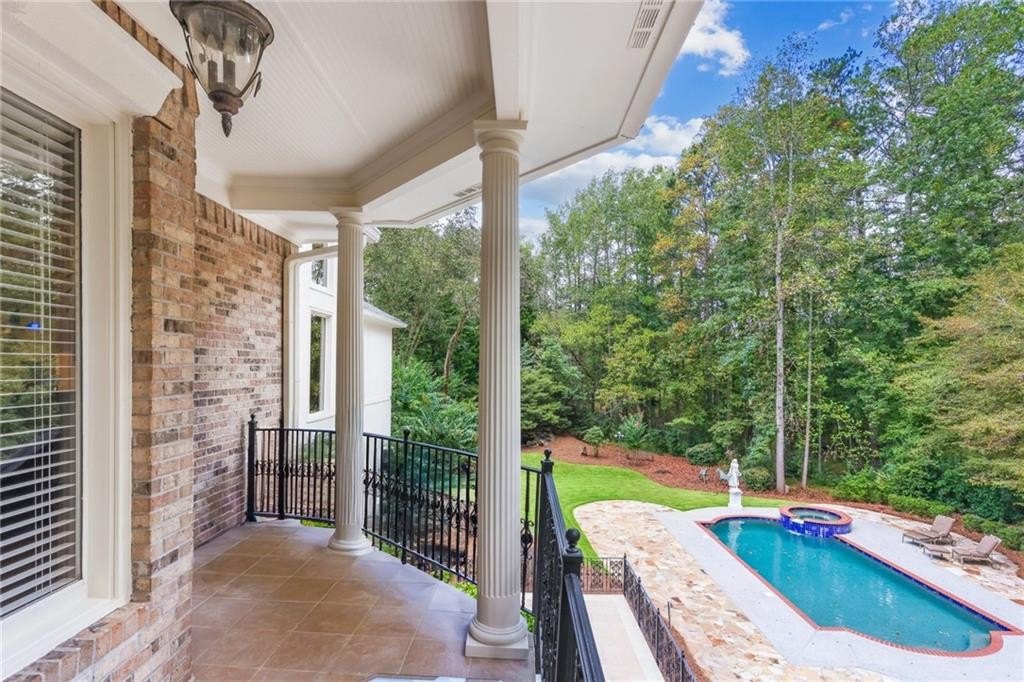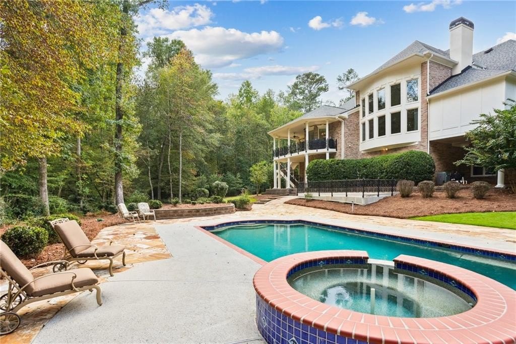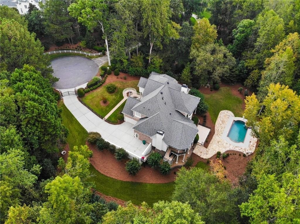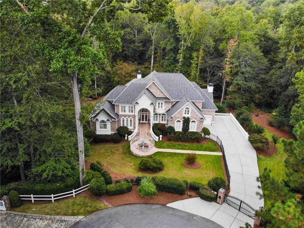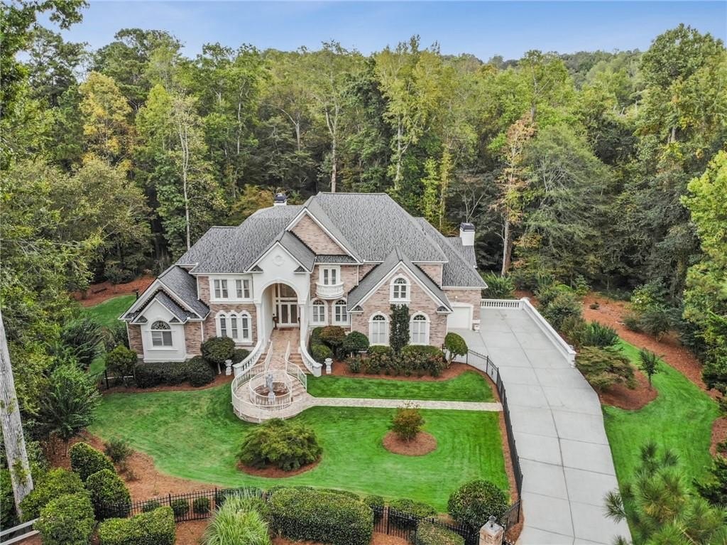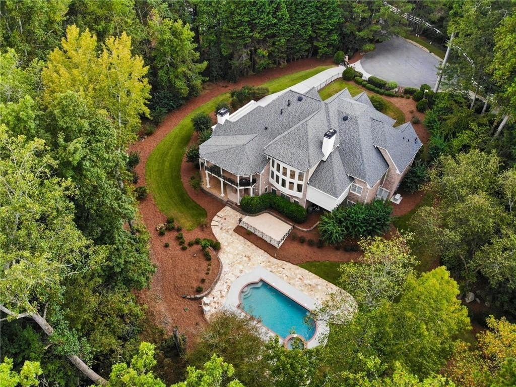 A private sanctuary just minutes from the city and 400. Nestled at the end of a quiet cul-de-sac on nearly 2 acres, this European-inspired retreat combines timeless elegance with complete privacy. A gentle stream winds behind the property, setting a tranquil tone the moment you arrive. The home offers a seamless balance of luxury and comfort. The main-level owner’s suite features vaulted ceilings and a spa-style bath, while the open-concept kitchen and keeping room flow naturally into the soaring two-story great room. With five bedrooms, five full baths, and a half bath, there’s abundant space for family and guests. Designed for both relaxation and entertaining, the property boasts a heated pool and spa, a covered porch overlooking the wooded landscape, and refined interior details including beamed ceilings, custom millwork, and three fireplaces. Though secluded and serene, the home is just minutes from top schools, shopping, and trails. It is more than a home — it’s a rare retreat where nature, privacy, and timeless design come together. Opportunities like this don’t come along often. Located in the Bluff community, the home offers quick access to top-rated schools, shopping, and greenway trails—all while feeling worlds away in its private, wooded setting.