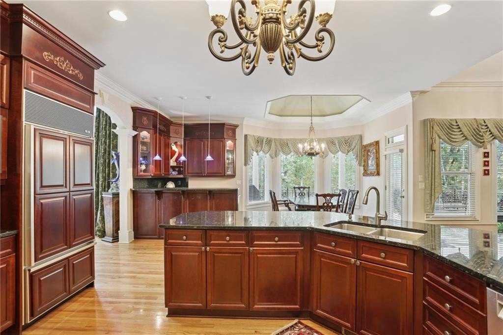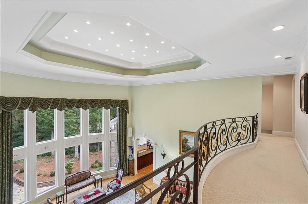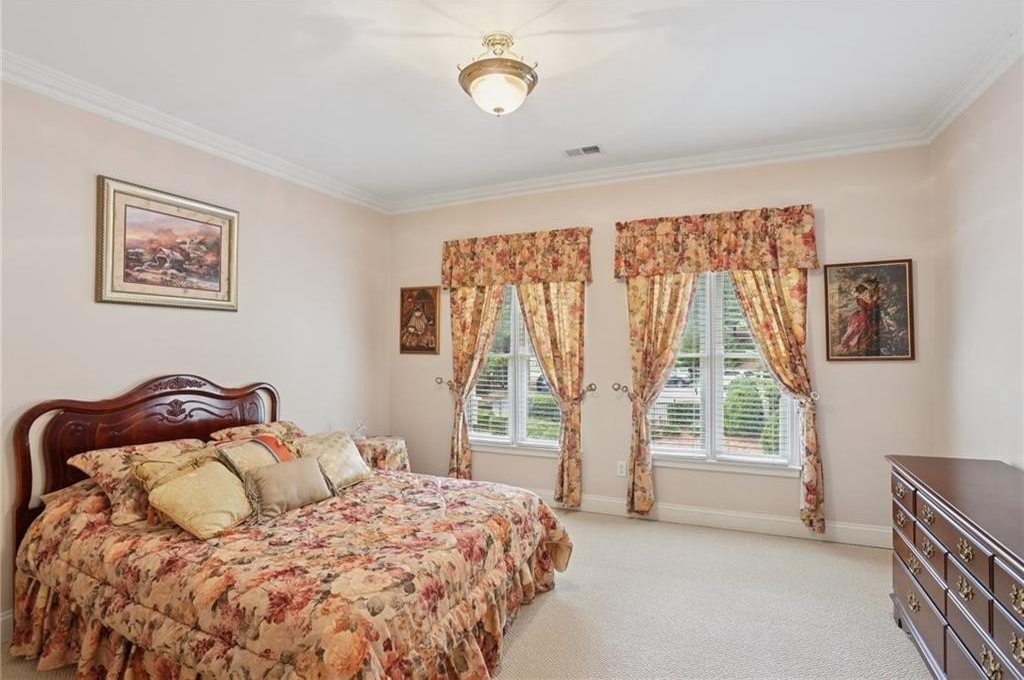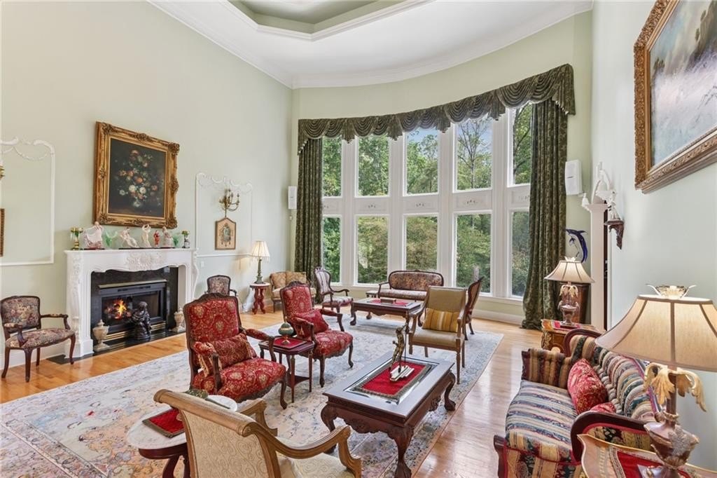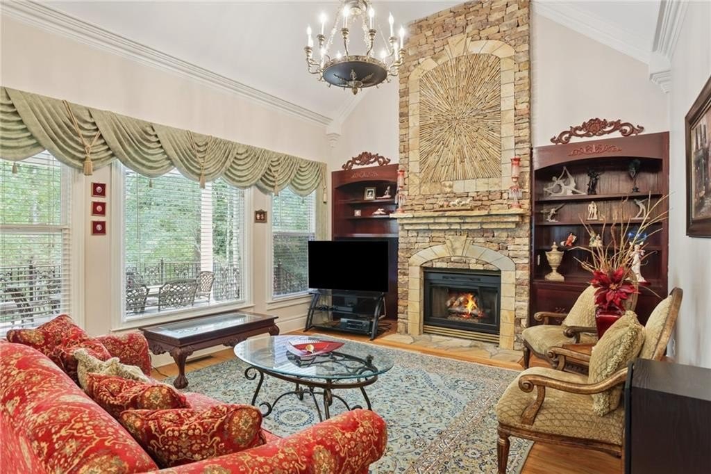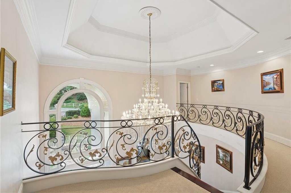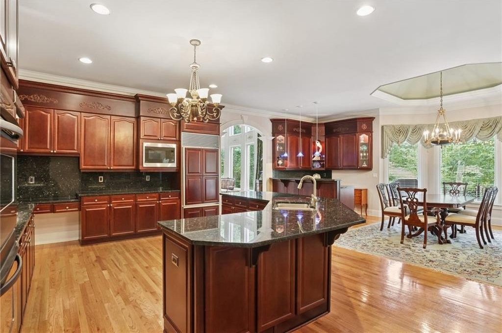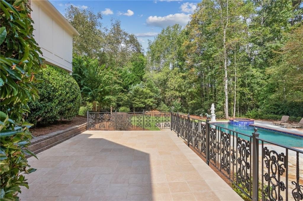 A private sanctuary just minutes from the city and 400. Nestled at the end of a quiet cul-de-sac on nearly 2 acres, this European-inspired retreat combines timeless elegance with complete privacy. A gentle stream winds behind the property, setting a tranquil tone the moment you arrive. The home offers a seamless balance of luxury and comfort. The main-level owner’s suite features vaulted ceilings and a spa-style bath, while the open-concept kitchen and keeping room flow naturally into the soaring two-story great room. With five bedrooms, five full baths, and a half bath, there’s abundant space for family and guests. Designed for both relaxation and entertaining, the property boasts a heated pool and spa, a covered porch overlooking the wooded landscape, and refined interior details including beamed ceilings, custom millwork, and three fireplaces. Though secluded and serene, the home is just minutes from top schools, shopping, and trails. It is more than a home — it’s a rare retreat where nature, privacy, and timeless design come together. Opportunities like this don’t come along often. Located in the Bluff community, the home offers quick access to top-rated schools, shopping, and greenway trails—all while feeling worlds away in its private, wooded setting.