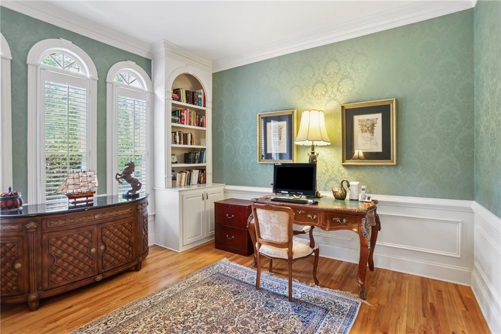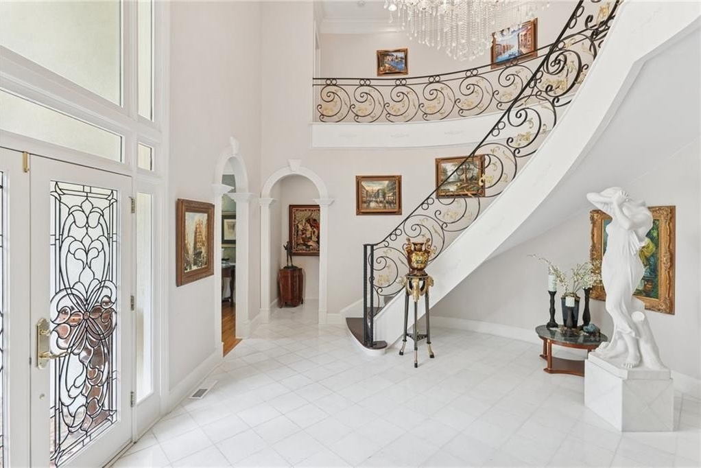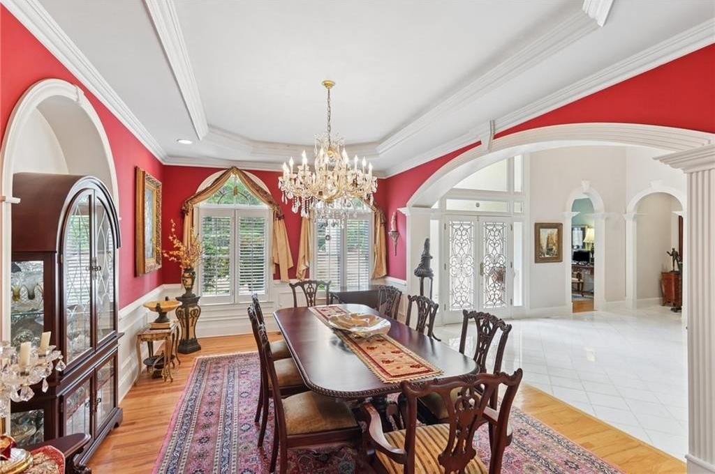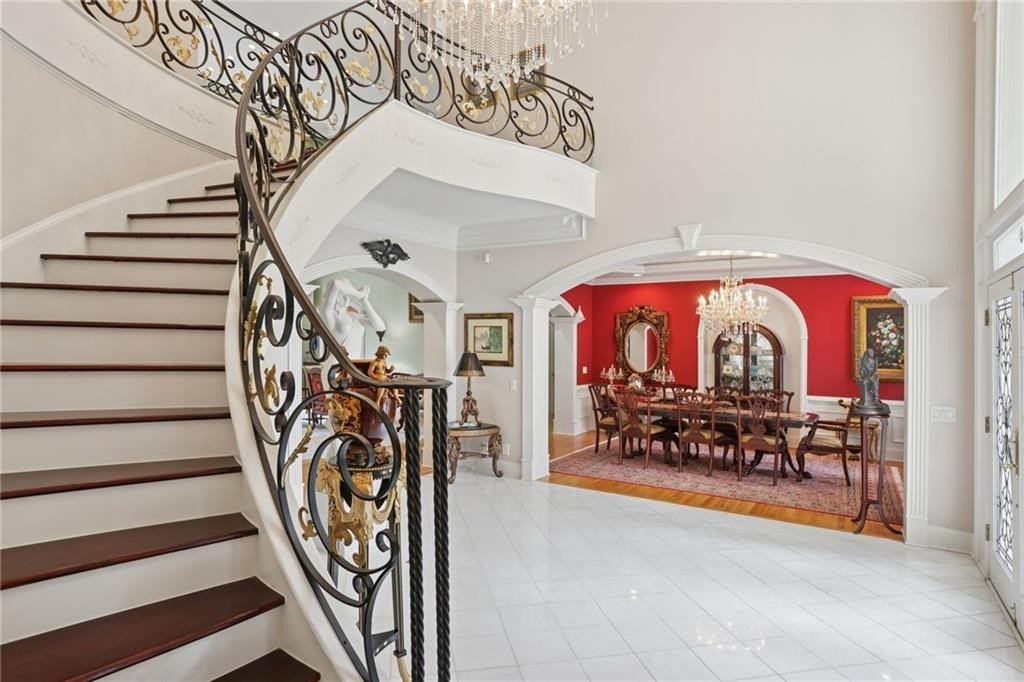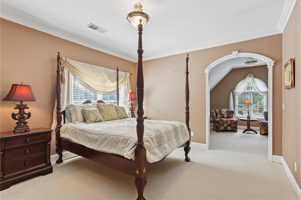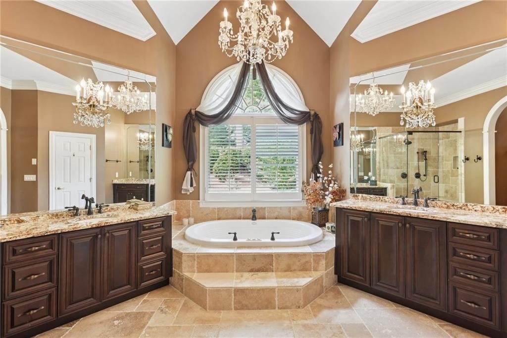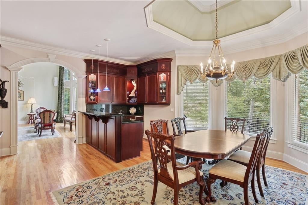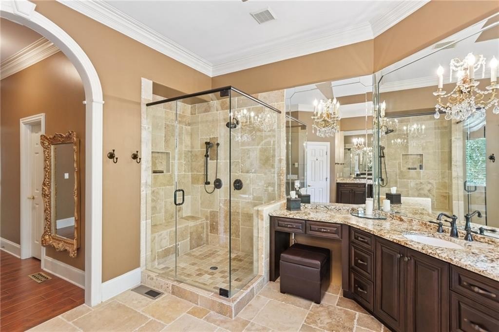 A private sanctuary just minutes from the city and 400. Nestled at the end of a quiet cul-de-sac on nearly 2 acres, this European-inspired retreat combines timeless elegance with complete privacy. A gentle stream winds behind the property, setting a tranquil tone the moment you arrive. The home offers a seamless balance of luxury and comfort. The main-level owner’s suite features vaulted ceilings and a spa-style bath, while the open-concept kitchen and keeping room flow naturally into the soaring two-story great room. With five bedrooms, five full baths, and a half bath, there’s abundant space for family and guests. Designed for both relaxation and entertaining, the property boasts a heated pool and spa, a covered porch overlooking the wooded landscape, and refined interior details including beamed ceilings, custom millwork, and three fireplaces. Though secluded and serene, the home is just minutes from top schools, shopping, and trails. It is more than a home — it’s a rare retreat where nature, privacy, and timeless design come together. Opportunities like this don’t come along often. Located in the Bluff community, the home offers quick access to top-rated schools, shopping, and greenway trails—all while feeling worlds away in its private, wooded setting.