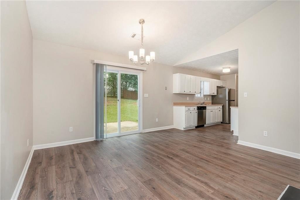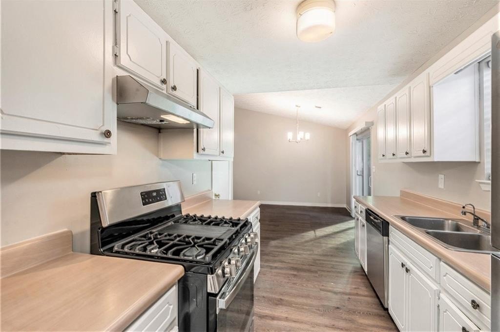 dining area, creating an airy flow ideal for gatherings. The galley kitchen features