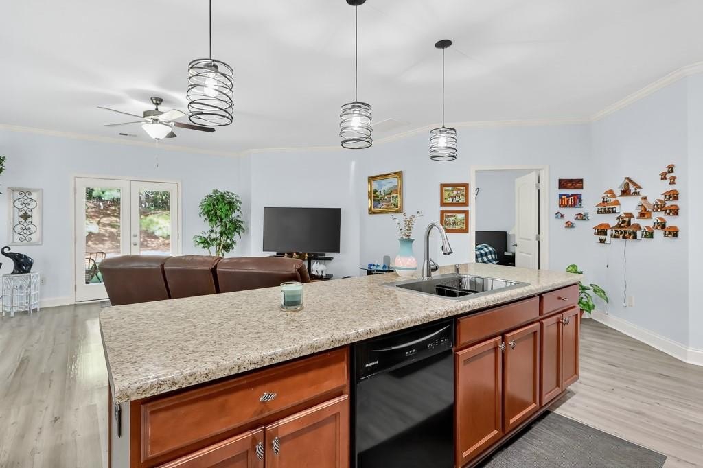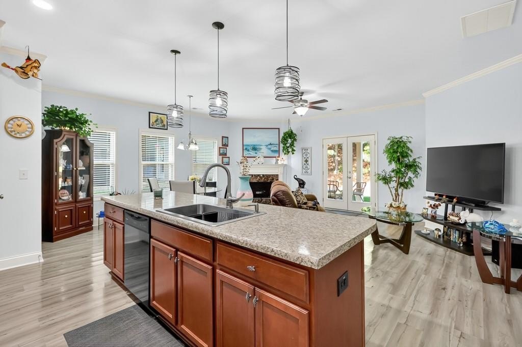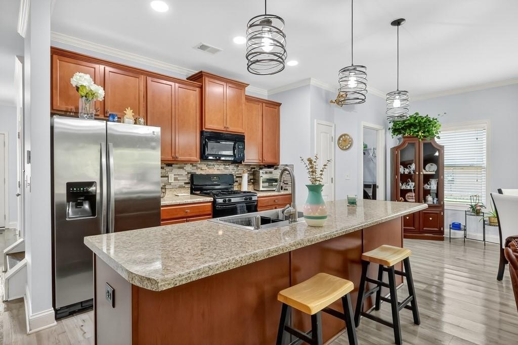lighting, and a lovely flowing floor plan. The kitchen has granite countertops, stainless steel appliances, an extra-large island, and plenty of