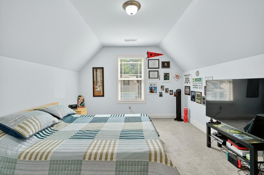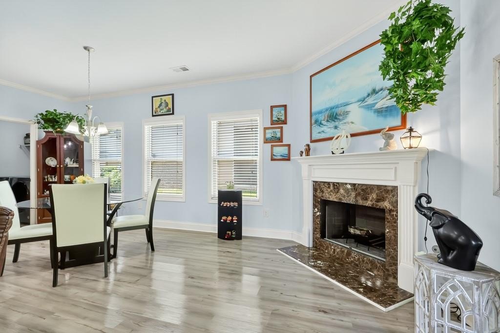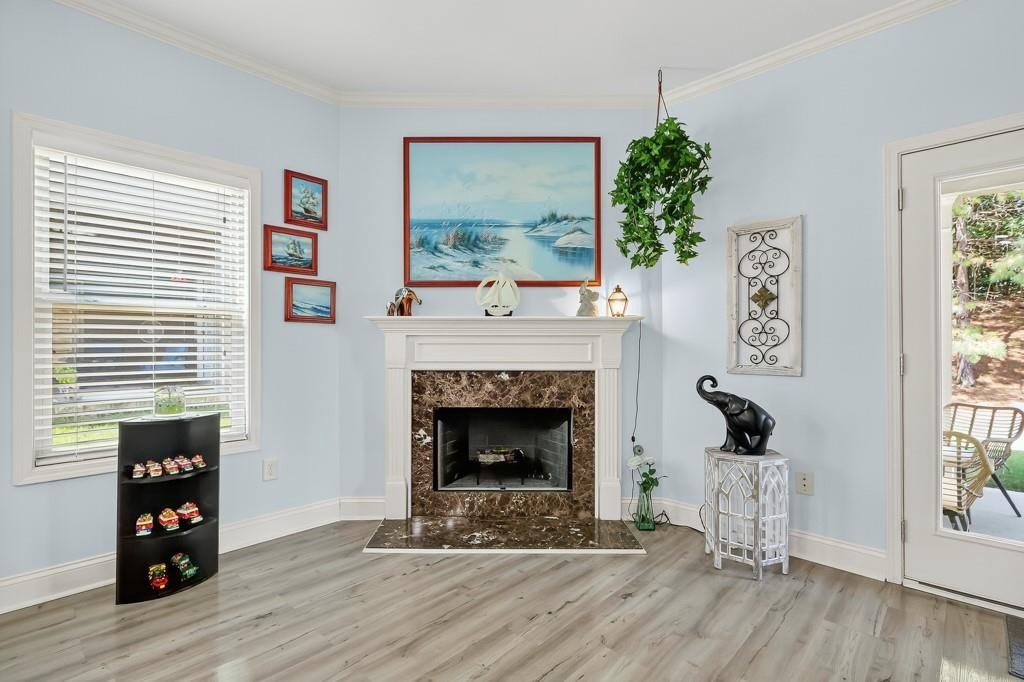 bath upstairs, perfect for guests or multigenerational living. Beautiful open floor plan with vaulted ceilings, marble fireplace, updated