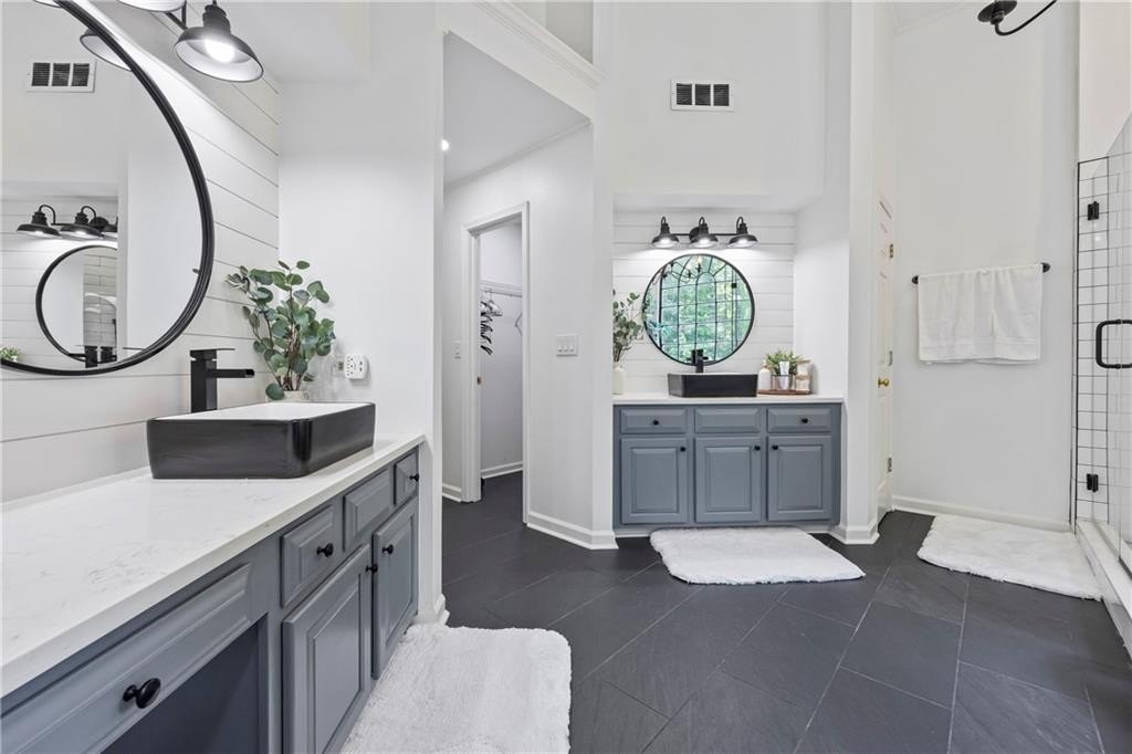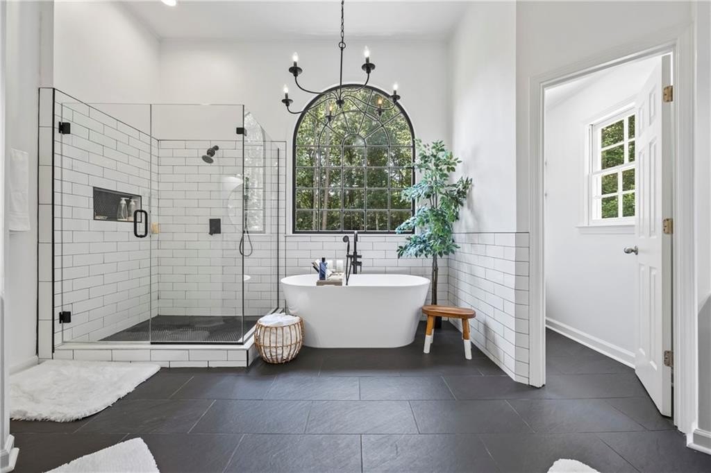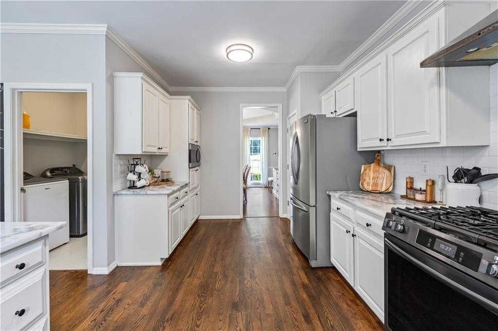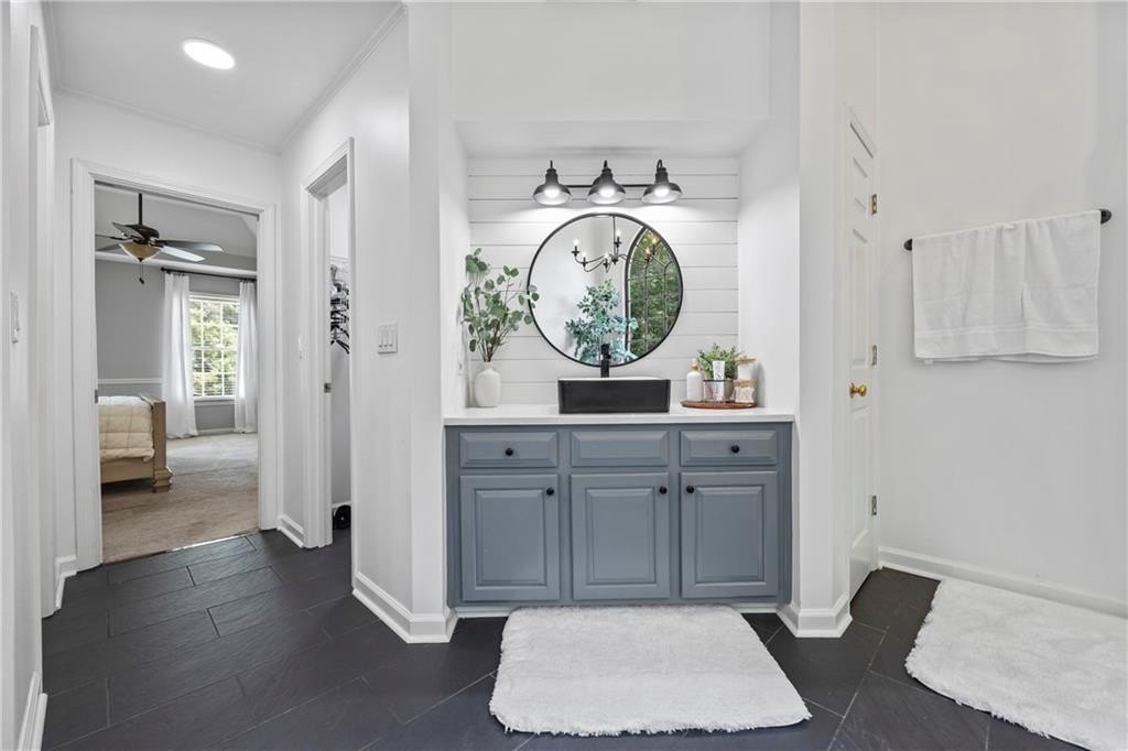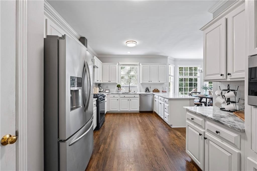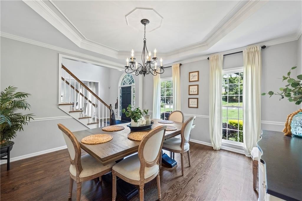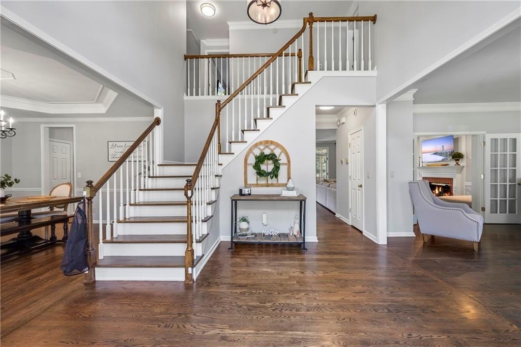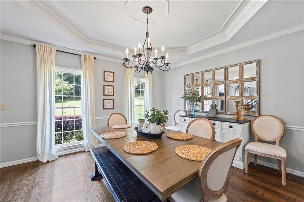 Welcome to this beautifully updated 5-bedroom, 2.5-bath home located in the sought-after Edgewater community. Sitting on nearly an acre, this spacious Traditional-style residence offers over 3,400?sq?ft of living space with tasteful modern upgrades throughout. Enjoy a remodeled kitchen featuring granite countertops, stainless-steel appliances, and custom cabinetry—perfect for cooking and entertaining. Bathrooms have been stylishly renovated with ceramic tile flooring and upscale fixtures. Elegant hardwood flooring flows throughout the main living areas, adding warmth and sophistication. This home boasts a two-story foyer, formal living and dining rooms, a cozy family room with fireplace and built-ins, partially finished basement ideal for a rec room or home office. The oversized primary suite includes vaulted ceilings, a spa-style bath with jetted tub, and a walk-in closet.Step outside to a large, private backyard surrounded by mature trees, perfect for relaxing or entertaining. The property also includes a 2-car garage and sits on a quiet, well-maintained street. Community amenities offer resort-style living with a clubhouse, swimming pool, tennis courts, walking trails, and a scenic lake. Conveniently located near top-rated schools, shopping at Mall of Georgia, parks, and major highways for easy commuting.