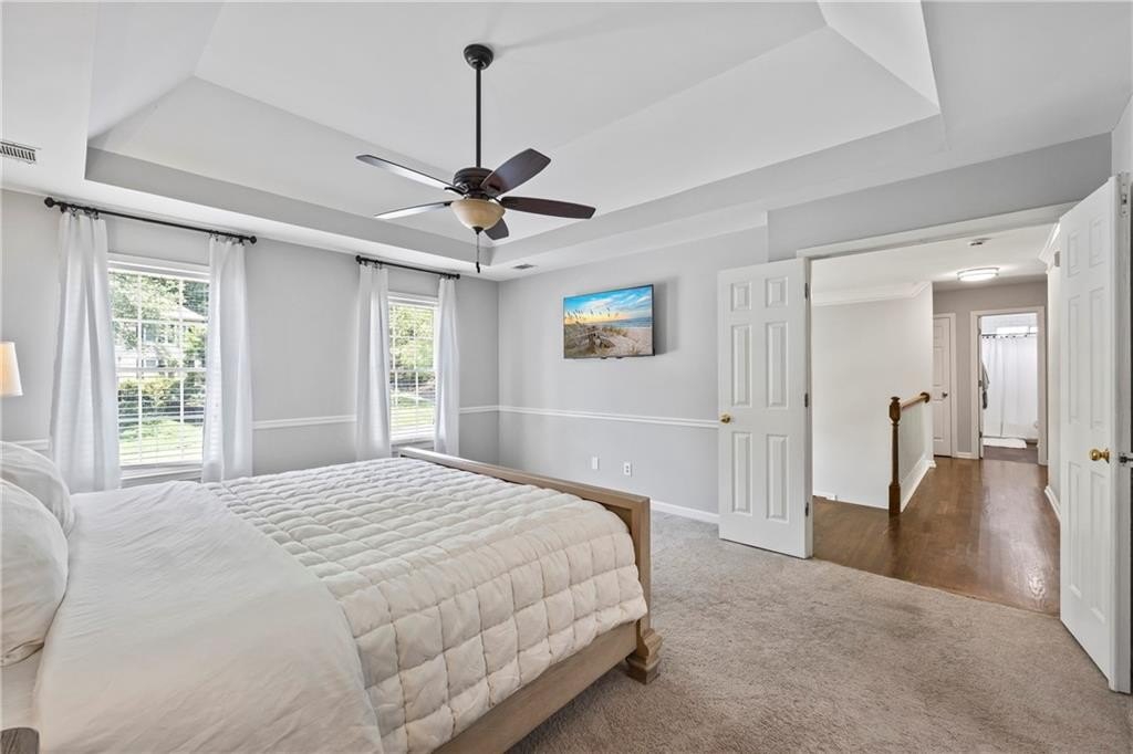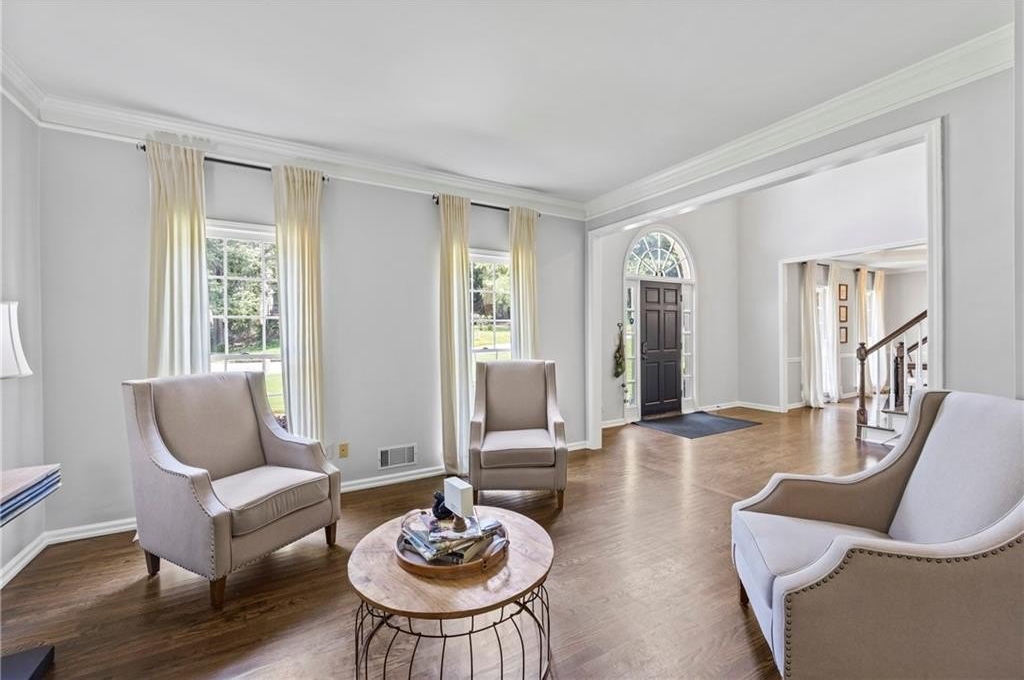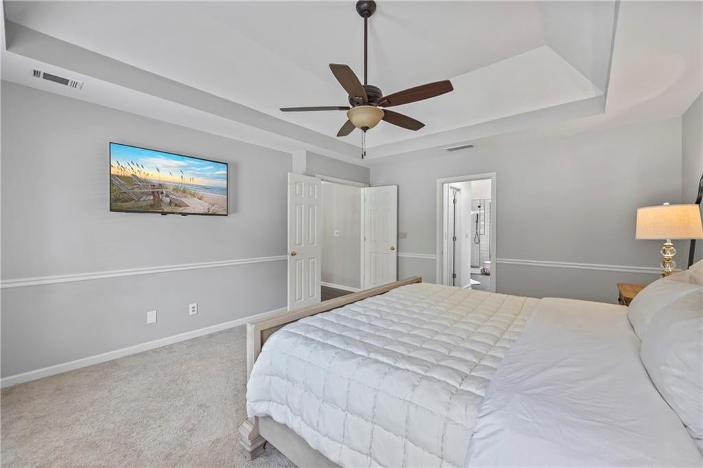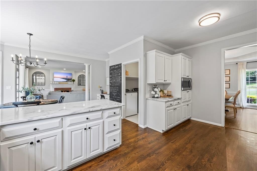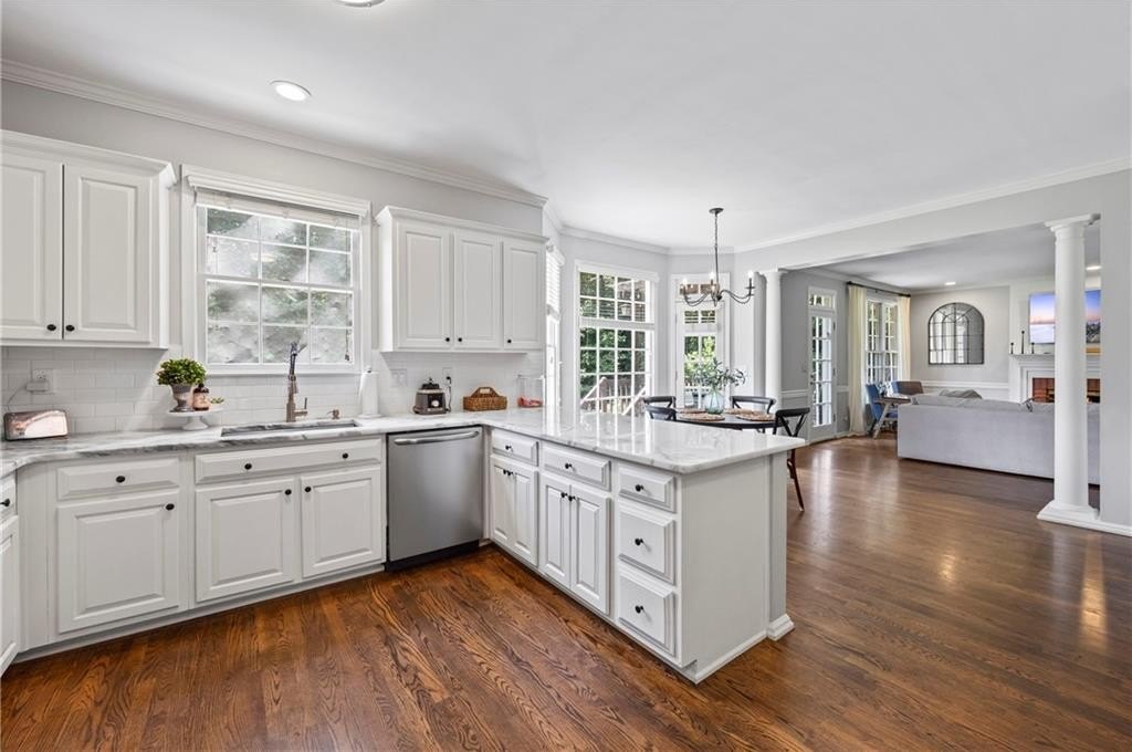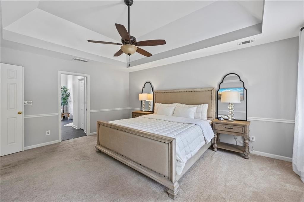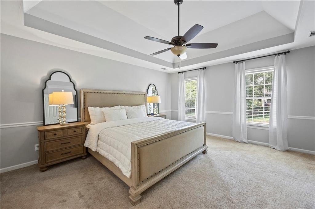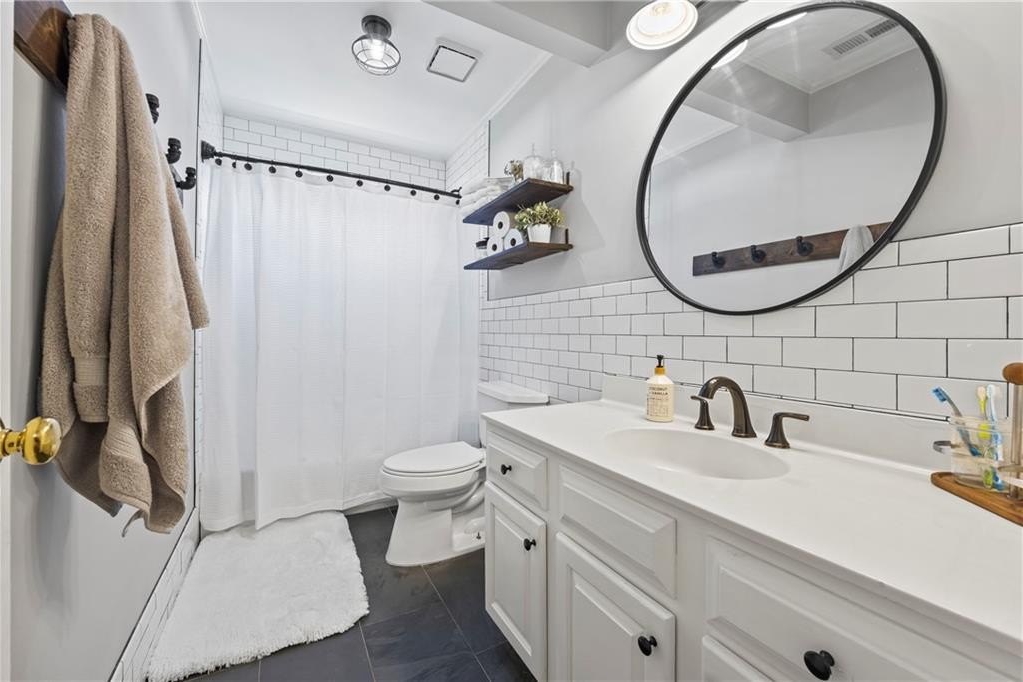 Welcome to this beautifully updated 5-bedroom, 2.5-bath home located in the sought-after Edgewater community. Sitting on nearly an acre, this spacious Traditional-style residence offers over 3,400?sq?ft of living space with tasteful modern upgrades throughout. Enjoy a remodeled kitchen featuring granite countertops, stainless-steel appliances, and custom cabinetry—perfect for cooking and entertaining. Bathrooms have been stylishly renovated with ceramic tile flooring and upscale fixtures. Elegant hardwood flooring flows throughout the main living areas, adding warmth and sophistication. This home boasts a two-story foyer, formal living and dining rooms, a cozy family room with fireplace and built-ins, partially finished basement ideal for a rec room or home office. The oversized primary suite includes vaulted ceilings, a spa-style bath with jetted tub, and a walk-in closet.Step outside to a large, private backyard surrounded by mature trees, perfect for relaxing or entertaining. The property also includes a 2-car garage and sits on a quiet, well-maintained street. Community amenities offer resort-style living with a clubhouse, swimming pool, tennis courts, walking trails, and a scenic lake. Conveniently located near top-rated schools, shopping at Mall of Georgia, parks, and major highways for easy commuting.