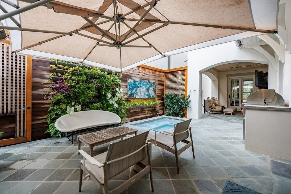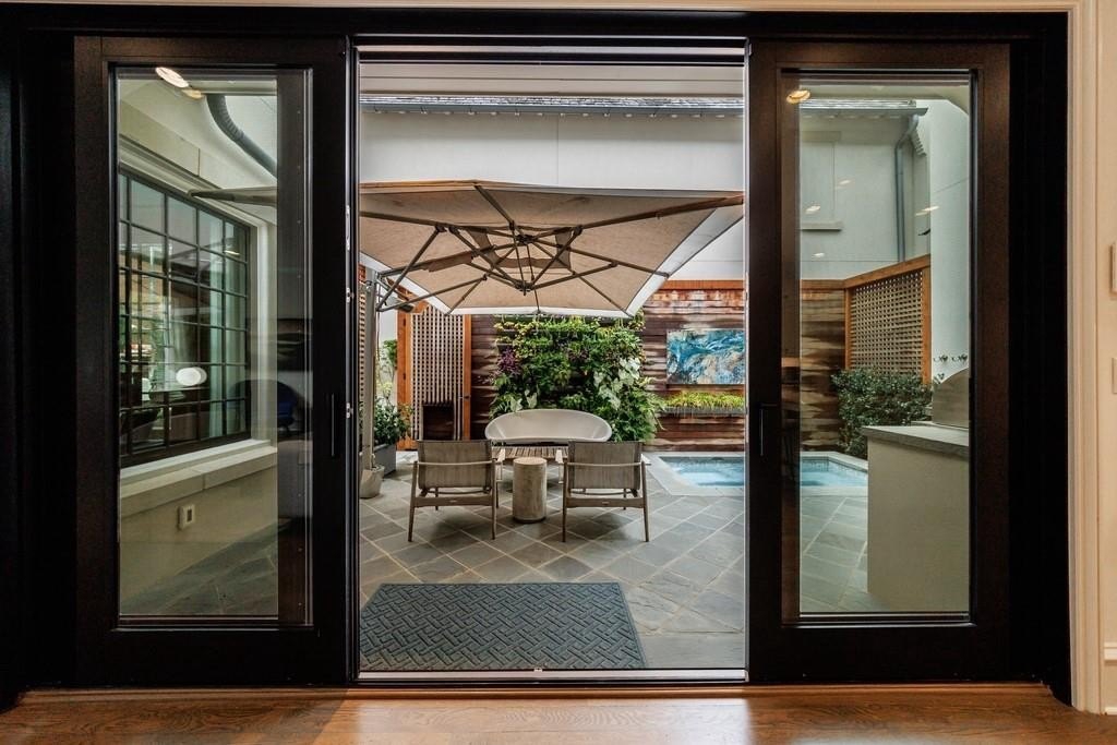 This beautifully appointed residence offers privacy, luxury, and thoughtful design inside and out. One of the few detached homes in St. Andrews, it features a stunning private courtyard with mature landscaping, a living plant wall, hot tub, covered patio, grilling station, and a small turf yard—perfect for pets.