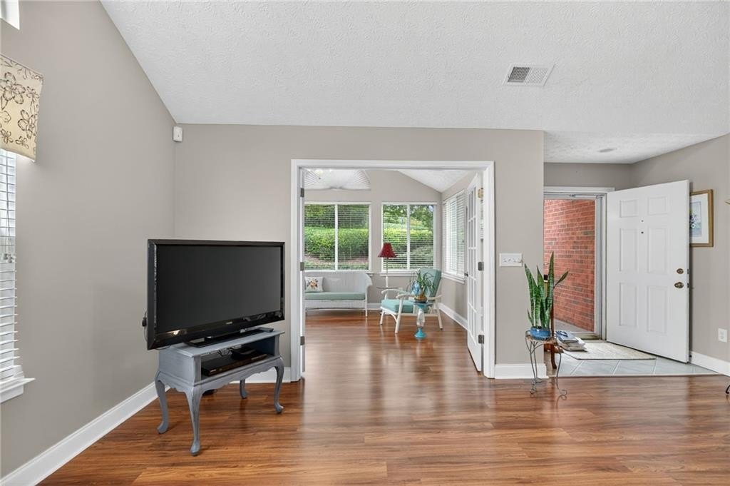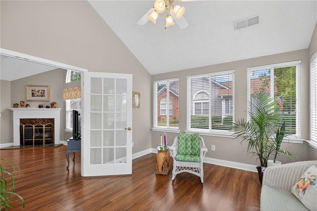 Step into this beautifully bright and inviting home, where natural light welcomes you the moment you arrive! Designed with comfort and ease in mind, this stepless layout offers spacious, open-concept living perfect for everyday enjoyment and entertaining. The flowing floor plan seamlessly connects the family room, dining area, and kitchen—ideal for gathering and connection. The primary suite is a serene retreat, featuring a dual-sink vanity, a generous walk-in shower, and an expansive walk-in closet. Enjoy brand-new carpet (installed September 2025) in both the primary and secondary bedrooms, adding a fresh touch throughout. Need a little extra space? A flexible office or potential third bedroom gives you options, and the charming sunroom—complete with doors for added privacy—provides the perfect place to relax or create a cozy nook. Storage cabinets in the garage remain. The community clubhouse has a library and a workout room. So much to enjoy! Set within a vibrant and welcoming community, you're just minutes from Kennesaw State University, shopping, and fantastic dining options. Come see all the possibilities this wonderful home has to offer!