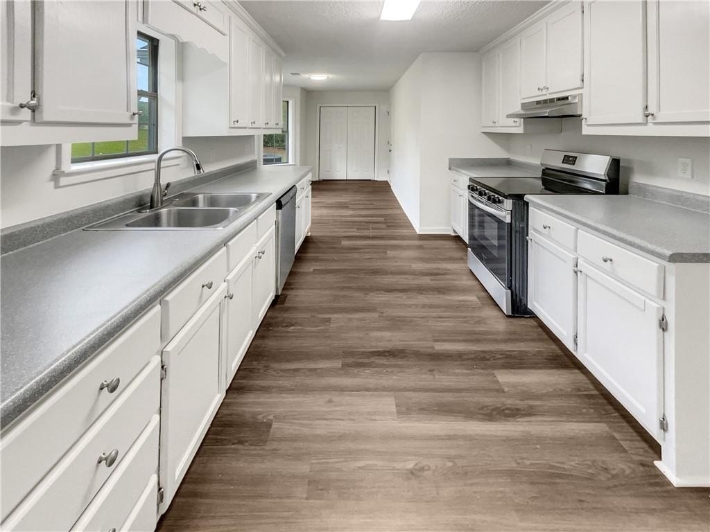 elegant touch. The galley-style eat-in kitchen is equipped with stainless steel appliances and