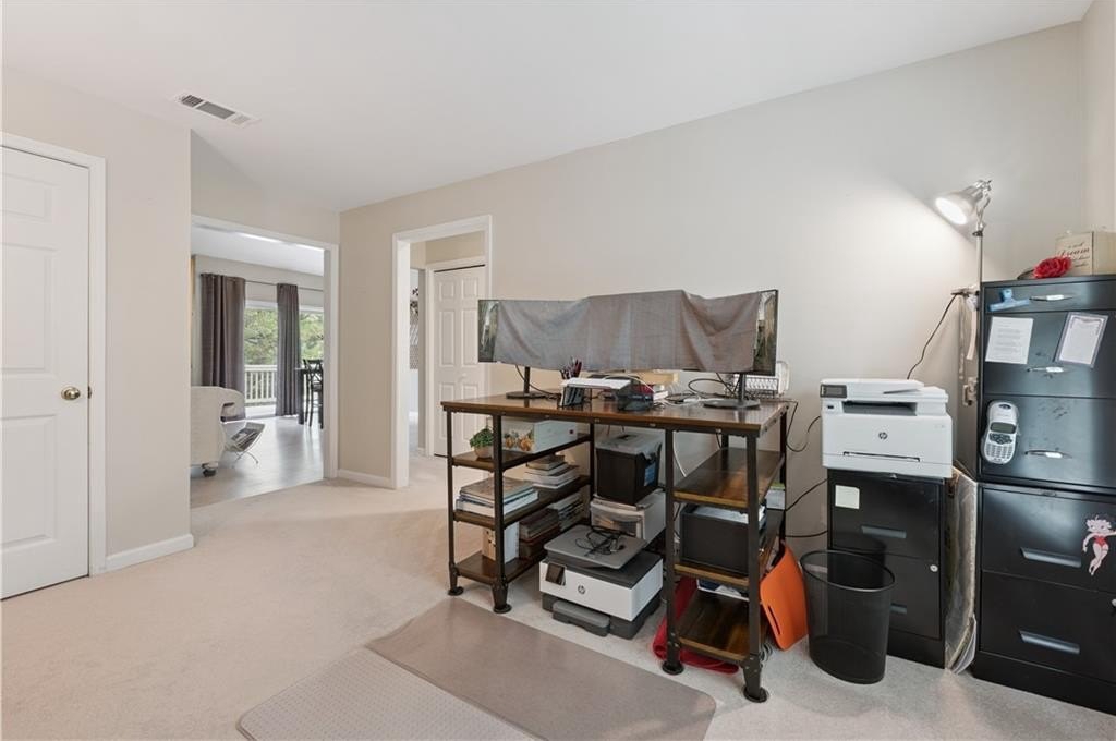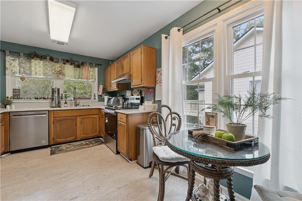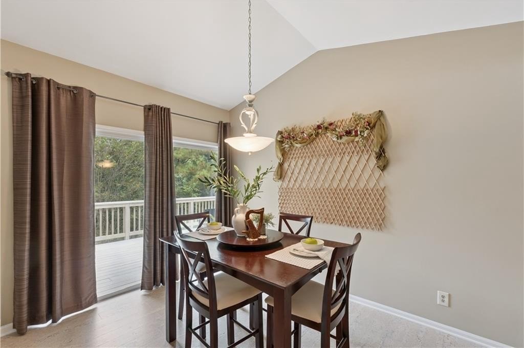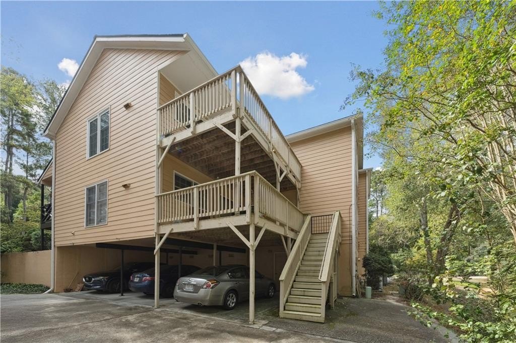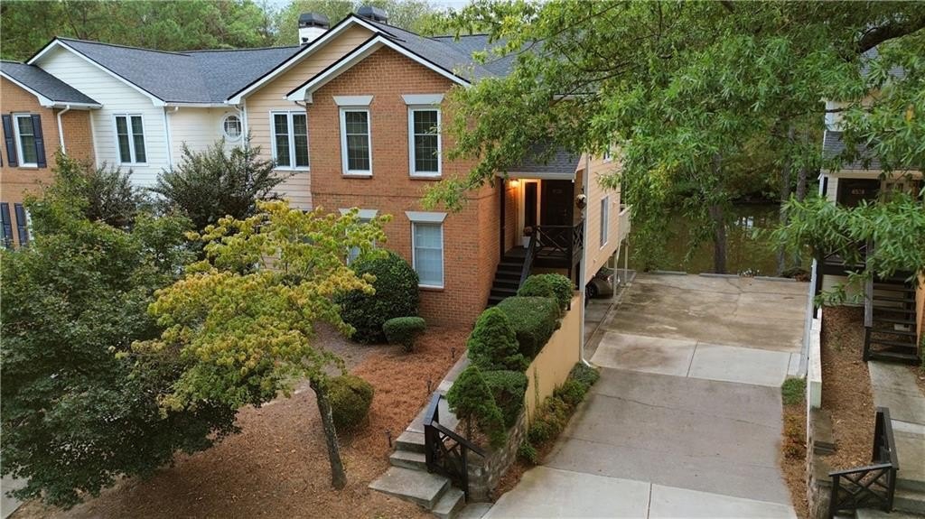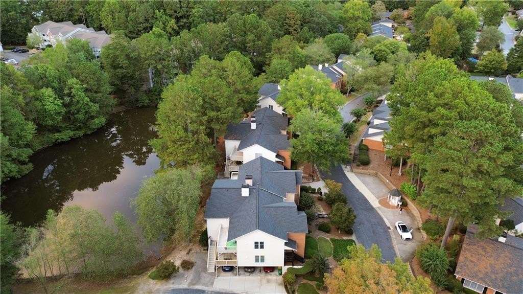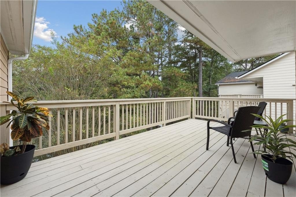 LAKE LIVING! Escape the traffic and concrete jungle and come home to your own private oasis surrounded by nature. Imagine relaxing on your partially covered back deck, overlooking the water, where every day feels like you’re watching the nature channel—only it’s your very own backyard. This 3BR/2 BA townhome offers bright, open living with a spacious fireside family room offering direct access to the back deck and lake views. The eat-in kitchen shines with brand-new Whirlpool stove/oven combo, stainless steel vent hood, SS dishwasher, and sleek quartz stone countertops. The open concept Dining Area allows for flexibility for entertaining but yet is perfect for those intimate family dinners. The kitchen, dining area, family room and foyer feature Gypcrete backing with eco-friendly Cork Flooring—enhancing comfort, high durability, resilience, hypoallergenic resistance to allergens, plus excellent thermal insulation and sound absorption. At the end of the day discover the spacious master retreat with spa-like Master bath sporting granite countertops and freshly stained cabinets, offering the perfect place to unwind. The secondary bedrooms are carpeted and cozy, with a second full bath, making it ideal for guests or family. Additional perks include a warm gas-log fireplace, covered parking with extra storage below, and the ultimate lifestyle upgrade—a brand-new community pool is already HOA approved and in the process of construction. Deerings Lake is a beautifully maintained community with a tree-lined entry, serene walking trails, pool, and green space—all just minutes from The Forum, Town Center, shopping, dining, and top-rated schools. With easy access to I-285, GA-400, and Peachtree Industrial, convenience meets tranquility. Don’t miss this rare lakefront opportunity in the heart of Peachtree Corners—where every day feels like paradise!