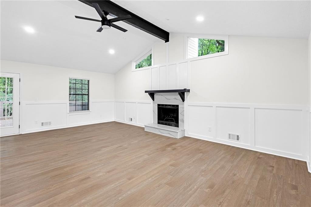 Seller incentives available! Don’t miss out on the $10k towards your Closing Costs at full price offer. Your future home is waiting... This FULLY renovated gem is in the heart of Stone Mountain! This stylish split-level home offers a flexible layout with 3 spacious bedrooms and 2 modern bathrooms upstairs. Downstairs, a private bonus suite with its own entrance, full bath, and second kitchen offers endless potential—perfect for in-laws, guests, a home business, or rental income. The open-concept main level showcases a designer kitchen with an elegant island, brand-new cabinetry, quartz countertops, upgraded lighting, and crown molding that flows into a bright dining area and oversized family room. The statement quartz fireplace adds warmth and character—ideal for cozy nights or entertaining. Fresh interior and exterior paint, new flooring throughout, and thoughtful updates make this home truly move-in ready. Step outside to a large, fenced backyard with an expansive deck—ideal for hosting or relaxing. Conveniently located near Hwy 78, shopping, dining, and local parks, this home blends comfort, style, and income potential.