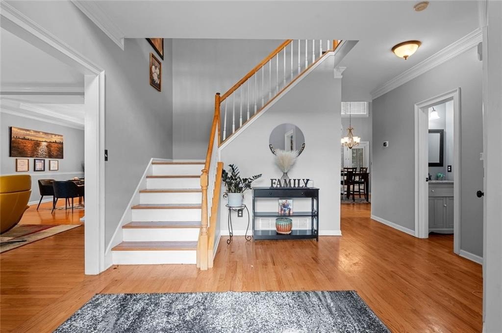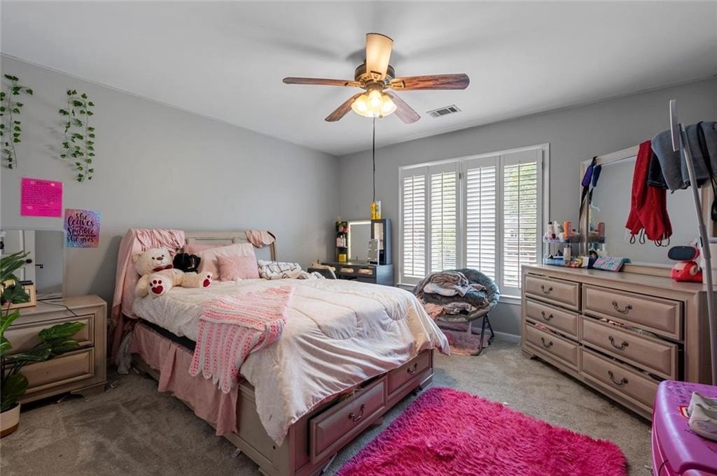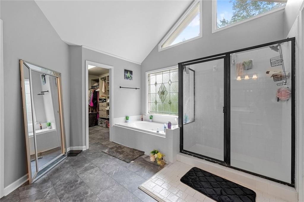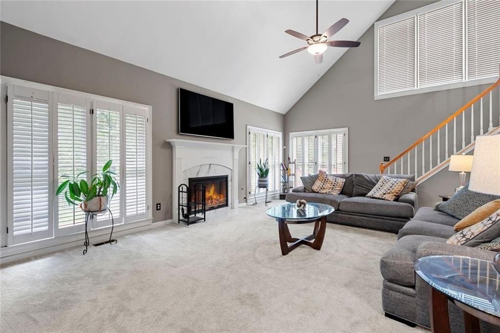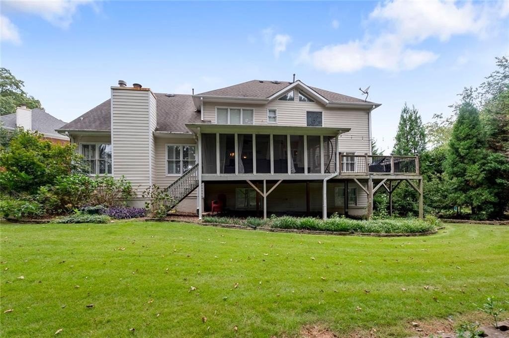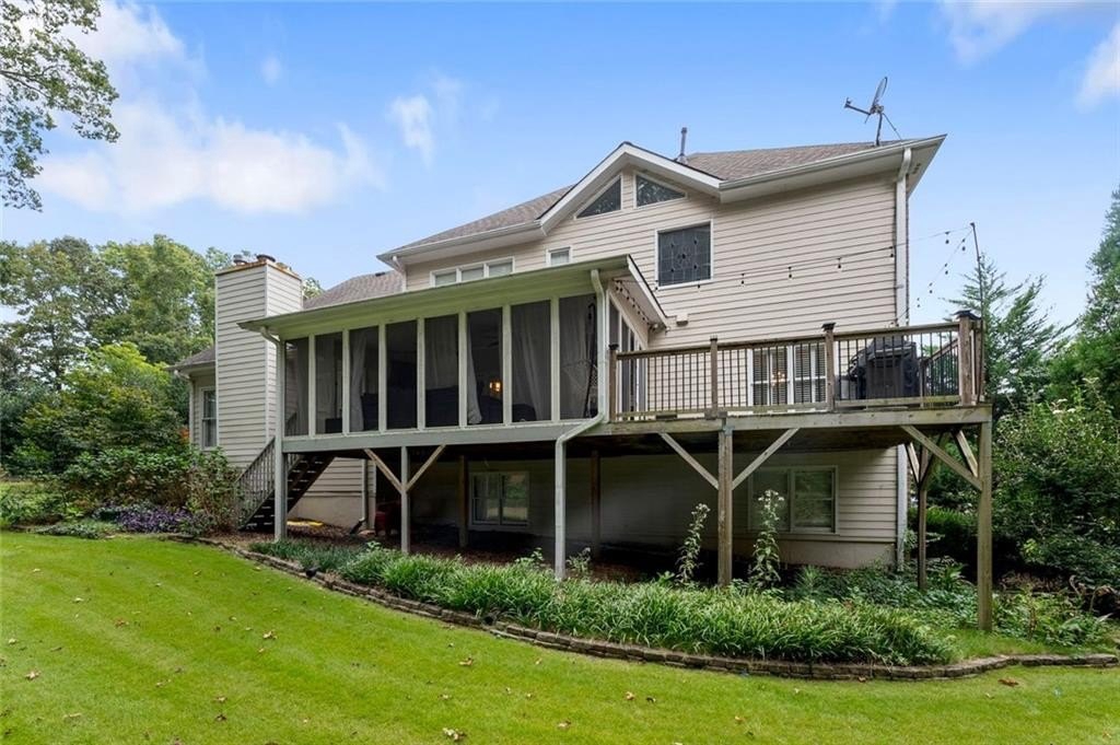 Welcome to Evergreen Lakes—an amenity-rich swim/tennis community in the Parkview cluster. Evergreen Lakes stunner on a cul-de-sac! 4BR/3.5BA, ~4,481 sq ft with finished terrace level (wet bar, gym, rec/media).This meticulously maintained home delivers light-filled living with plantation shutters, hardwood floors, and dual staircases. The renovated kitchen pairs quartz counters, stainless appliances, an island, and a view to the soaring fireside family room. Main-level guest suite with full bath. Upstairs, the spacious primary retreat offers a spa-style bath and oversized walk-in closet; two secondary bedrooms share a Jack-and-Jill bath plus a versatile bonus room (media/office/potential 5th BR). The finished terrace level extends your lifestyle with a wet bar, gym area, recreation/media spaces, and ample storage. Outdoors, enjoy a covered porch, expansive entertaining deck, and landscaped, private backyard. Evergreen Lakes amenities include two pools, tennis/pickleball, clubhouse, lake, playground, sidewalks, and streetlights. Minutes to Hwy 78, Mountain Park, shopping, and dining. HOA $775/yr. Built 1993.