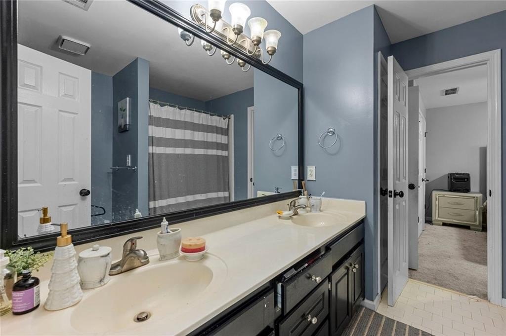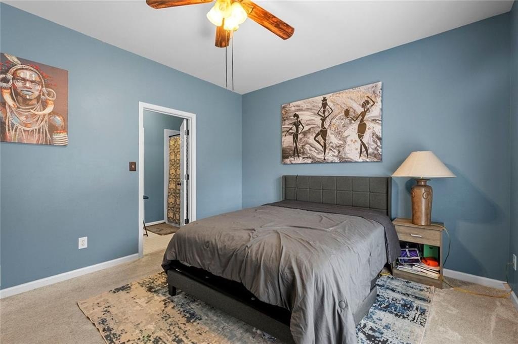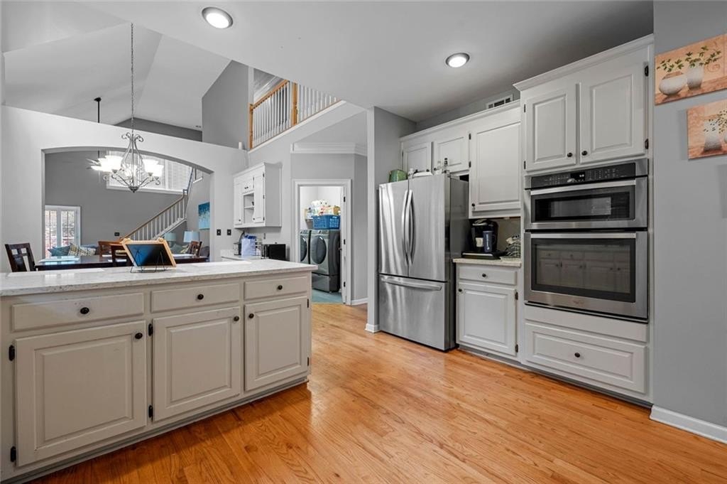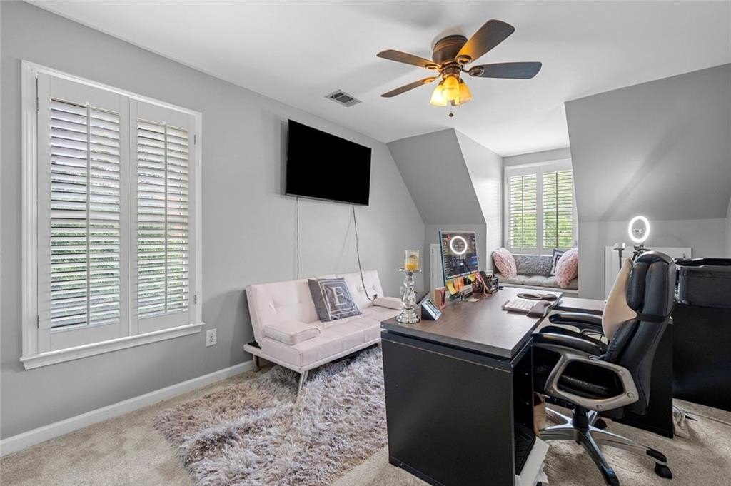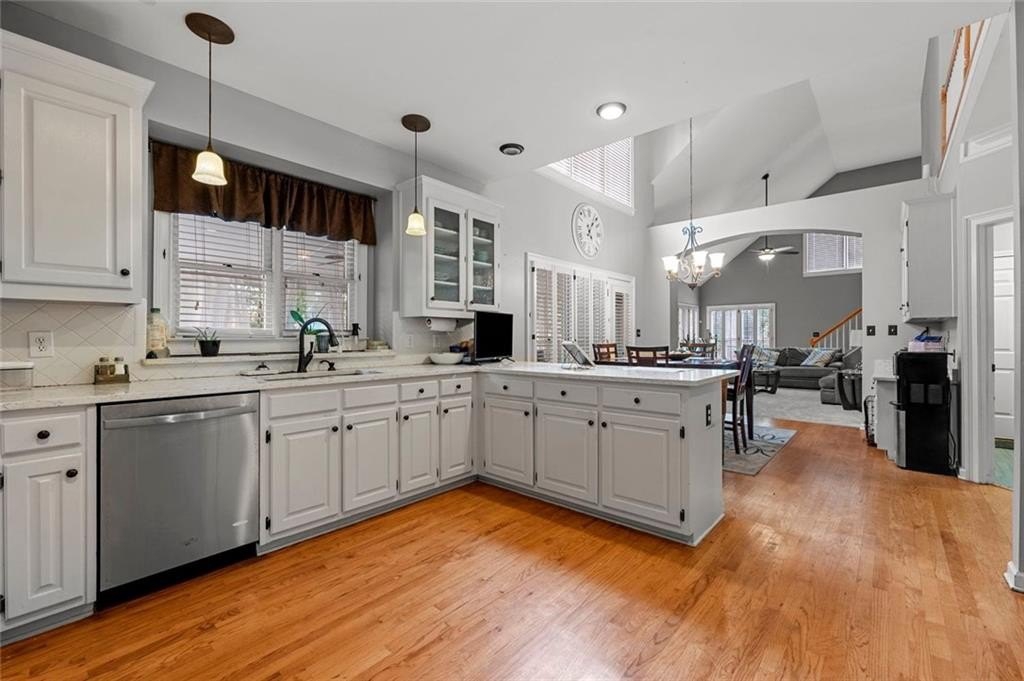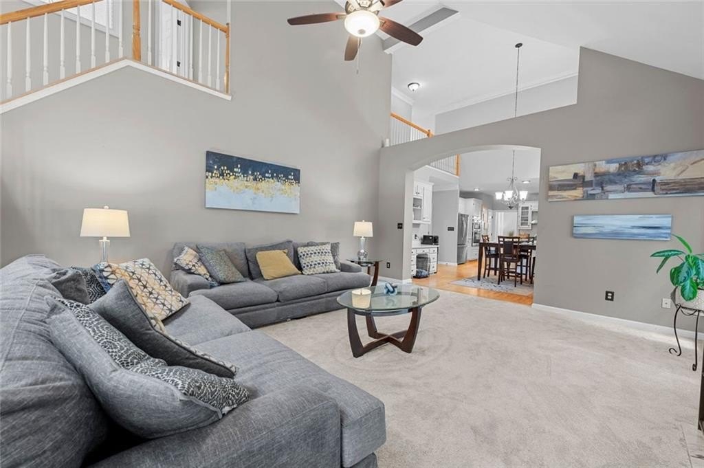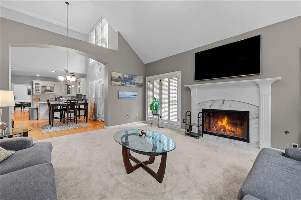Welcome to Evergreen Lakes—an amenity-rich swim/tennis community in the Parkview cluster. Evergreen Lakes stunner on a cul-de-sac! 4BR/3.5BA, ~4,481 sq ft with finished terrace level (wet bar, gym, rec/media).This meticulously maintained home delivers light-filled living with plantation shutters, hardwood floors, and dual staircases. The renovated kitchen pairs quartz counters, stainless appliances, an island, and a view to the soaring fireside family room. Main-level guest suite with full bath. Upstairs, the spacious primary retreat offers a spa-style bath and oversized walk-in closet; two secondary bedrooms share a Jack-and-Jill bath plus a versatile bonus room (media/office/potential 5th BR). The finished terrace level extends your lifestyle with a wet bar, gym area, recreation/media spaces, and ample storage. Outdoors, enjoy a covered porch, expansive entertaining deck, and landscaped, private backyard. Evergreen Lakes amenities include two pools, tennis/pickleball, clubhouse, lake, playground, sidewalks, and streetlights. Minutes to Hwy 78, Mountain Park, shopping, and dining. HOA $775/yr. Built 1993.