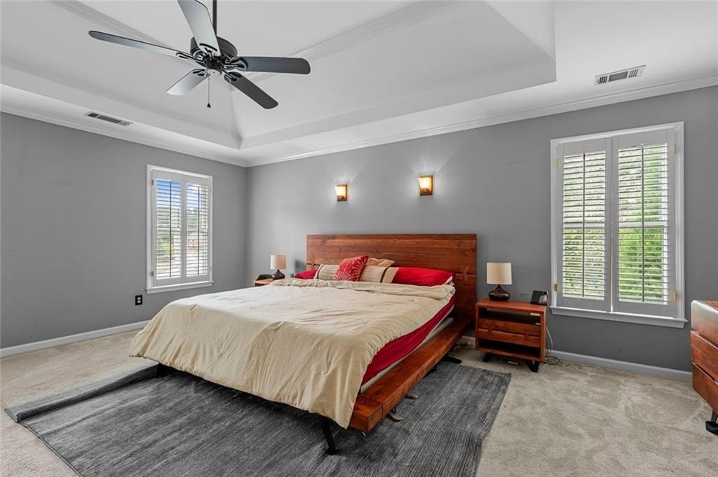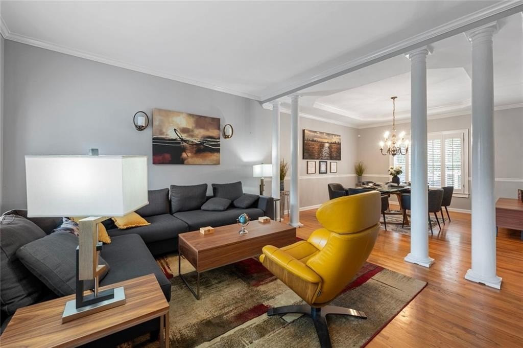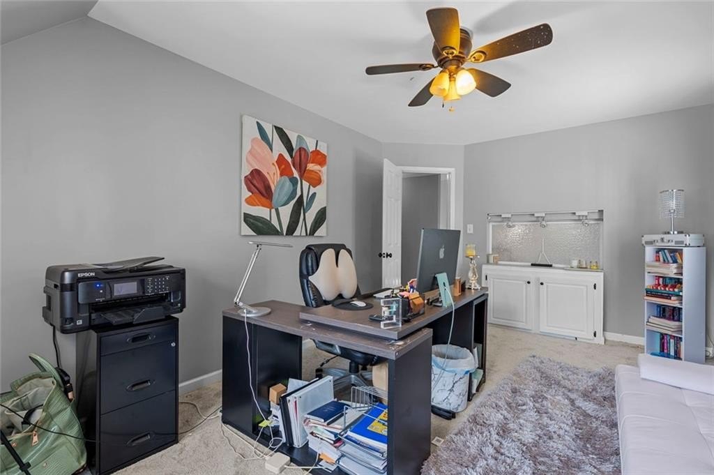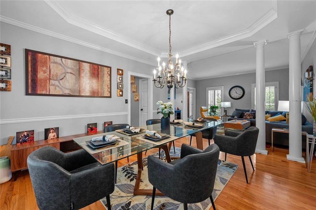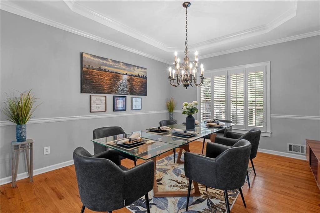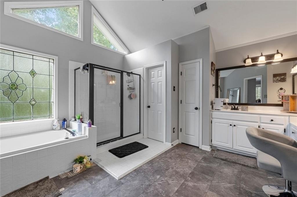 Welcome to Evergreen Lakes—an amenity-rich swim/tennis community in the Parkview cluster. Evergreen Lakes stunner on a cul-de-sac! 4BR/3.5BA, ~4,481 sq ft with finished terrace level (wet bar, gym, rec/media).This meticulously maintained home delivers light-filled living with plantation shutters, hardwood floors, and dual staircases. The renovated kitchen pairs quartz counters, stainless appliances, an island, and a view to the soaring fireside family room. Main-level guest suite with full bath. Upstairs, the spacious primary retreat offers a spa-style bath and oversized walk-in closet; two secondary bedrooms share a Jack-and-Jill bath plus a versatile bonus room (media/office/potential 5th BR). The finished terrace level extends your lifestyle with a wet bar, gym area, recreation/media spaces, and ample storage. Outdoors, enjoy a covered porch, expansive entertaining deck, and landscaped, private backyard. Evergreen Lakes amenities include two pools, tennis/pickleball, clubhouse, lake, playground, sidewalks, and streetlights. Minutes to Hwy 78, Mountain Park, shopping, and dining. HOA $775/yr. Built 1993.