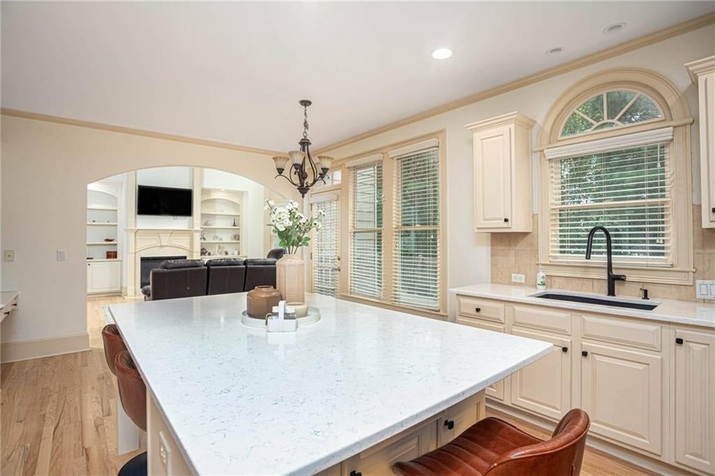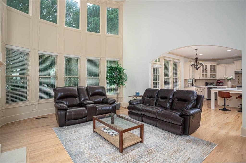 As you step inside, you are greeted by soaring ceilings, gleaming hardwood floors, and an abundance of natural light. The open-concept layout features a grand foyer that leads to spacious living areas, including a formal dining room perfect for hosting dinner parties and a cozy, yet expansive, great room with a fireplace that sets the stage for family gatherings.