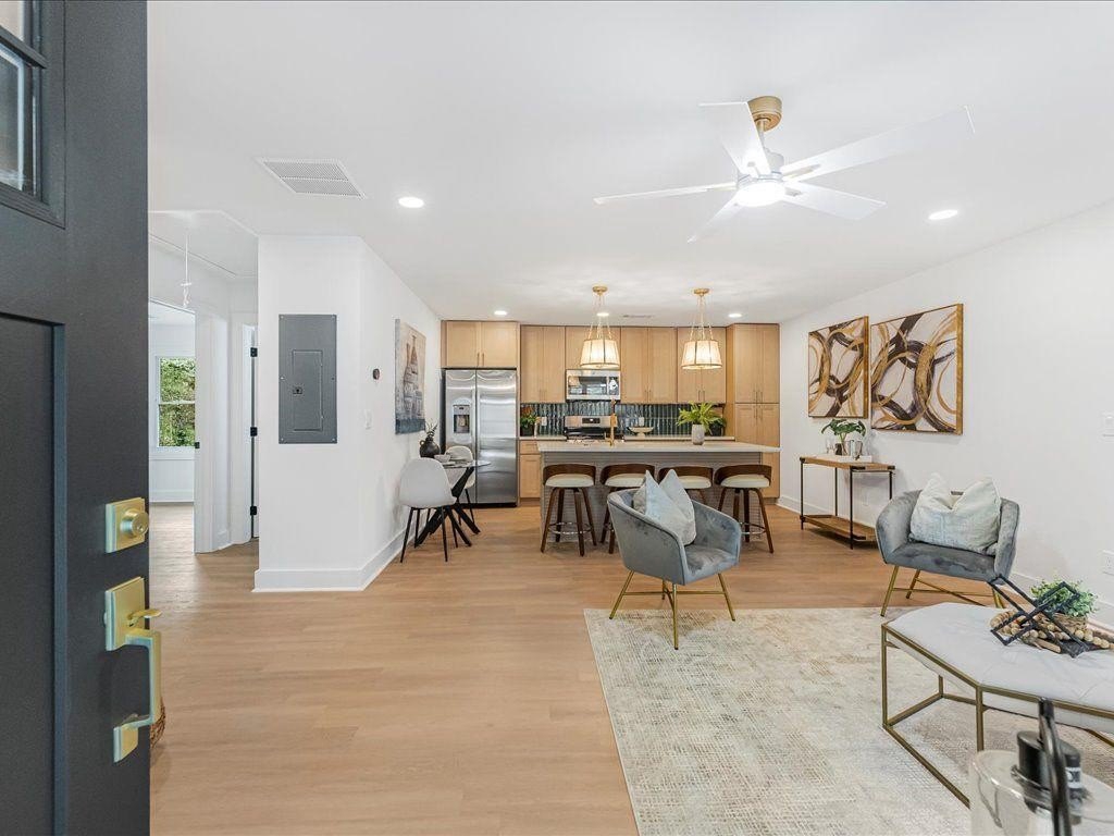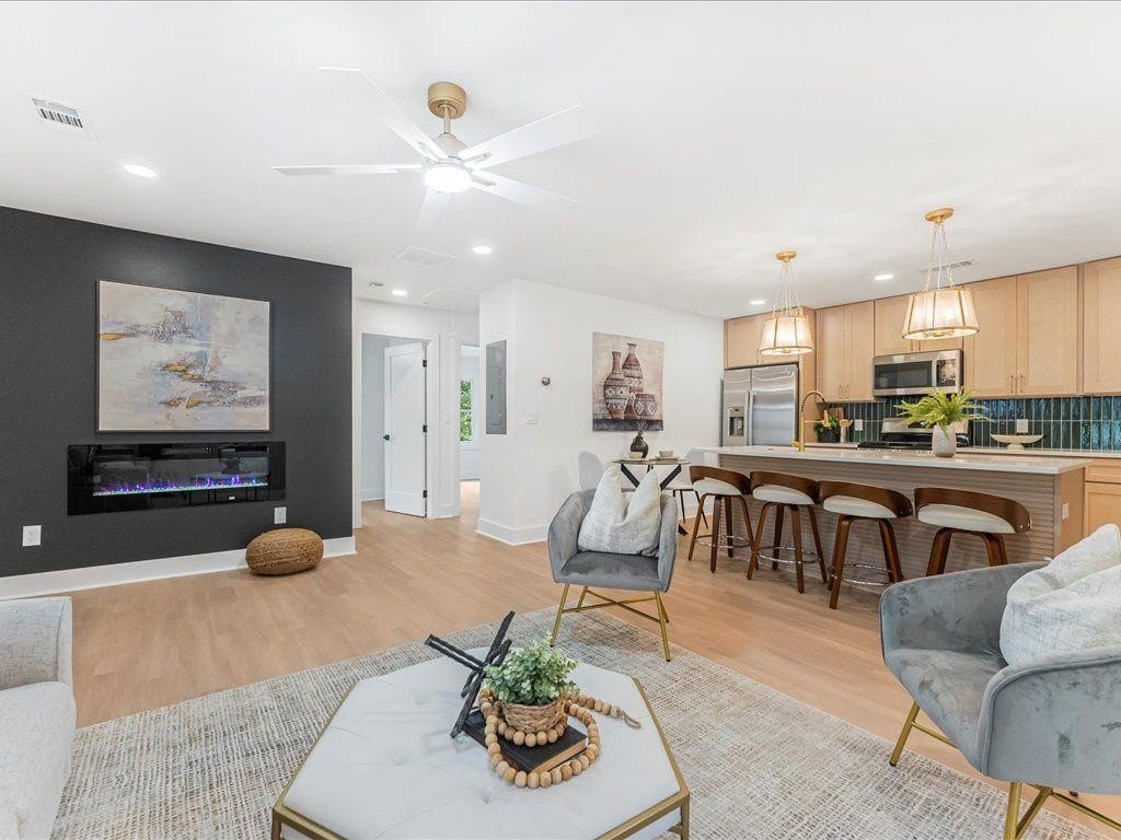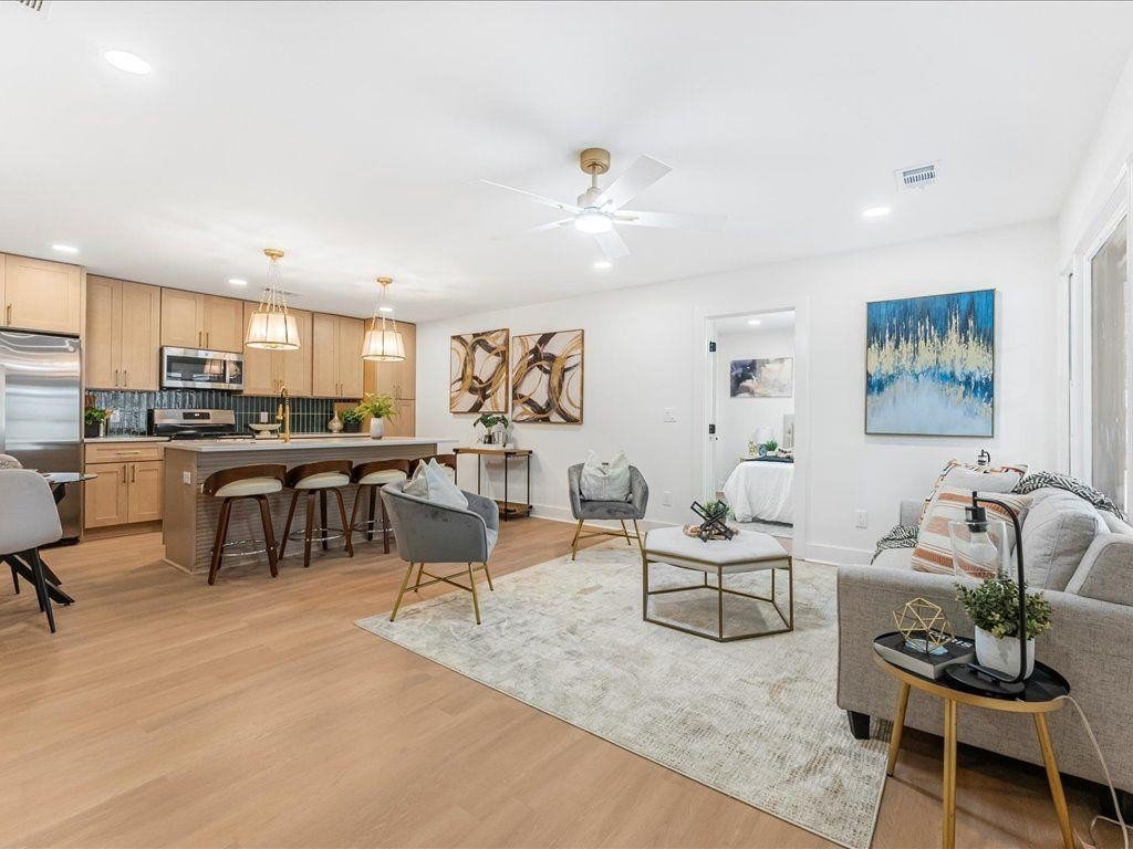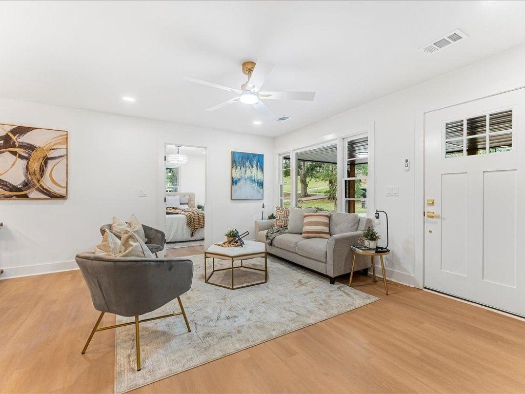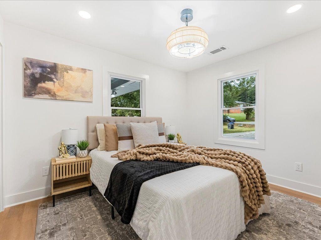 Completely remodeled ranch featuring 3 bedrooms and 2 full baths, plus a private guest house with 1 bedroom and 1 bath—ideal for in-laws or rental income!!! Enjoy an open-concept living room and kitchen with an extended island for sitting, stained cabinets, and an electric fireplace. The master suite offers a walk-in closet, double vanity, and tiled bath. Updates include new roof, HVAC, stylish fixtures, and tile bathrooms. Spacious backyard ready for your final touches. Just 25 minutes to The Battery and downtown Atlanta!