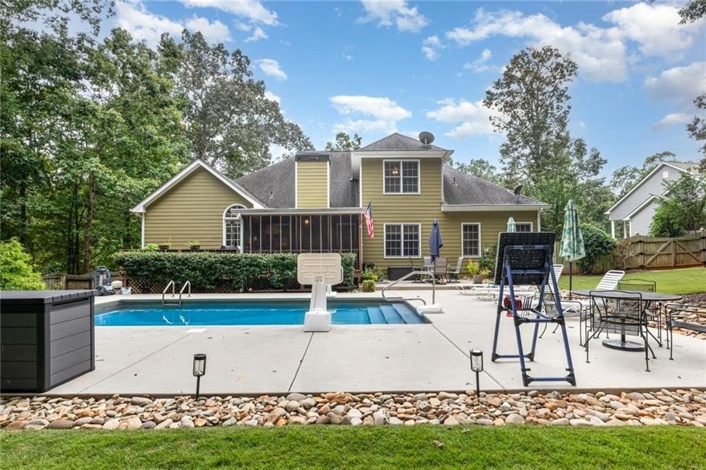 HIDDEN GEM IN WEST OCONEE COUNTY! Located in the highly sought-after Dove Creek school district, this immaculate RANCH home offers the perfect blend of comfort, convenience, and style. Enjoy a serene, rural-like setting while being just minutes from the GA Club, Athens, Watkinsville, Monroe, Hwy 78, and 316. This 4-bedroom, 3-bath home features open-concept living with a formal dining room, flex space/office, and a spacious family room with fireplace. High ceilings, hardwood floors throughout, and an upgraded trim package create an elegant feel. The eat-in kitchen is updated with granite countertops, tile backsplash, and stainless-steel appliances. The split bedroom floor plan provides privacy for the Owner’s Suite, complete with dual vanities, tub, separate shower, and tile flooring. Two secondary bedrooms share a full bath, while the upstairs bonus/4th bedroom includes its own full bath. Step outside to your private backyard oasis featuring a screened porch, expanded deck, in-ground pool, firepit area, and a beautifully landscaped, fenced yard and expands past the fenced area. The Village at Dove Creek also offers a private walking trail throughout the community and is maintained by the HOA. Recent updates include NEW windows (2025), roof (2020), pool (2020), exterior paint (2023), and replaced HVAC and water heater. Truly move-in ready with incredible curb appeal!