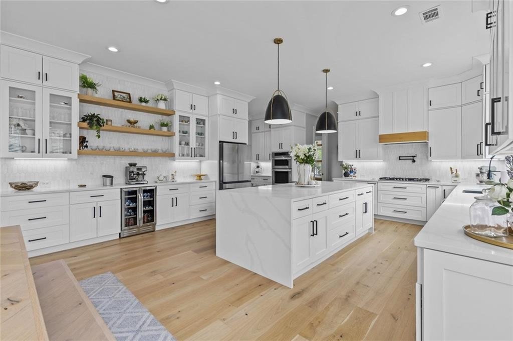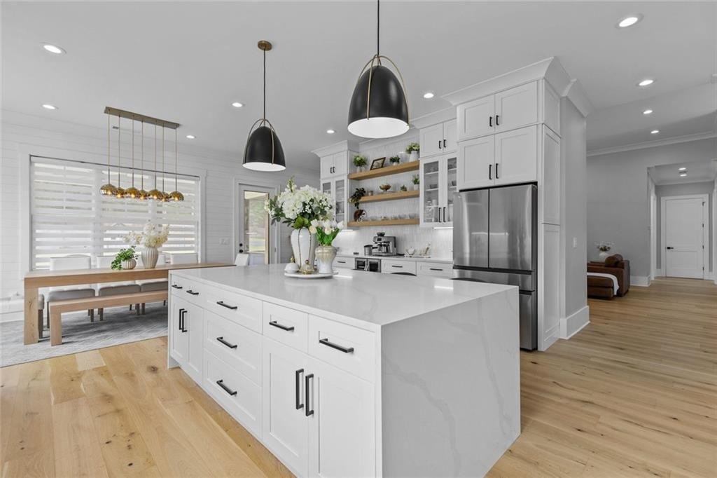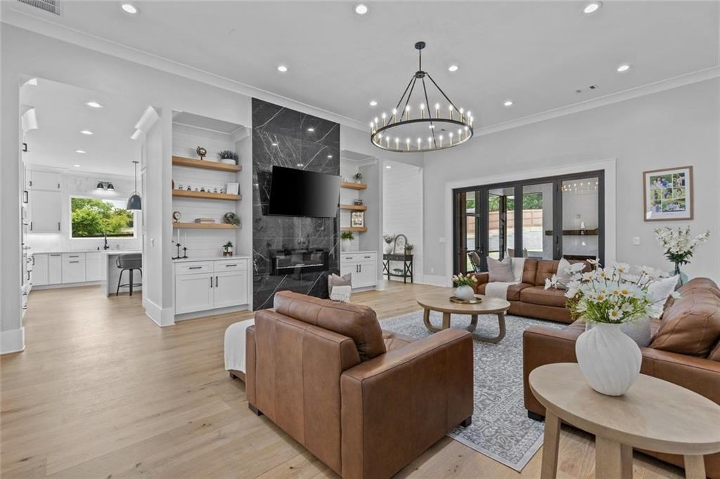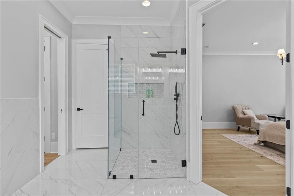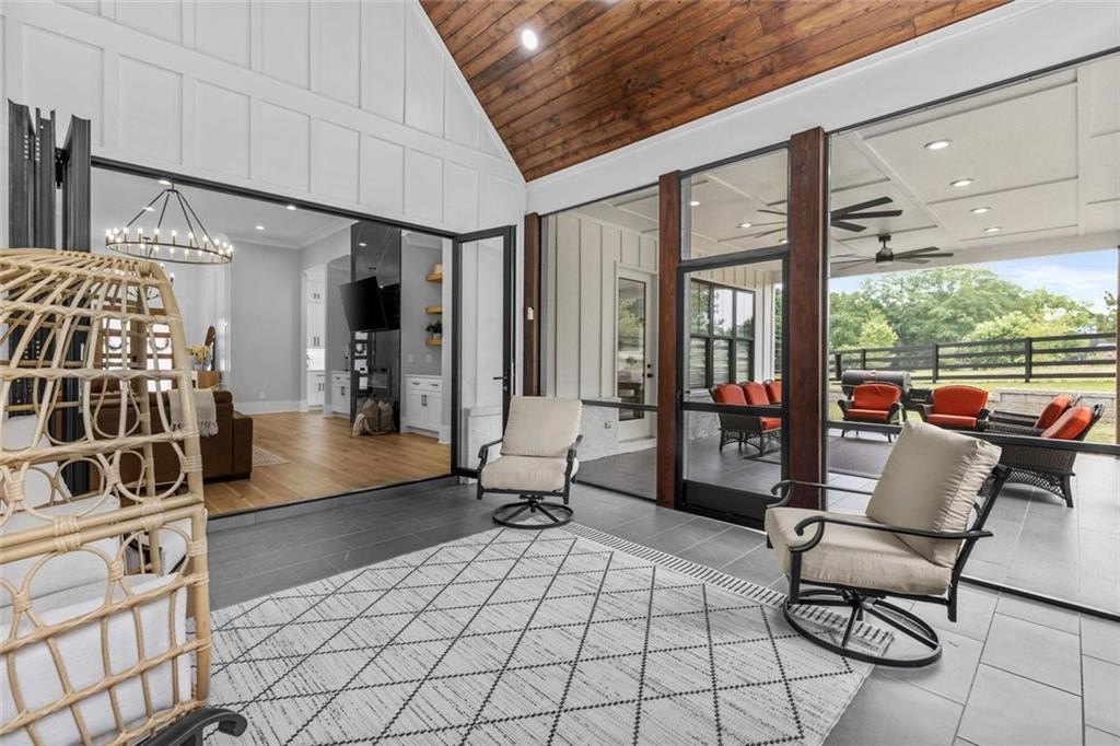 Fresh on the market at a new price – don’t miss this Monroe luxury estate! Pass through the impressive iron gates and discover a flat acre estate designed to impress at every turn—crafted for stylish living, luxurious comfort, and unforgettable entertaining.. With 5 bedrooms, 5 full baths, and a detached sauna with its own full bath, this property delivers everyday elegance and wellness living—all with no HOA restrictions. Soaring 12’ ceilings and designer lighting set an impressive tone throughout the main living areas. The chef’s kitchen is crafted for both beauty and function—featuring quartz counters, marble backsplash, convection oven, pot filler, built-in microwave, and a custom oak-accented hood alongside premium appliances. The great room showcases a striking fireplace with quartz built-ins and bespoke oak shelving, creating a warm and inviting centerpiece. Bi-fold glass doors expand your living space onto a vaulted screened porch with fireplace and tiled floors, bringing the outdoors in for year-round enjoyment. The owner’s retreat offers a spa-inspired bath with soaking tub, walk-in shower, dual vanities, heated flooring, and a custom walk-in closet—every detail designed for relaxation and luxury. Outdoors, the estate is set up for true resort-style living with a detached sauna (full bath), custom fire pit, and a pool-ready yard—the perfect setup for entertaining and future expansion. A detached garage, oversized laundry, and thoughtful storage throughout add practical convenience to the luxury. Located just minutes from downtown Monroe’s boutiques, dining, and markets, with easy access to Athens and Atlanta, this home offers both privacy and connection. A rare opportunity to own a fully loaded estate that blends privacy, design, and resort-style amenities.