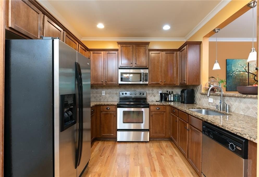 3 bedroom, 2.5 bath, 2 car attached garage fee simple townhome with no monthly fees and no rental restrictions. The interior has been freshly painted. Hardwoods throughout the main living level. 2 car garage with 4 additional (yes four additional dedicated parking spots in the driveway behind the 2 car garage). Plenty of storage in the 2 car garage and just a few steps straight into the kitchen with granite countertops and all stainless steel appliances, tiled backsplash, stainless steel sink and pantry. Living room has a fireplace to complete the cozy room with a wall of windows. A powder room with pocket doors complete the first floor. Upstairs has an oversized primary bedroom with tray ceilings and 2 walk-in closets. ensuite bathroom with double vanity, separate walk-in shower, jetted tub and water closet. The 2 additional guest bedrooms with generous closet space share a Jack and Jill bathroom. Just one shared wall between the units (firewall and soundproof). Downstairs HVAC was just replaced with a transferable warranty and the upstairs unit is just 4 years old. New electric range with built-in air fryer and convection oven and built-in microwave oven with sensor cooking technology (fancy right?) The Edgewood Shopping District with Kroger, Target and Lowe's are just a short walk away along with the Reynoldstown MARTA Station. Quick access to Little 5 Points, Inman Park, Freedom Park and the Beltline and East Atlanta Village.