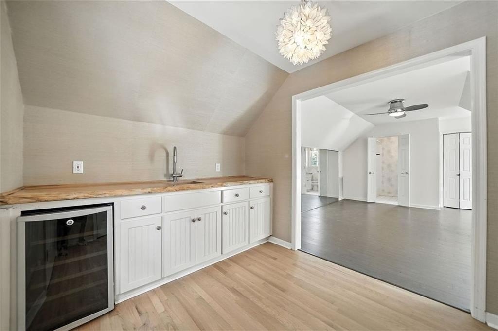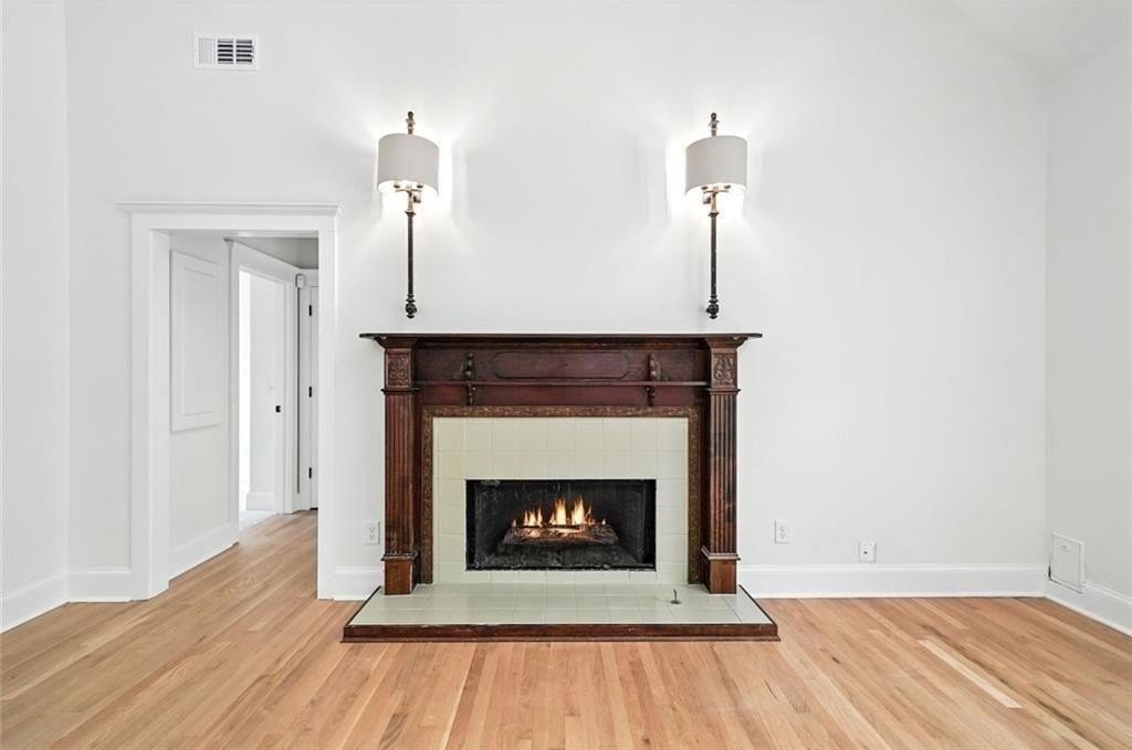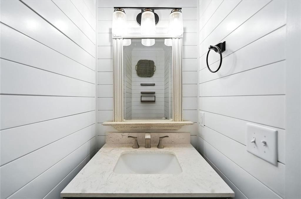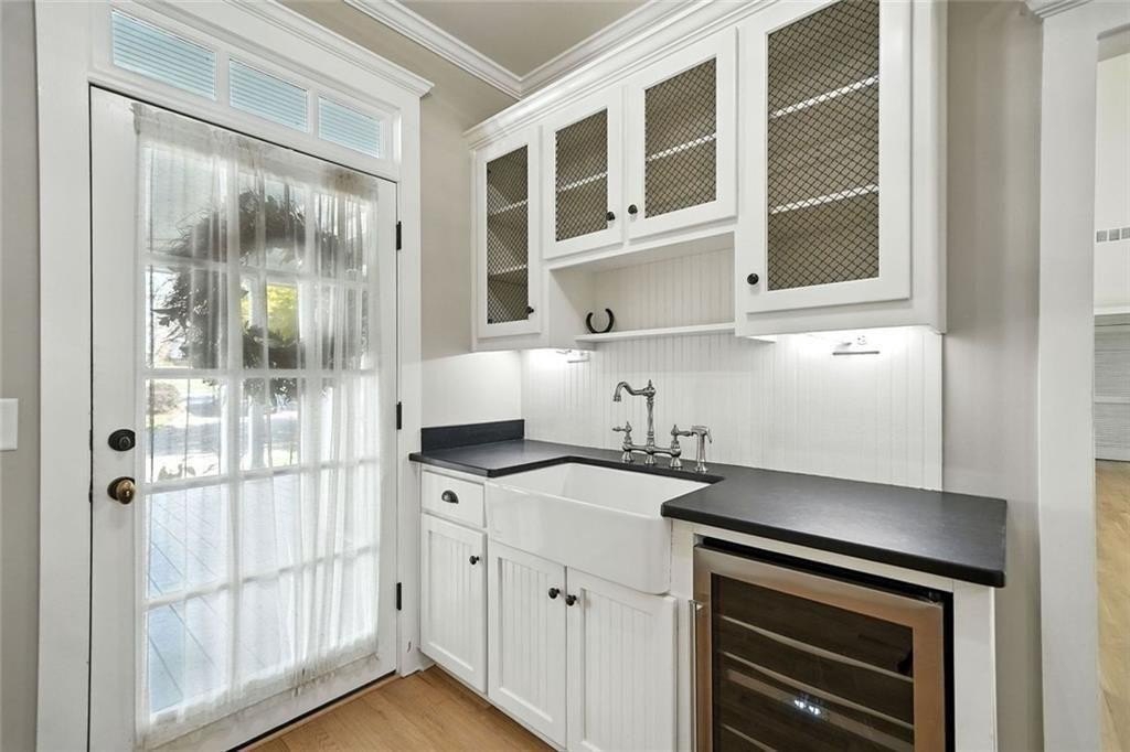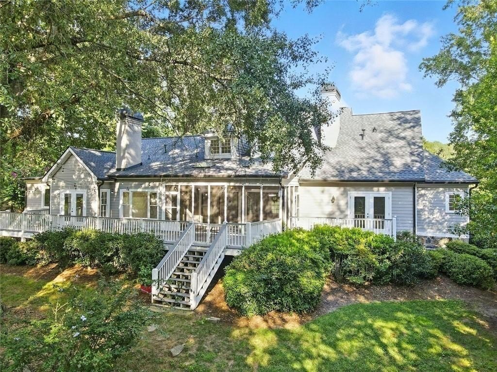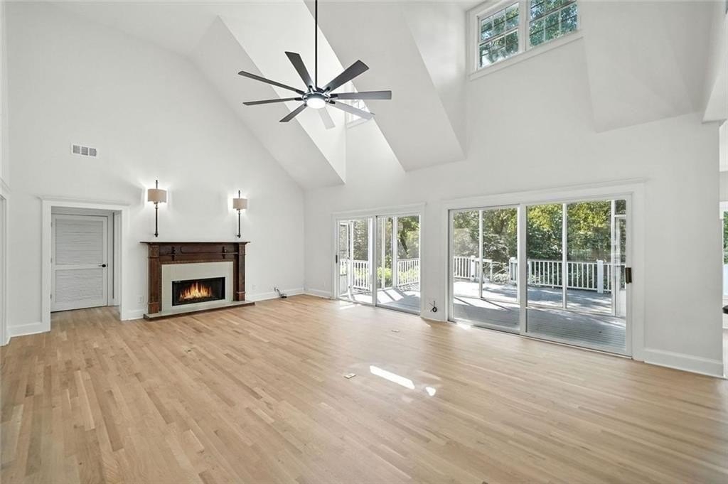 Step through the front porch into a bright, open floor plan with refinished hardwoods and updated lighting throughout. The main living space features a vaulted ceiling, built-ins, and a gas fireplace framed by a classic wood mantel. The fully renovated kitchen includes quartz countertops, shaker cabinetry, stainless steel appliances, and a custom farmhouse sink, flowing into a wet bar with natural light all around. Just off the kitchen, the screened porch and large back deck invite you to relax and listen to the creeks running along both sides of the property.