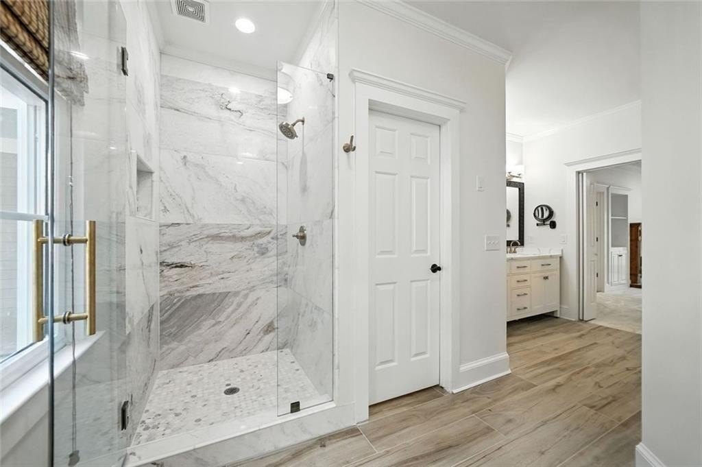 Outdoors, the flat, landscaped yard offers space to play, garden, or entertain. In Bradshaw Farm, you’ll also enjoy access to golf, multiple pools, tennis courts, pickleball, volleyball, basketball, a clubhouse, and playground—all in one of Woodstock’s most sought-after neighborhoods.