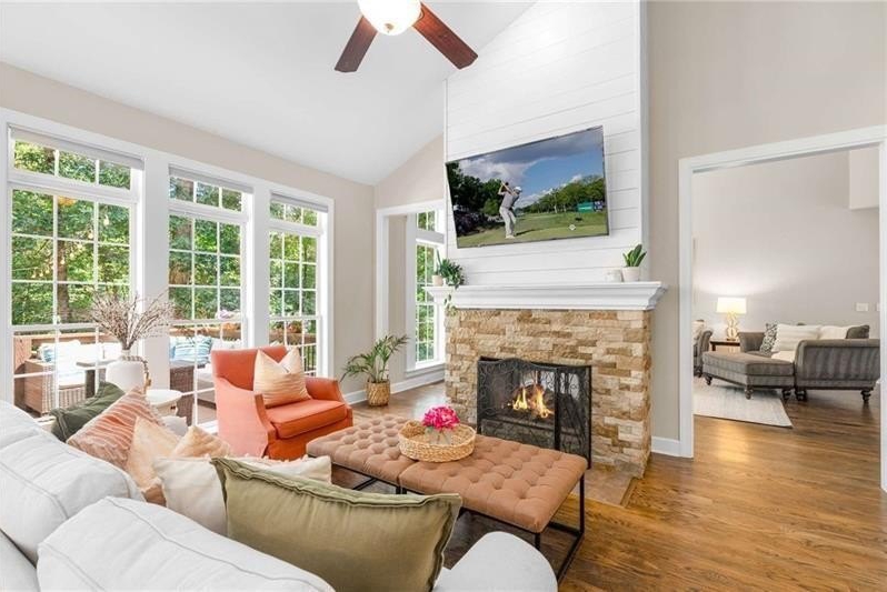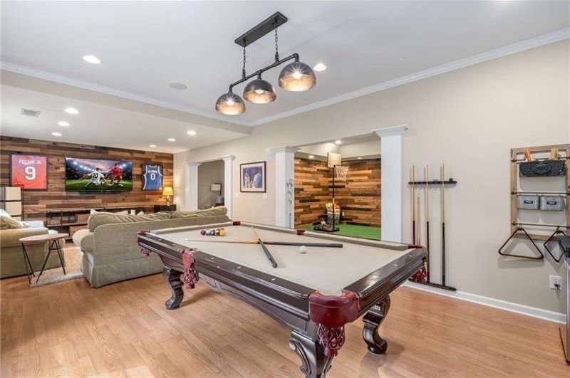 JUST LISTED Private 1.2 Acres in a Cul-de-sac!!! One of the largest wooded lots in Edinburgh with 4 sided brick. This Prestigious home in Bear's Best award-winning golf course community designed by Jack Nicklaus and offers three levels of extraordinary living and elegance. Six spacious bedrooms and six bathrooms with a finished basement . Home features a New Roof in 2023 , 3 NEW AC Units in 2024 with a CLEAN AIR HOME System and a tankless hot water heater installed in 2022. A luxurious HUGE backyard oasis also has a flat front and flat back backyard. There's three spacious sundecks for outdoor dining and relaxation.Upon entering a foyer with high ceilings this home offers abundant natural light.The open-concept living areas are perfect for both entertaining and everyday living, featuring a chef's gourmet kitchen with stainless appliances , mudroom, pantry and a stylish breakfast nook with a door leading to the sundeck. The keeping room boasts a cozy stacked stone fireplace. The Living Room is two stories with a double sided fireplace. Large Dining Room perfect for entertaining.There's a guest bedroom on the main floor with its own bathroom. The primary suite is a true retreat with a lavish en-suite bathroom with double vanities, a soaking tub, and a separate shower and a large closet .Each of the additional bedrooms upstairs are thoughtfully designed with 2 more bathrooms .The finished terrace level has a ton of natural lighting with windows and doors . Boasts a billiards room with pool table ,separate game room , lovely sitting room, another spacious bedroom with full bathroom and a separate room for an office. Also unfinished fitness room and storage room for a workshop. This is an entertainer's dream home perfect for gatherings outside for dining, zip liping, roasting marshmallows by the fire pit , jumping on the trampoline or walking to the river to go fishing. Don’t miss this rare opportunity to own a piece of paradise. Edinburgh is a golf cart friendly neighborhood and offers fantastic amenities, including an Olympic-size pool, a waterslide, tennis courts, a fitness center, a playground and a basketball court. The very active homeowners association plans multiple social events throughout the year. The neighborhood is moments from the Chattahoochee River, a short ride to Suwanee Town Center, Lake Lanier, destination shopping, dining and entertainment. All this in North Gwinnett's award winning schools. Riverside Elementary, North Gwinnett Middle School and North Gwinnett High School. HURRY THIS HOME WON'T LAST LONG.