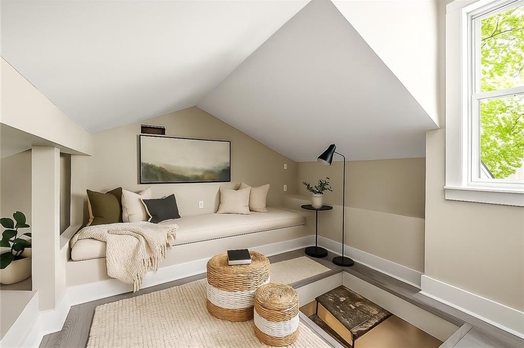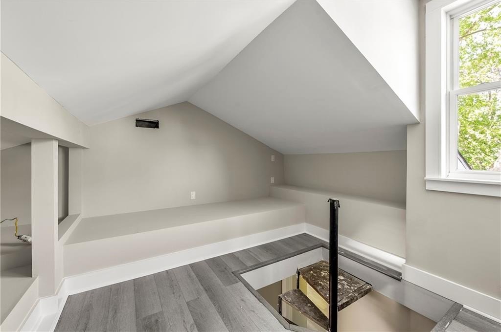 Upstairs, you’ll find two spacious bedrooms—perfect for a roommate setup, guests, or a home office. The primary suite offers a custom closet system and a spa-like bath with a huge walk-in shower, floor-to-ceiling tile, a double vanity with quartz tops, and stylish new fixtures. The secondary bedroom is equally inviting with new flooring, paint, and abundant natural light. Need extra space? Head up to the finished loft/attic—perfect for storage, a cozy reading nook, or a hobby area.