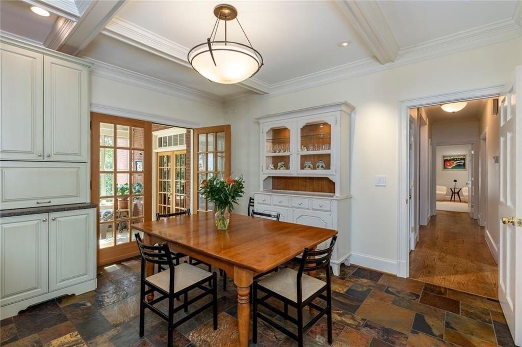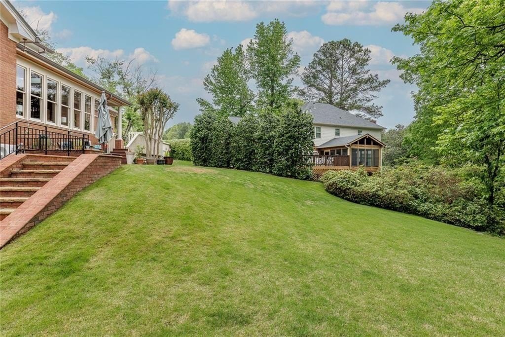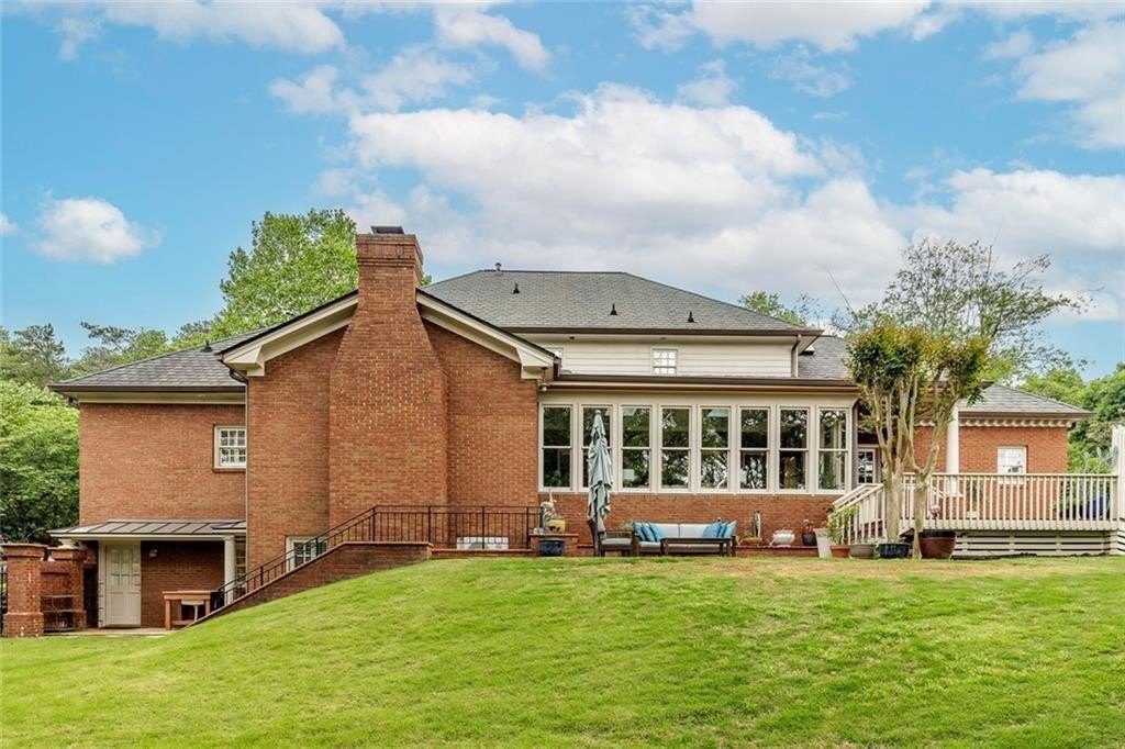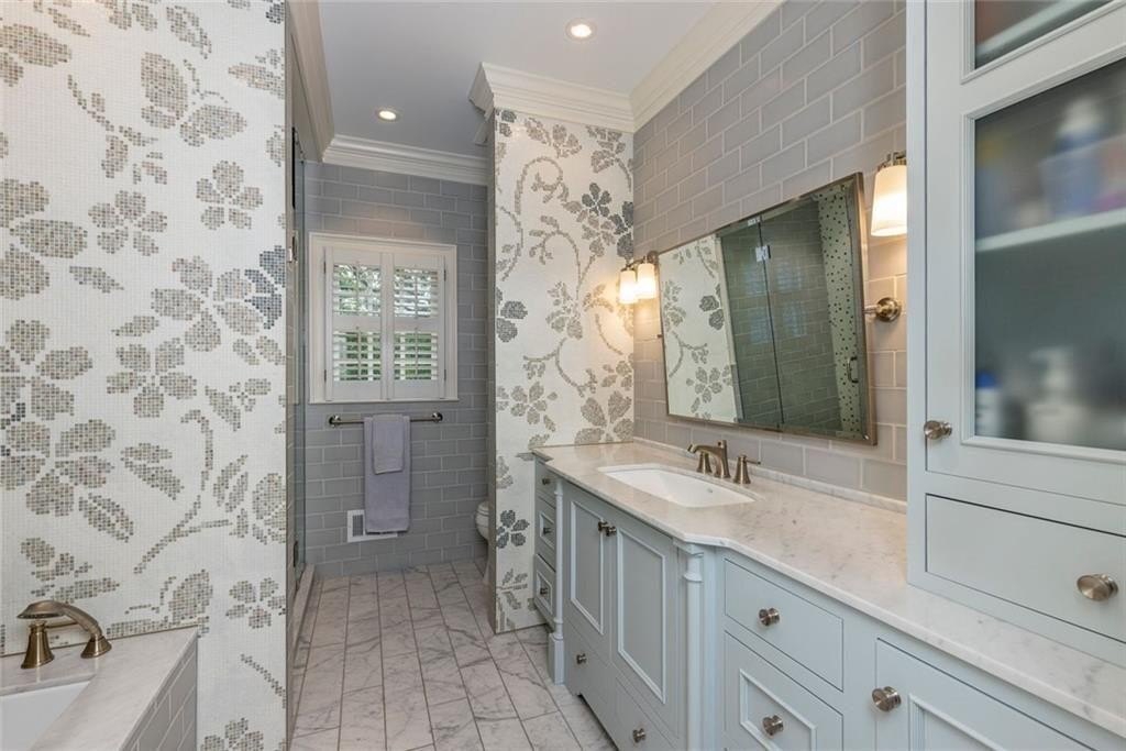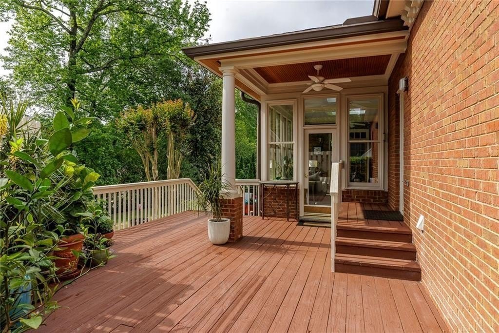 Gorgeous Renovated All-Brick Home in Prime Byrnwyck Swim/Tennis Community. Welcome to this beautifully renovated, meticulously maintained, all-brick residence, located in the highly sought-after Byrnwyck swim and tennis neighborhood. This move-in ready home is nestled on a lush, landscaped lot and showcases timeless architectural details and bespoke upgrades throughout. A charming front porch and soaring two-story foyer welcome you into a sophisticated interior where rich hardwoods, distinctive stone flooring, plantation shutters, intricate moldings, and Palladian windows come together to create a warm yet elegant ambiance. Tailored for both refined entertaining and comfortable everyday living, the expansive formal living and dining rooms feature timeless wainscoting and a graceful, cohesive design. At the heart of the home, the chef’s kitchen impresses with African slate flooring, coffered ceilings, granite countertops, a custom tile backsplash, and custom painted cabinetry. A generous center island, walk-in pantry, and premium stainless-steel appliances—including a Viking range and hood—complete this beautifully curated space. The adjoining breakfast room opens to a sun-drenched sunroom with skylights, which flows effortlessly to the outdoor deck and patio—ideal for outdoor dining and relaxation. Overlooking a fully fenced and private backyard, this space blends indoor comfort with outdoor charm, enhancing the home's inviting atmosphere. The main-level family room offers another inviting gathering spot, featuring beamed ceilings, custom stone fireplace, built-in cabinetry, and a wet bar. French doors connect the family room to the sunroom, enhancing the home's natural flow between living spaces. A spacious mudroom & a large laundry room with second full size refrigerator provide everyday functionality and convenience to this exceptional layout. With primary suites on both the main and upper levels, this home offers exceptional flexibility—perfect for multi-generational living or comfortably accommodating guests. The main-level primary suite is a serene, oversized retreat featuring a spa-inspired bathroom adorned with a stunning hand-cut and hand-created Bisazza tile mosaic. This exquisite, custom-crafted detail brings understated elegance to the space, which also includes heated floors, a luxurious soaking tub and shower with a frameless glass enclosure. Upstairs, a second primary-sized bedroom boasts a newly renovated ensuite bath. Originally configured as two separate bathrooms, the space retains its original plumbing, allowing for a seamless reconfiguration back to dual baths if desired. Two additional generously proportioned bedrooms & a walk-in attic space complete the upper level, providing ample room and versatility for family or guests. The daylight terrace level provides endless opportunities for recreation, relaxation, & comfortable living—whether for family or guests. A spacious bedroom and full bath with a steam shower provide a private retreat, while a game room with tray ceiling, a media room with a wet bar, and a dedicated exercise room create spaces for everyone to enjoy. Step outside to enjoy the patio & backyard for seamless indoor-outdoor living. There’s also generous unfinished space, perfect for storage or future customization to suit your needs. Additional highlights include a whole-house wired network, a premium multi-room Bose surround sound system, and thoughtful design details that set this home apart. Nestled on a quiet, picturesque street with fantastic curb appeal, it’s just a short walk to the neighborhood's swim, tennis, and playground amenities. Situated inside the Perimeter, this home offers unbeatable access to Brookhaven, Buckhead, and Midtown, the Glenridge Medical campus, I-285, and GA-400, along with top-rated public and private schools, parks, trails, premier shopping, and dining. Don’t miss this opportunity to own an exceptional home in one of Atlanta’s most desirable neighborhoods.
