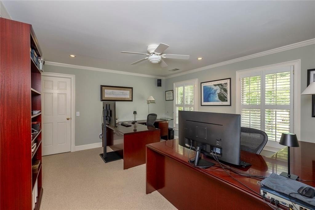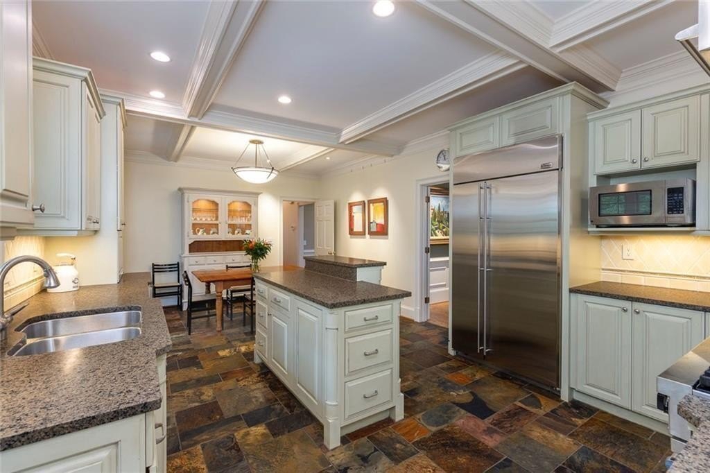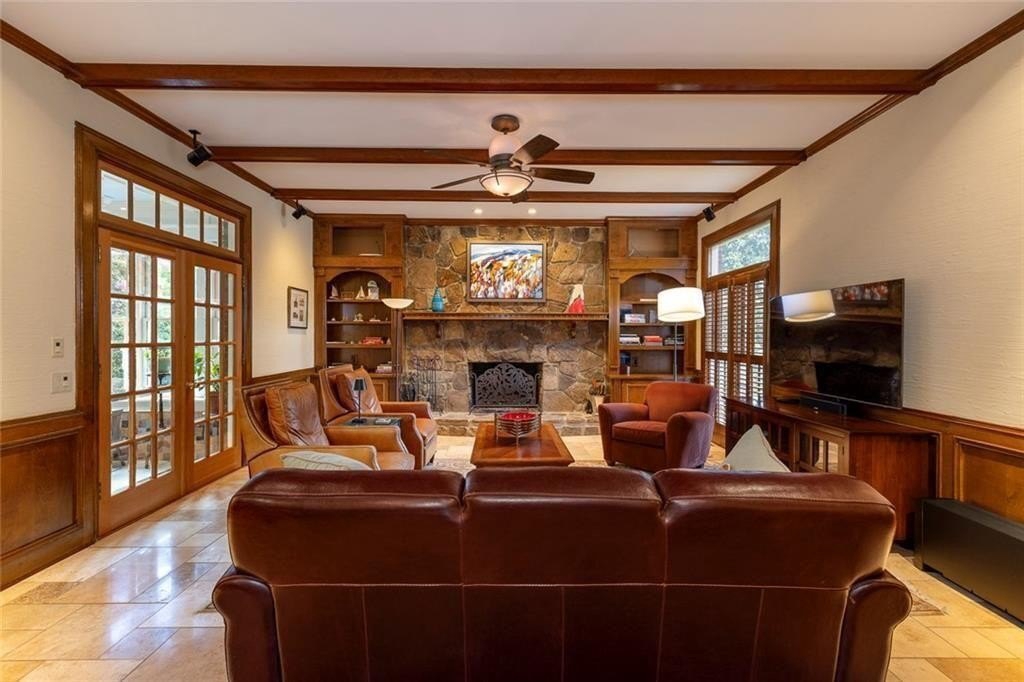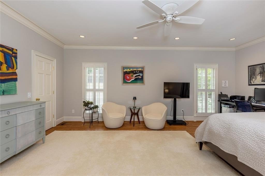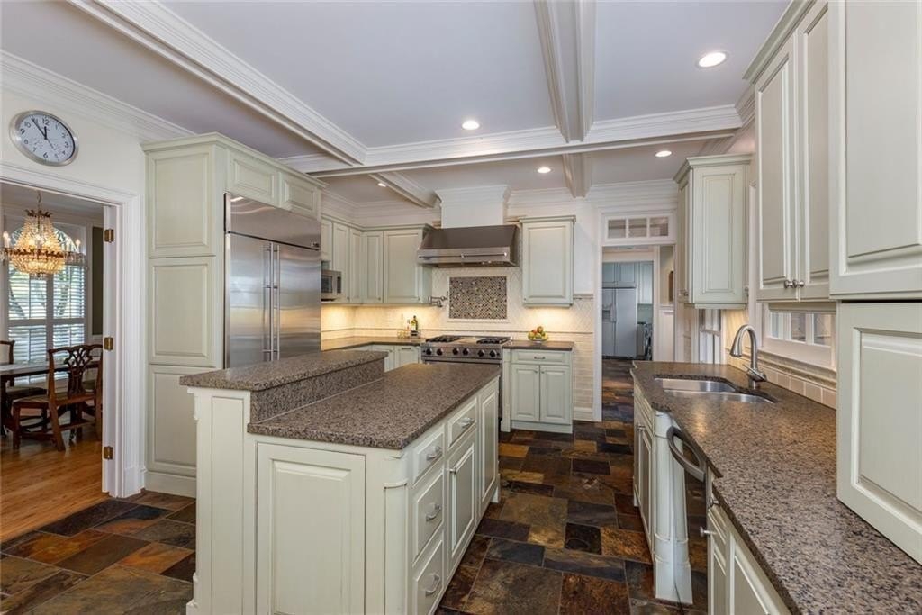 Gorgeous Renovated All-Brick Home in Prime Byrnwyck Swim/Tennis Community. Welcome to this beautifully renovated, meticulously maintained, all-brick residence, located in the highly sought-after Byrnwyck swim and tennis neighborhood. This move-in ready home is nestled on a lush, landscaped lot and showcases timeless architectural details and bespoke upgrades throughout. A charming front porch and soaring two-story foyer welcome you into a sophisticated interior where rich hardwoods, distinctive stone flooring, plantation shutters, intricate moldings, and Palladian windows come together to create a warm yet elegant ambiance. Tailored for both refined entertaining and comfortable everyday living, the expansive formal living and dining rooms feature timeless wainscoting and a graceful, cohesive design. At the heart of the home, the chef’s kitchen impresses with African slate flooring, coffered ceilings, granite countertops, a custom tile backsplash, and custom painted cabinetry. A generous center island, walk-in pantry, and premium stainless-steel appliances—including a Viking range and hood—complete this beautifully curated space. The adjoining breakfast room opens to a sun-drenched sunroom with skylights, which flows effortlessly to the outdoor deck and patio—ideal for outdoor dining and relaxation. Overlooking a fully fenced and private backyard, this space blends indoor comfort with outdoor charm, enhancing the home's inviting atmosphere. The main-level family room offers another inviting gathering spot, featuring beamed ceilings, custom stone fireplace, built-in cabinetry, and a wet bar. French doors connect the family room to the sunroom, enhancing the home's natural flow between living spaces. A spacious mudroom & a large laundry room with second full size refrigerator provide everyday functionality and convenience to this exceptional layout. With primary suites on both the main and upper levels, this home offers exceptional flexibility—perfect for multi-generational living or comfortably accommodating guests. The main-level primary suite is a serene, oversized retreat featuring a spa-inspired bathroom adorned with a stunning hand-cut and hand-created Bisazza tile mosaic. This exquisite, custom-crafted detail brings understated elegance to the space, which also includes heated floors, a luxurious soaking tub and shower with a frameless glass enclosure. Upstairs, a second primary-sized bedroom boasts a newly renovated ensuite bath. Originally configured as two separate bathrooms, the space retains its original plumbing, allowing for a seamless reconfiguration back to dual baths if desired. Two additional generously proportioned bedrooms & a walk-in attic space complete the upper level, providing ample room and versatility for family or guests. The daylight terrace level provides endless opportunities for recreation, relaxation, & comfortable living—whether for family or guests. A spacious bedroom and full bath with a steam shower provide a private retreat, while a game room with tray ceiling, a media room with a wet bar, and a dedicated exercise room create spaces for everyone to enjoy. Step outside to enjoy the patio & backyard for seamless indoor-outdoor living. There’s also generous unfinished space, perfect for storage or future customization to suit your needs. Additional highlights include a whole-house wired network, a premium multi-room Bose surround sound system, and thoughtful design details that set this home apart. Nestled on a quiet, picturesque street with fantastic curb appeal, it’s just a short walk to the neighborhood's swim, tennis, and playground amenities. Situated inside the Perimeter, this home offers unbeatable access to Brookhaven, Buckhead, and Midtown, the Glenridge Medical campus, I-285, and GA-400, along with top-rated public and private schools, parks, trails, premier shopping, and dining. Don’t miss this opportunity to own an exceptional home in one of Atlanta’s most desirable neighborhoods.