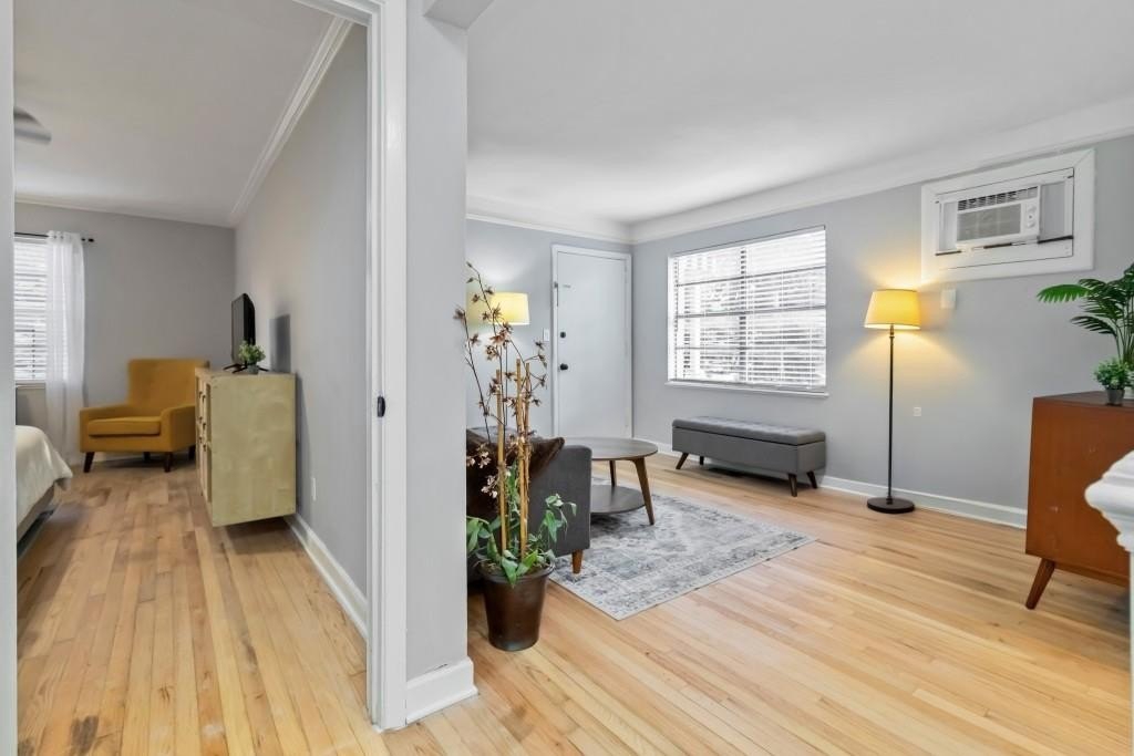 Updated one-bedroom condo in boutique 20-unit complex! Prime Midtown location just steps from Piedmont Park, MARTA, the Fox Theater, Georgia Tech, and countless shopping, dining, and entertainment options. This first-floor CORNER UNIT is filled with NATURAL LIGHT and offers a functional layout with open concept living and eat-in kitchen. The spacious KING-SIZED bedroom includes a built-in closet, while the bathroom and laundry room are conveniently tucked off a central hallway perfect for everyday living and guests. Enjoy thoughtful UPDATES THROUGHOUT: refinished hardwood floors, fresh paint, quartz countertops, updated fixtures and hardware, stainless steel appliances, bathroom vanity and tile, and more. Added perks include an assigned PARKING SPACE, in-unit WASHER DRYER, and a LOW HOA fee ($200/month) that covers building insurance, water, sewer, trash, exterior maintenance, and landscaping. Whether you're seeking true urban living or a turn-key rental in a high-demand area, this condo delivers incredible value. Just steps from Midtown's most iconic landmarks you'll have Atlanta's best at your doorstep!