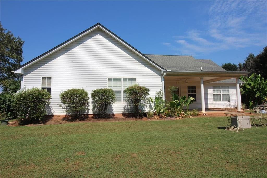 Inviting, well kept 3 bedroom ranch in East Winder. Brick front, easy maintenance vinyl siding. Front and rear covered porches. Cute out building situated on a large, 1/2 acre plus, level lot. Open concept living, dining, kitchen. Vaulted living room with white brick fireplace leads to open dining room. Kitchen cabinets are oak with laminate counter tops. Island adds more working space and pantry is large. Washer/dryer outside of master bedroom. Large vaulted master includes a large closet off the master bath, also vaulted. Long double sink vanity and separate shower and tub. Furniture is negotiable. Great home at a great price.