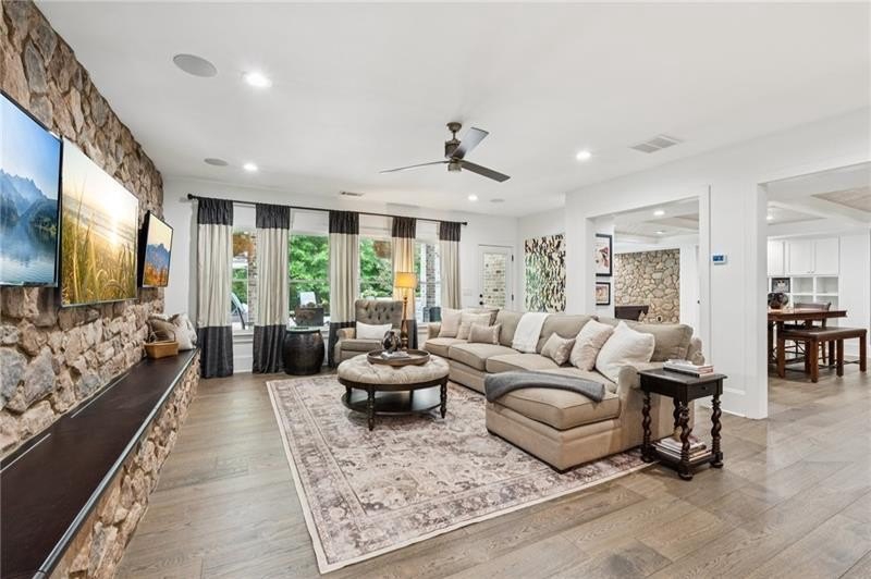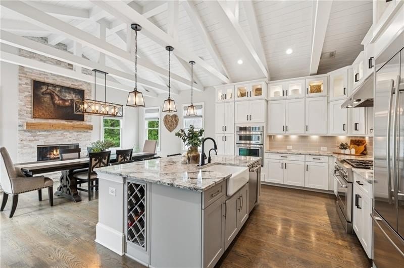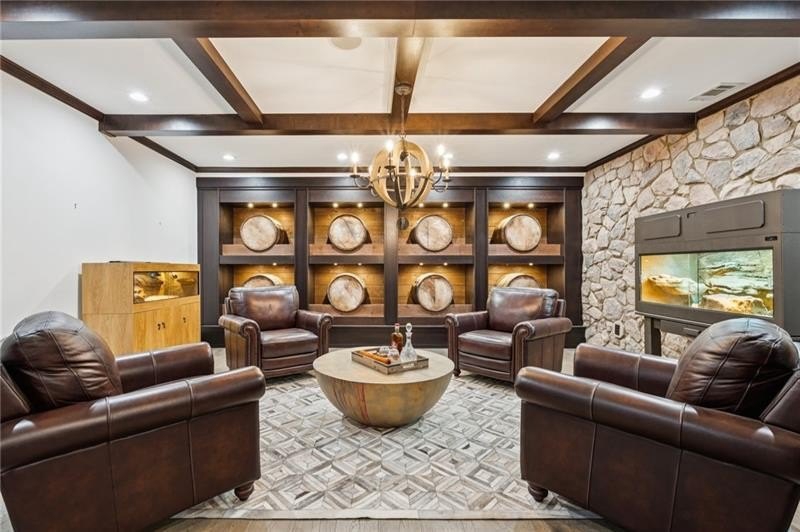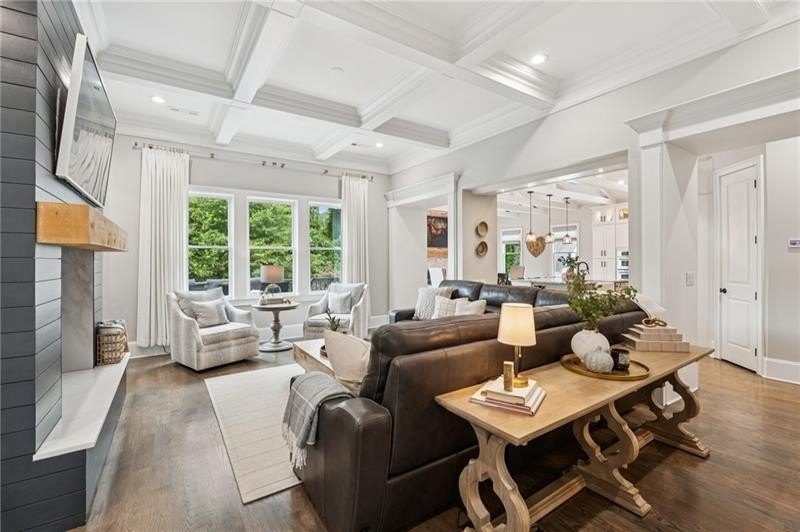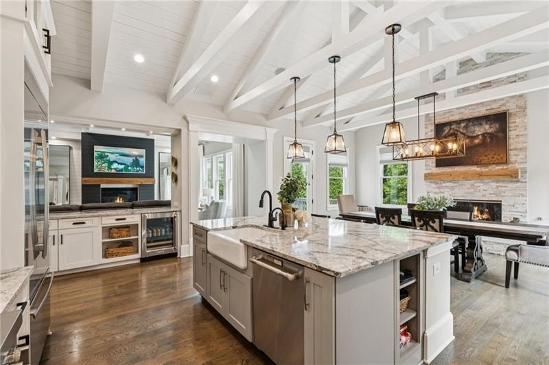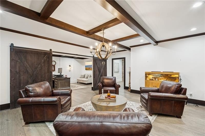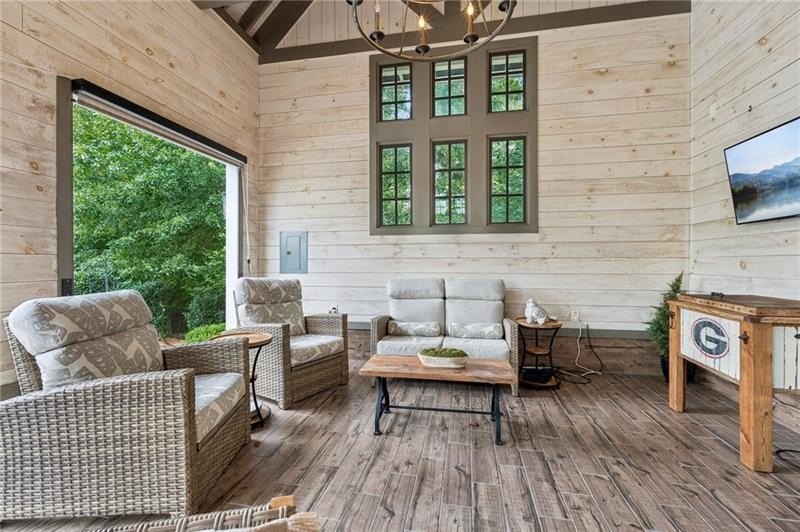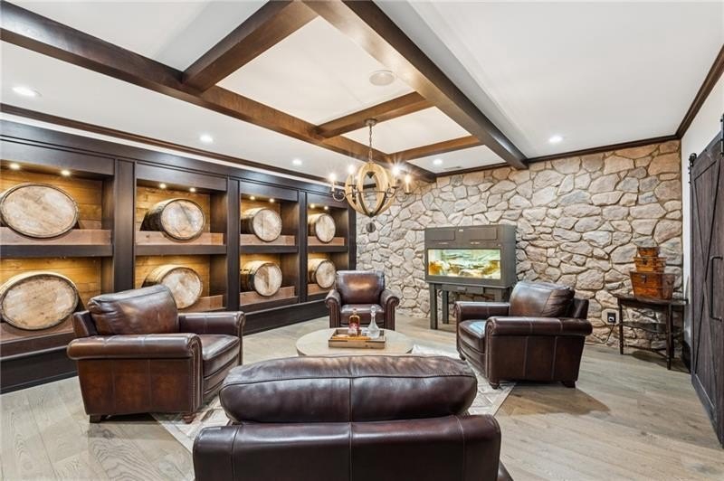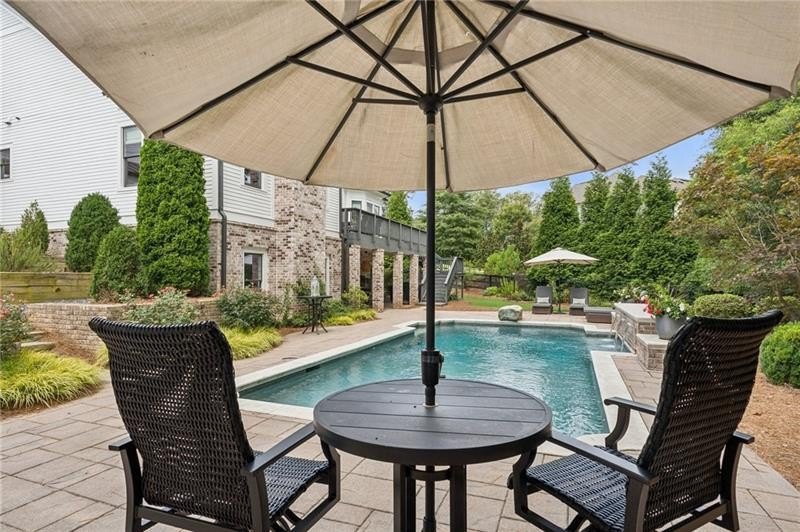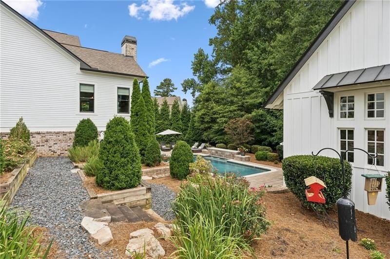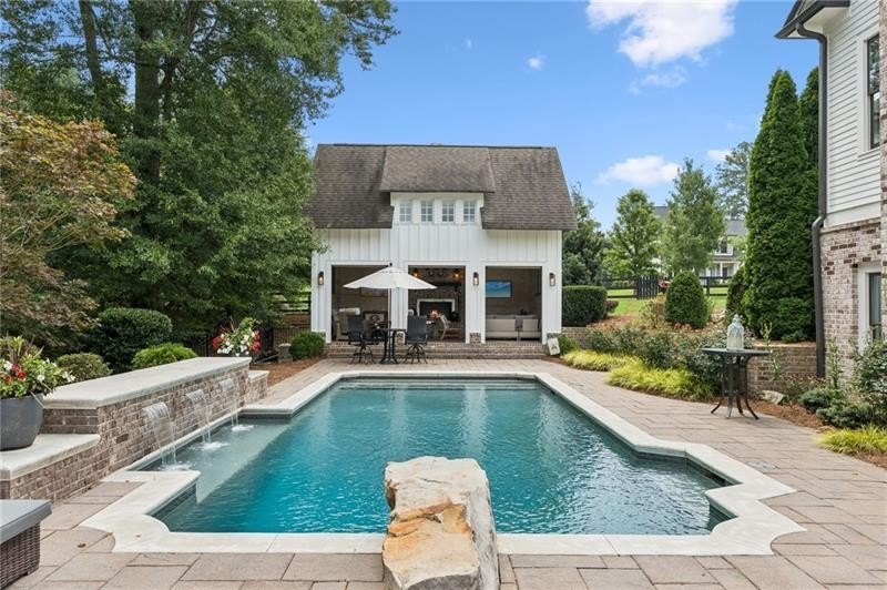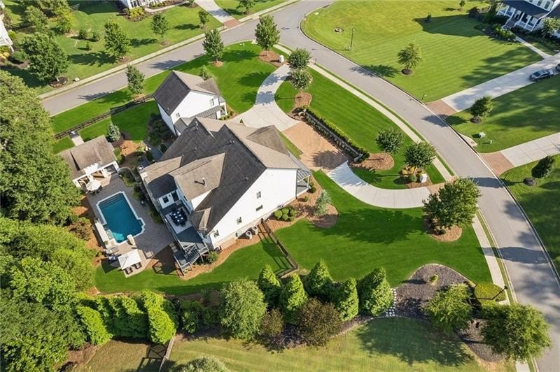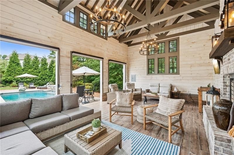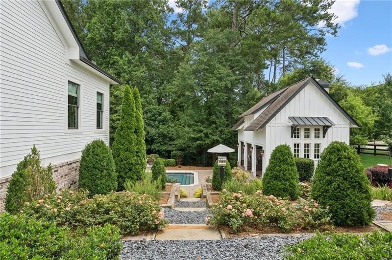 Welcome to this extraordinary former model home in The Grove, one of Milton's most coveted communities, known for its rolling landscapes, peaceful setting, and proximity to award-winning schools, including Birmingham Falls Elementary, Northwestern Middle, and Milton High. This is an incredibly rare opportunity featuring a pool, a four-car garage (including a detached two-car garage with a full living suite above), a detached pool house, and a beautifully fenced-in property. This residence effortlessly blends sophisticated design with everyday comfort, offering seven bedrooms, six and a half bathrooms, and countless high-end details throughout. The detached two-car carriage house includes a complete living suite with a full kitchen, washer and dryer, and a full bathroom perfect for guests, a private office, or additional living space. A wide rocking chair front porch leads to a striking custom iron front door and into a grand two-story foyer that sets the tone for the home's elegance. The open floor plan is anchored by a spacious great room with coffered ceilings, flowing seamlessly into a chef's kitchen complete with a six-burner range, pot filler, oversized island, ice maker, butler's pantry, and an expansive walk-in pantry. Just off the kitchen, a vaulted keeping room with a cozy fireplace creates a warm and inviting atmosphere, ideal for both entertaining and quiet evenings at home. The main level includes a beautifully designed mudroom with abundant built-ins, a glass and iron accent door, built-in washer and dryer, and an LG Styler steam unit an unexpected luxury that adds ease to daily living. The primary suite is a true retreat, featuring tray ceilings, a large custom walk-in closet, and a spa-like bathroom that includes a freestanding soaking tub, dual vanities, and an expansive double shower with high-end finishes throughout. Upstairs, four generously sized bedrooms are accompanied by three full bathrooms, offering comfort and privacy for family or guests. One of the ensuite bedrooms is perfectly suited for use as a home office or an additional family room, providing valuable flexibility for a variety of needs. The finished terrace level expands the home's livable space and offers exceptional versatility, with a private bedroom and full bathroom, a fully equipped second kitchen with a large island, wine fridge, microwave, and ice machine, as well as dedicated areas for a home gym, game room, and media room. Whether entertaining large groups or accommodating extended family, this level is designed to adapt beautifully to any lifestyle. Set on a beautifully manicured one-acre lot, the outdoor living spaces are equally impressive. The backyard features a saltwater pool and a resort-style pool house with vaulted ceilings, exposed wood beams, a fireplace, and a comfortable lounge area. A flat, expansive front yard with a circular driveway and a fully fenced backyard complete the setting, offering both space and privacy in a peaceful residential environment. Ideally located just minutes from Scottsdale Farms, The Union Restaurant, Seven Acre BarNGrill, and Downtown Crabapple with easy access to Downtown Alpharetta, Avalon, and GA 400 this home offers the perfect balance of tranquility and convenience. Timeless style, impeccable craftsmanship, and luxurious amenities come together in this one-of-a-kind Milton residence, where everyday life feels like a retreat. Welcome home.