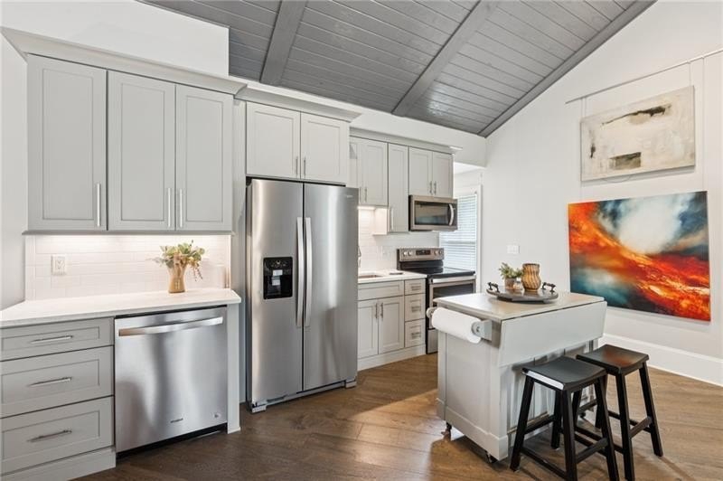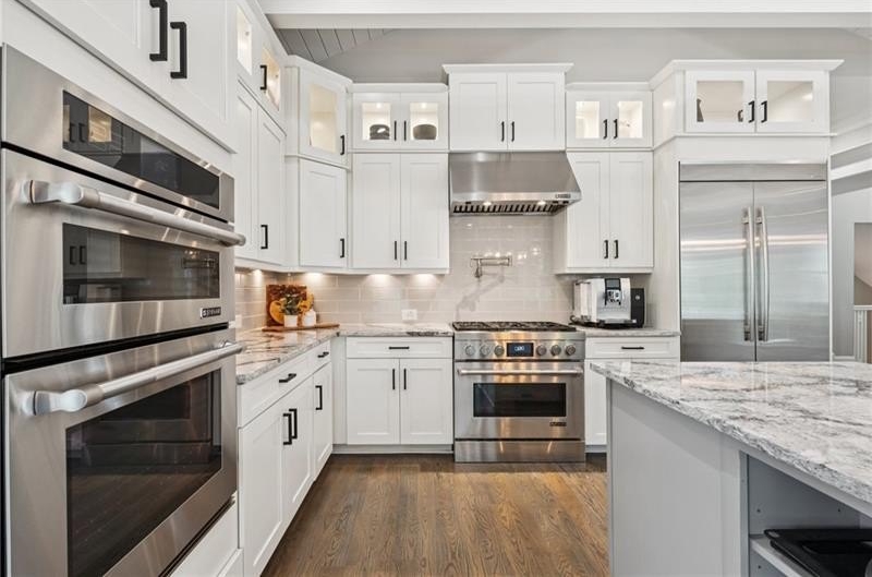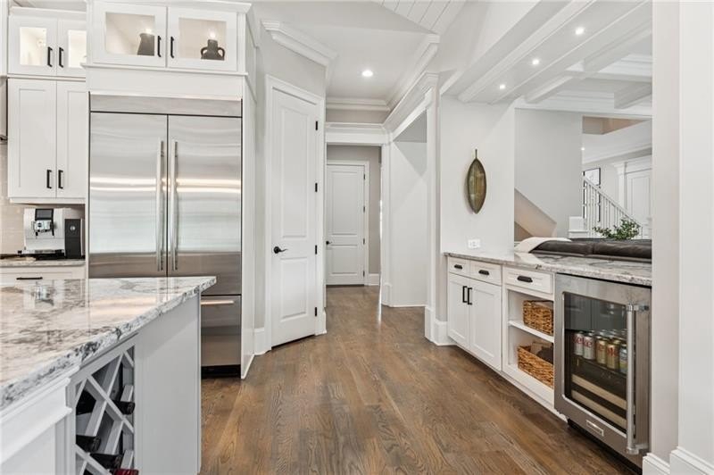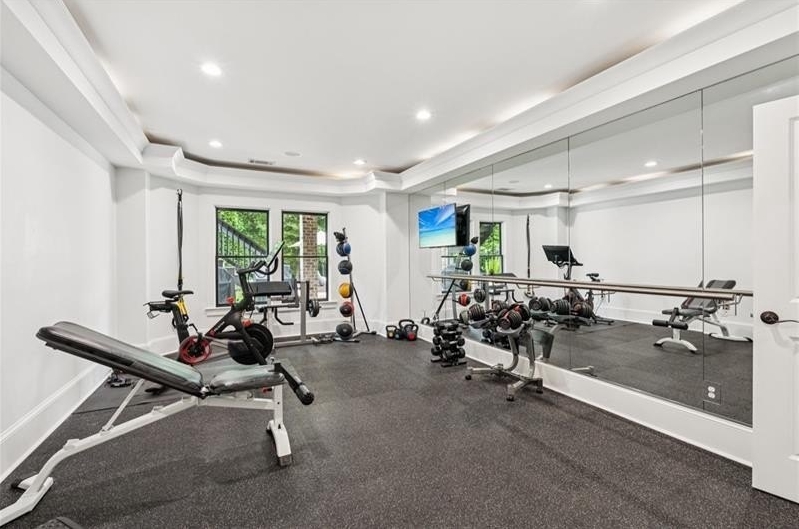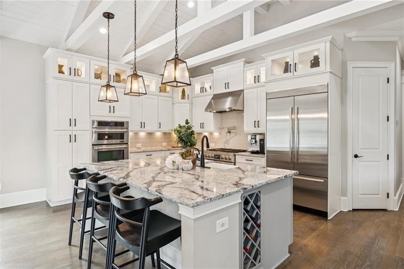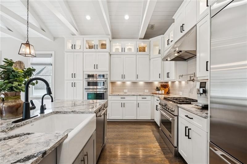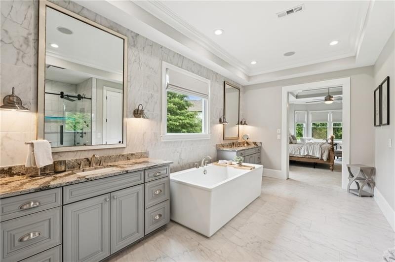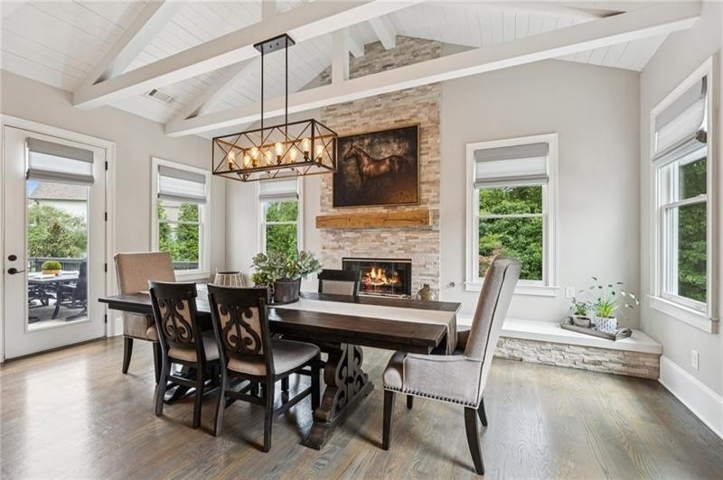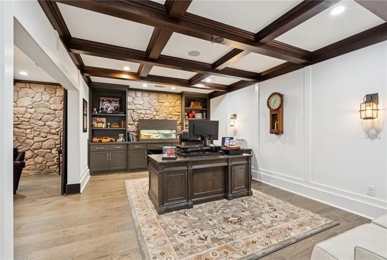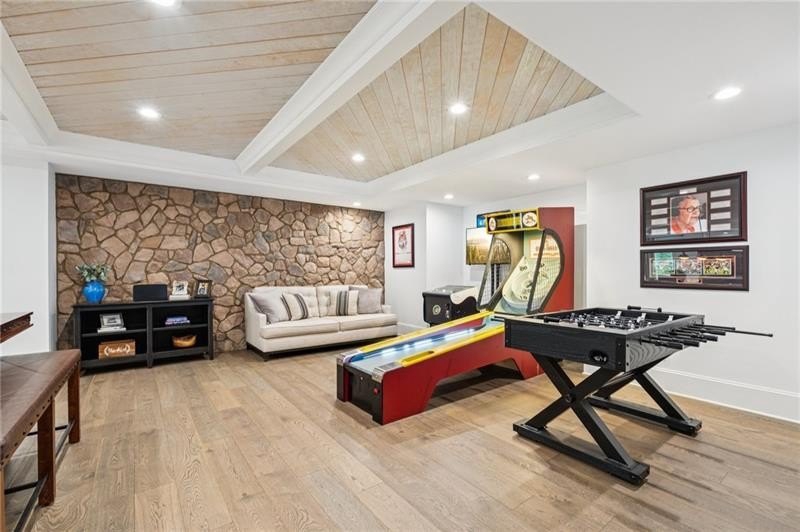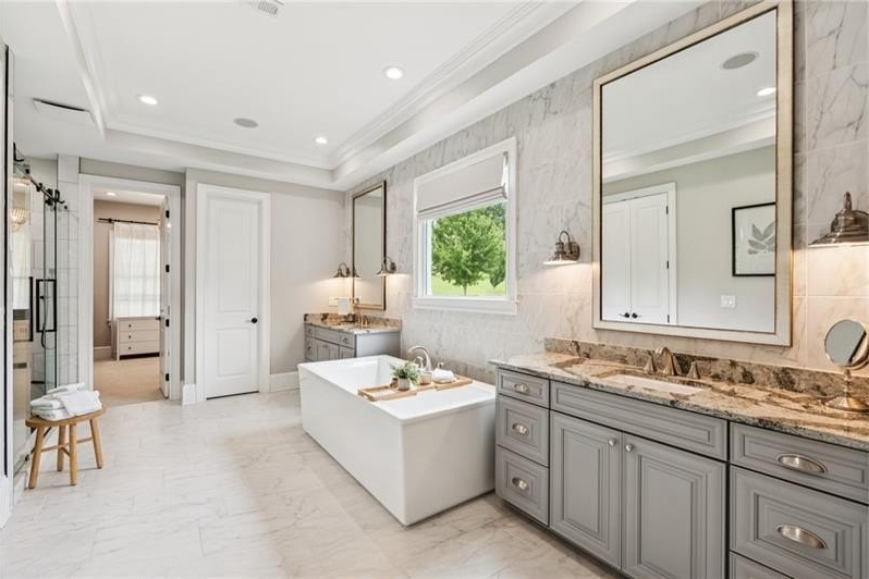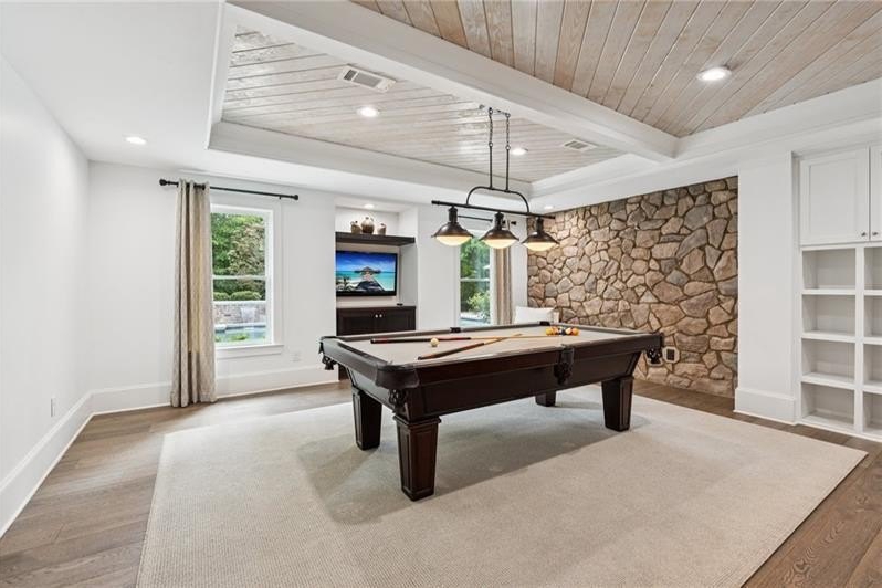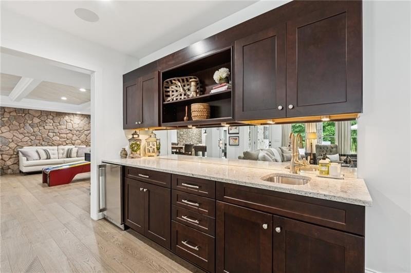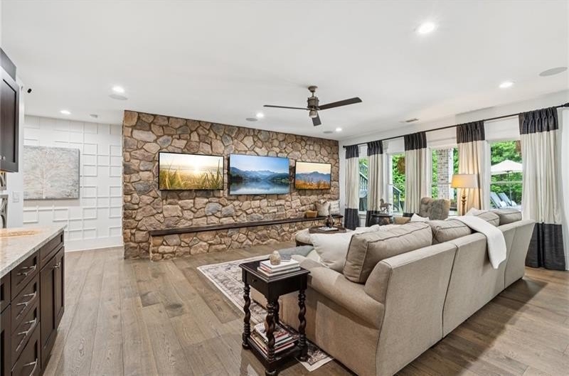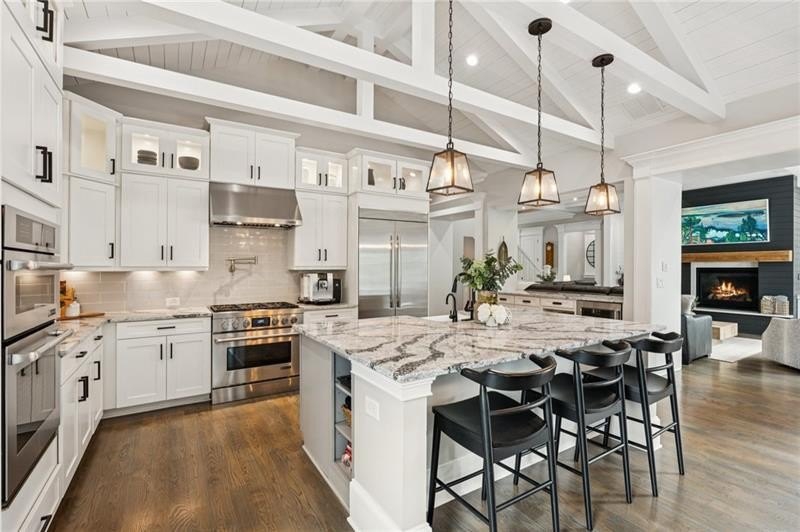 Welcome to this extraordinary former model home in The Grove, one of Milton's most coveted communities, known for its rolling landscapes, peaceful setting, and proximity to award-winning schools, including Birmingham Falls Elementary, Northwestern Middle, and Milton High. This is an incredibly rare opportunity featuring a pool, a four-car garage (including a detached two-car garage with a full living suite above), a detached pool house, and a beautifully fenced-in property. This residence effortlessly blends sophisticated design with everyday comfort, offering seven bedrooms, six and a half bathrooms, and countless high-end details throughout. The detached two-car carriage house includes a complete living suite with a full kitchen, washer and dryer, and a full bathroom perfect for guests, a private office, or additional living space. A wide rocking chair front porch leads to a striking custom iron front door and into a grand two-story foyer that sets the tone for the home's elegance. The open floor plan is anchored by a spacious great room with coffered ceilings, flowing seamlessly into a chef's kitchen complete with a six-burner range, pot filler, oversized island, ice maker, butler's pantry, and an expansive walk-in pantry. Just off the kitchen, a vaulted keeping room with a cozy fireplace creates a warm and inviting atmosphere, ideal for both entertaining and quiet evenings at home. The main level includes a beautifully designed mudroom with abundant built-ins, a glass and iron accent door, built-in washer and dryer, and an LG Styler steam unit an unexpected luxury that adds ease to daily living. The primary suite is a true retreat, featuring tray ceilings, a large custom walk-in closet, and a spa-like bathroom that includes a freestanding soaking tub, dual vanities, and an expansive double shower with high-end finishes throughout. Upstairs, four generously sized bedrooms are accompanied by three full bathrooms, offering comfort and privacy for family or guests. One of the ensuite bedrooms is perfectly suited for use as a home office or an additional family room, providing valuable flexibility for a variety of needs. The finished terrace level expands the home's livable space and offers exceptional versatility, with a private bedroom and full bathroom, a fully equipped second kitchen with a large island, wine fridge, microwave, and ice machine, as well as dedicated areas for a home gym, game room, and media room. Whether entertaining large groups or accommodating extended family, this level is designed to adapt beautifully to any lifestyle. Set on a beautifully manicured one-acre lot, the outdoor living spaces are equally impressive. The backyard features a saltwater pool and a resort-style pool house with vaulted ceilings, exposed wood beams, a fireplace, and a comfortable lounge area. A flat, expansive front yard with a circular driveway and a fully fenced backyard complete the setting, offering both space and privacy in a peaceful residential environment. Ideally located just minutes from Scottsdale Farms, The Union Restaurant, Seven Acre BarNGrill, and Downtown Crabapple with easy access to Downtown Alpharetta, Avalon, and GA 400 this home offers the perfect balance of tranquility and convenience. Timeless style, impeccable craftsmanship, and luxurious amenities come together in this one-of-a-kind Milton residence, where everyday life feels like a retreat. Welcome home.