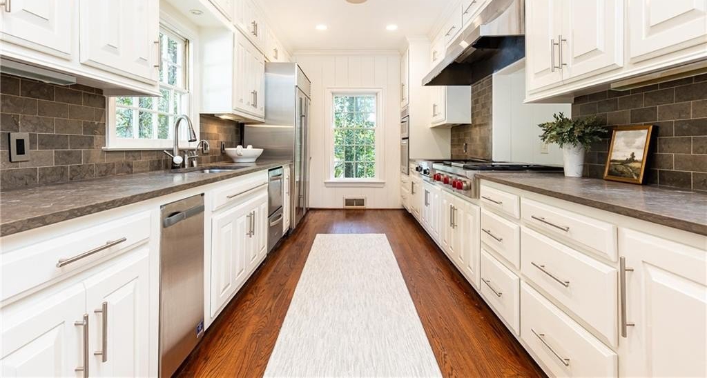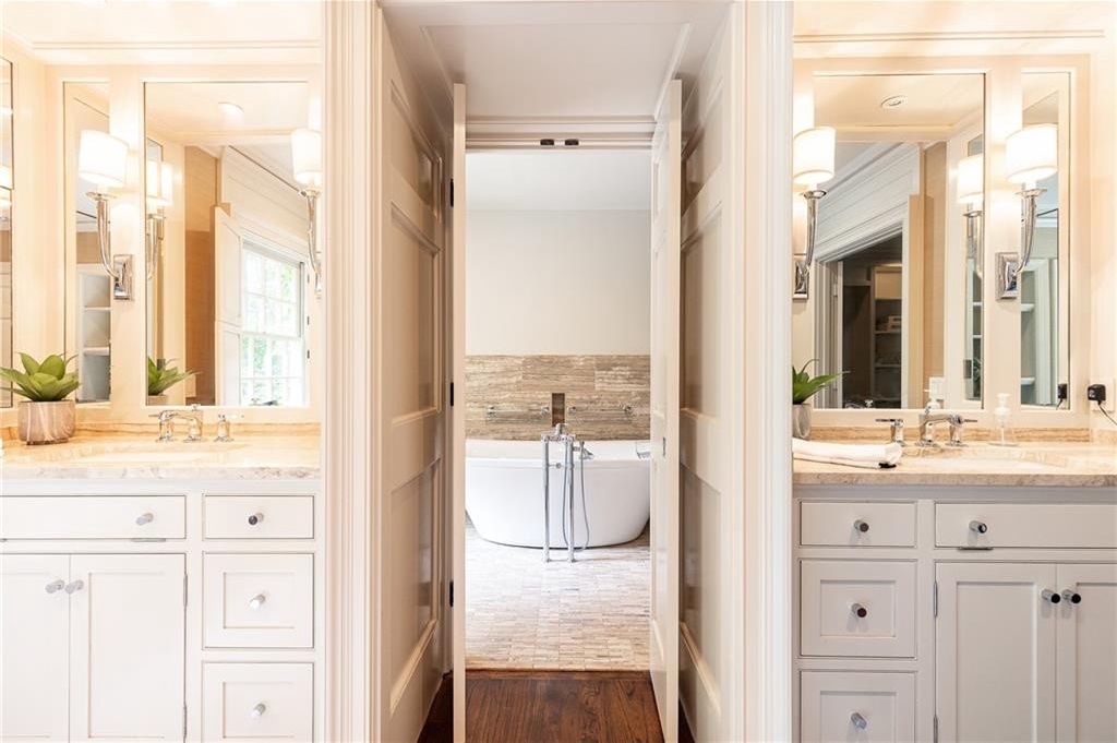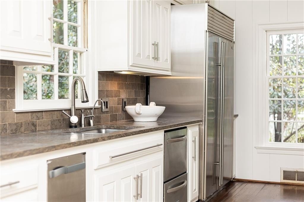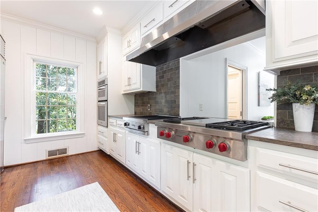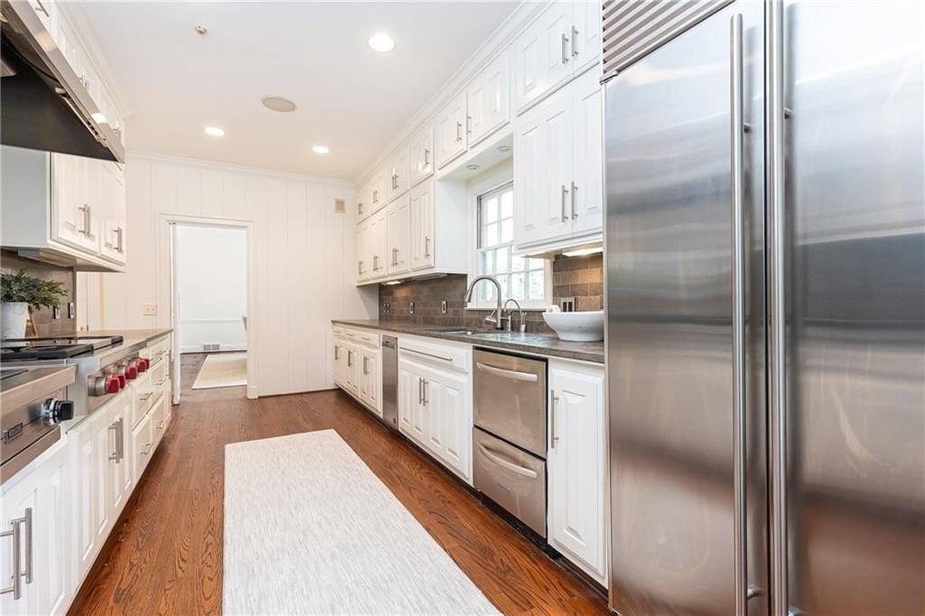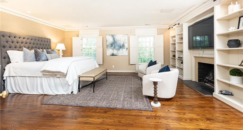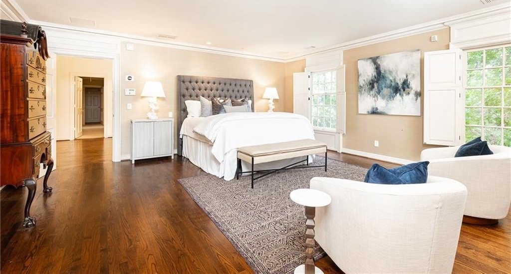 Situated on over 2 Acres on one of Buckhead's most prestigious streets, this home exudes elegance and sophistication. The driveway, flanked by cherry trees, leads to a beautiful motor court offering an abundance of off street parking for guests. There are spacious living and dining areas throughout the main level including a fireside breakfast/keeping room with a wine cooler and beverage drawers. The kitchen is updated with a Wolf cook top, indoor grill, and solid surface counters. Completing the main level is an en-suite bedroom, laundry, half bath and a large study. The primary bedroom along with 2 en-suite bedrooms are upstairs. The primary bath has been updated with waterfall shower, dual vaniities and multiple walk-in closets. The lower level is finished with a recreation/media room, exercise room and a half bathroom. The flat yard has plenty of room for a pool, pickle ball or both! Cherokee Town Club is across the street and a quick walk to Whole Foods and Buckheads finest dining.
