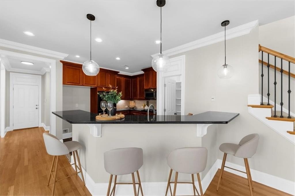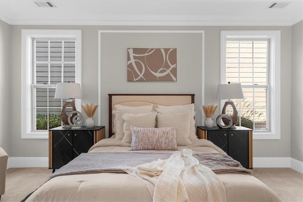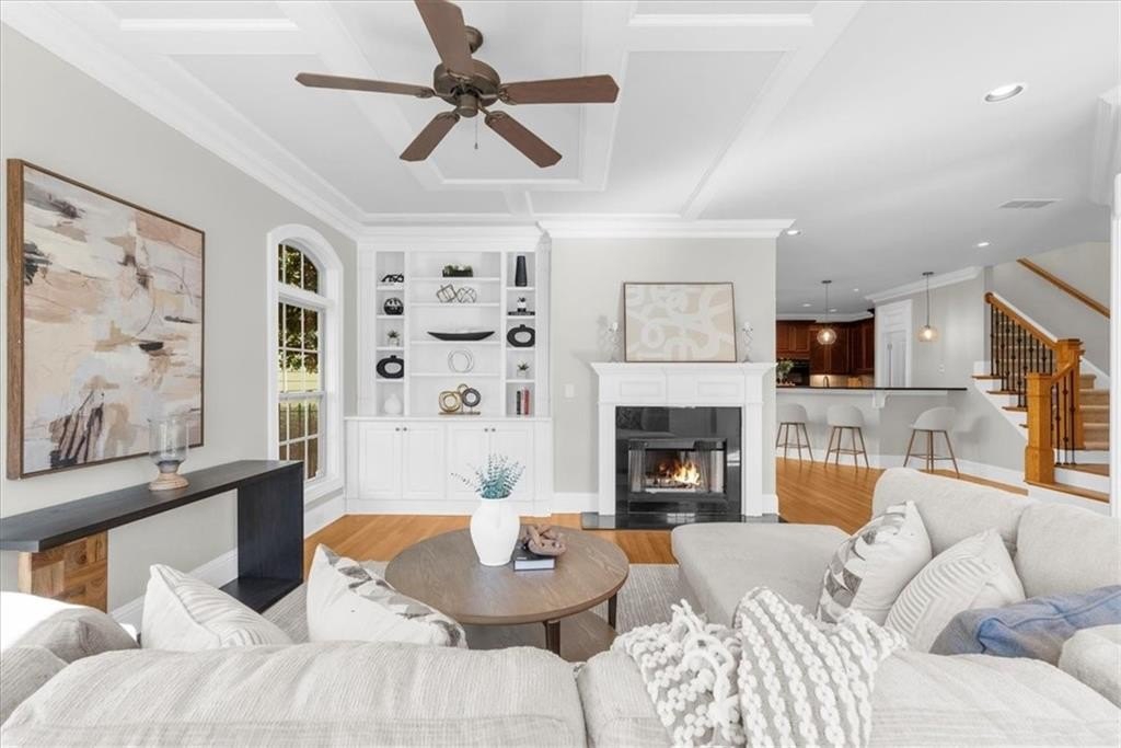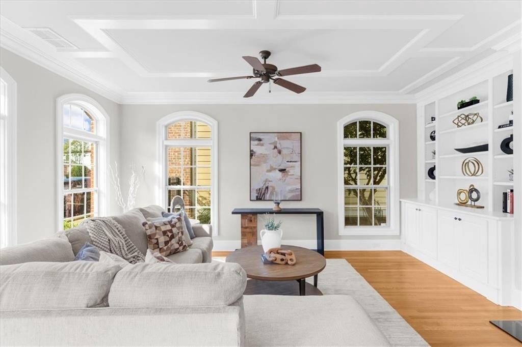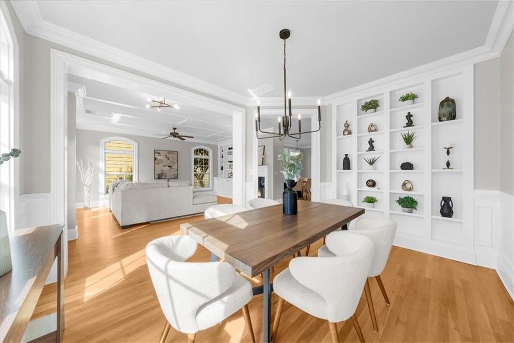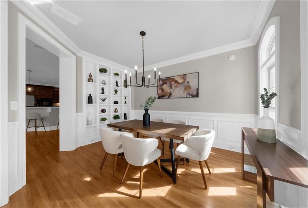Welcome to this gorgeous move-in ready 4 bedroom, 3.5 bathroom home in the highly sought-after gated community of Abberley Towneship. This home has been beautifully cared for and provides a low-maintenance lifestyle, with yard care included in the HOA. The bright and open-concept floor plan features high ceilings, extensive custom woodwork, built-in bookshelves, coffered ceilings, high-end crown molding, and a charming bench in the eat-in kitchen. The main level includes a spacious master suite with trey ceiling, vaulted bathroom ceiling, soaking tub, separate shower, dual vanity, and a custom closet system. The kitchen is a chef’s dream with granite countertops, abundant cabinetry, custom pantry, double oven, and gas cooktop.