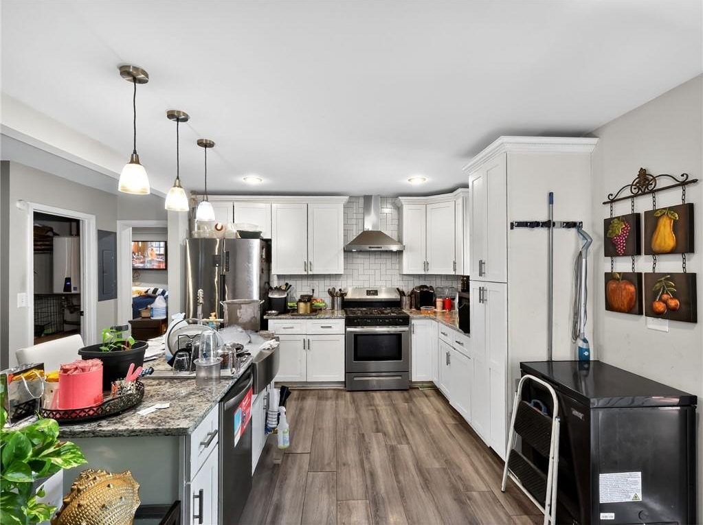 Step into an open-concept layout ideal for entertaining, with a stunning kitchen that boasts a large island, stainless steel appliances, granite countertops, and a seamless view into the spacious living room and dining area. Whether you're hosting guests or enjoying a quiet evening in, this home is designed for versatility and warmth.