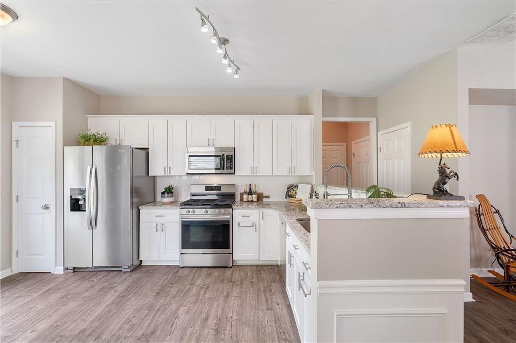 Welcome home to this freshly painted 2-bedroom, 2-bathroom RANCH designed for easy, one-level living in the highly sought-after Manchester Court subdivision! Enjoy a beautiful PRIVATE FENCED YARD and COVERED PATIO! Upon entering the foyer, you will be led into the spacious great room, dining area, and kitchen offering a bright, open-concept floor plan with new LVP flooring, 2 inch wood blinds, and an updated kitchen with new cabinets, granite countertops, tiled backsplash and stainless steel appliances. Both bedrooms feature brand new carpeting and have ensuite bathrooms that have been updated with new cabinetry, solid surface countertops and tiled floors. Manchester Court has sidewalk lined streets, is known for its well-manicured lots, professional landscaping (included in the HOA) and a welcoming clubhouse. All of this is just minutes from Northside Forsyth Hospital, The Collection, Market Place Blvd, downtown Cumming, GA 400, and the vibrant new Cumming City Center.