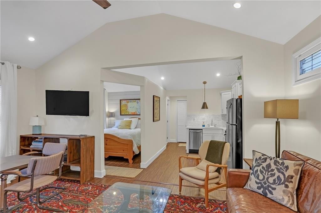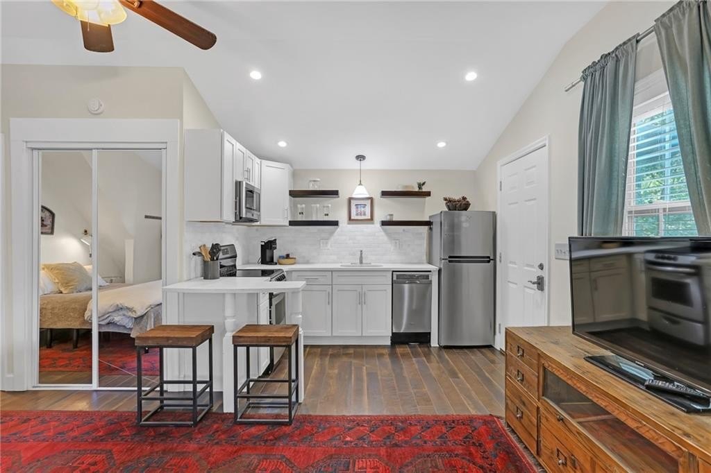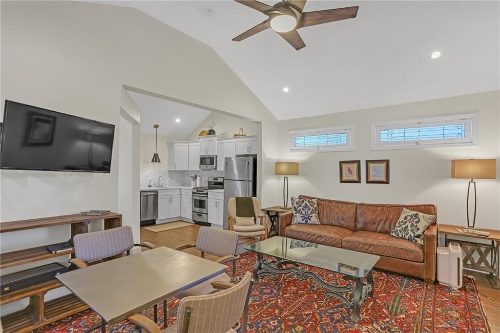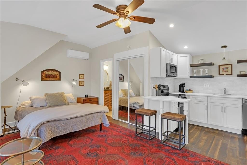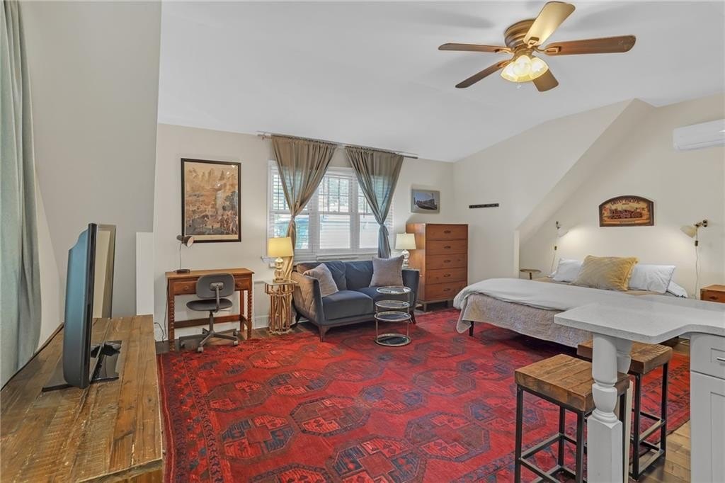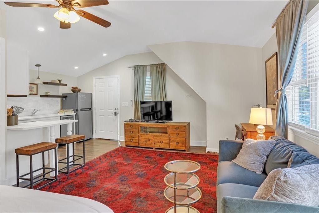 The third dwelling is a fully equipped studio apartment, currently a successful Airbnb short-term rental bringing in $2,400/month. With stainless steel appliances, laundry, and a private entrance & parking, it offers immediate income potential or long-term flexibility.