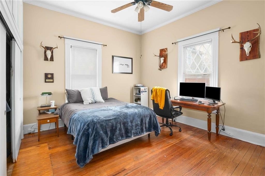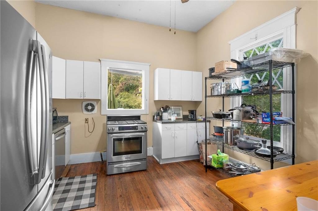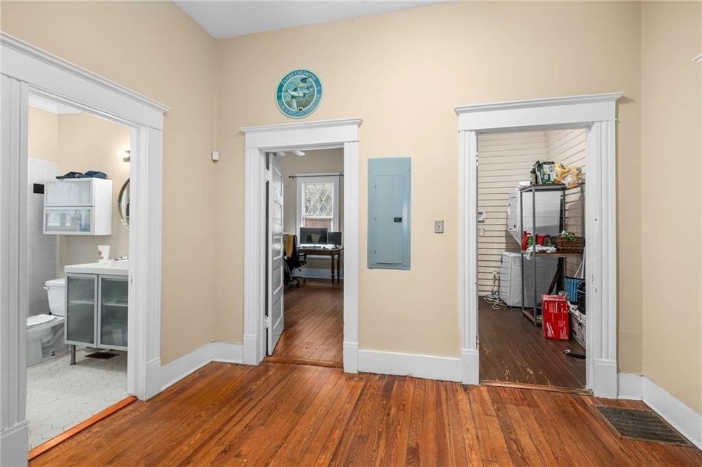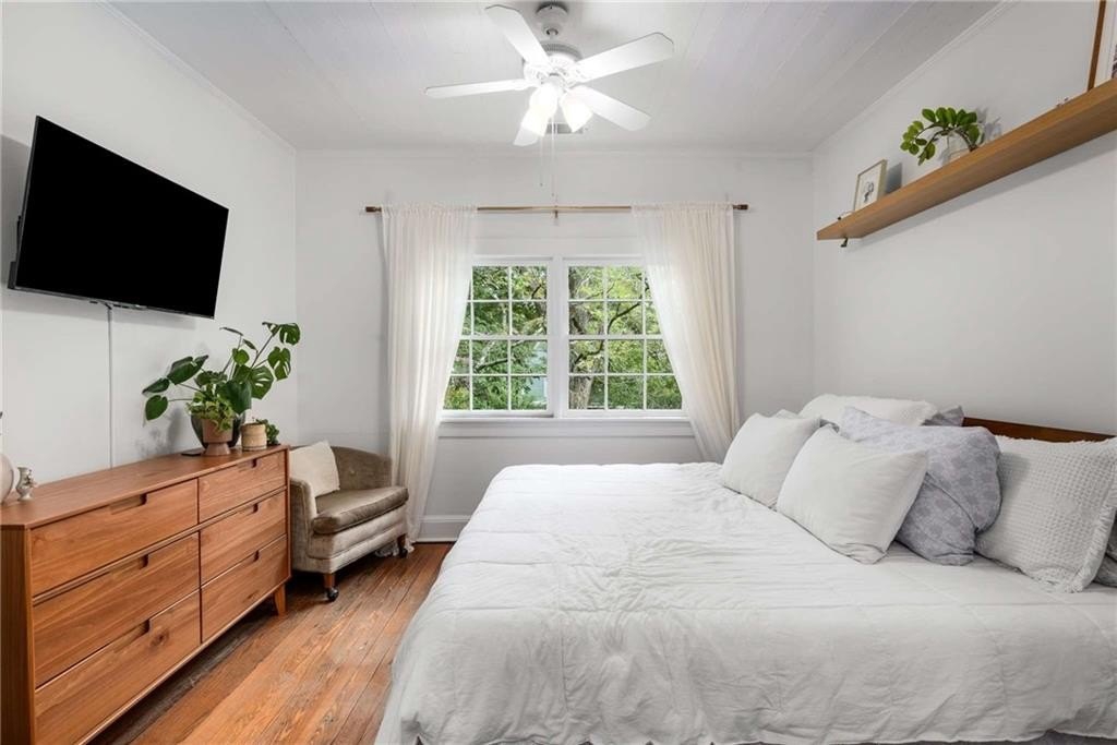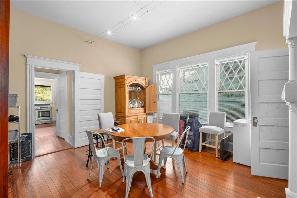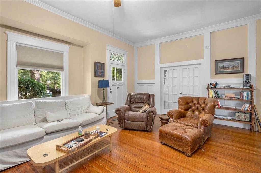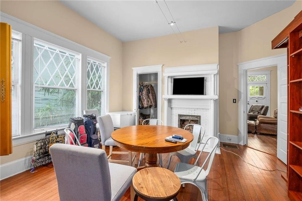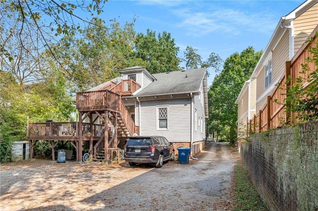 Full of character and history, this classic Inman Park duplex is a rare find in one of Atlanta’s most beloved neighborhoods. Ideally situated just steps from shops, restaurants, and leafy parks, the property also backs directly to the Freedom Path with a seamless connection to the BeltLine. From weekend festivals to evenings on tree-lined streets, the Inman Park lifestyle is truly unmatched. Set on a generous lot, the home offers space both inside and out. The main level showcases three bedrooms and two baths along with a large living room and dining room, all enhanced by soaring ceilings, hardwood floors, crown molding, wainscoting, paneled wood doors, and original decorative fireplaces. Tall windows fill the rooms with natural light, and a mudroom with laundry off the back deck adds everyday convenience to the home’s gracious layout. The upstairs unit is equally inviting, offering two bedrooms and one bath plus a bonus room currently used as a walk-in closet. A spacious primary bedroom with a sitting area anchors the space, complemented by an updated bathroom, dedicated storage and laundry, a charming living room, and a kitchen finished with butcher block countertops. For those interested in restoring the home to a single-family residence, there is an interior stairway to the upper level that could be reopened, making the transition simple and seamless. A large parking area behind the house accommodates multiple vehicles, adding practicality to the property’s historic appeal. With its fantastic original details, flexible floorplan, and a neighborhood known for community spirit and everyday convenience, this duplex presents an exceptional opportunity as an investment, owner-occupied home, or future single-family conversion.