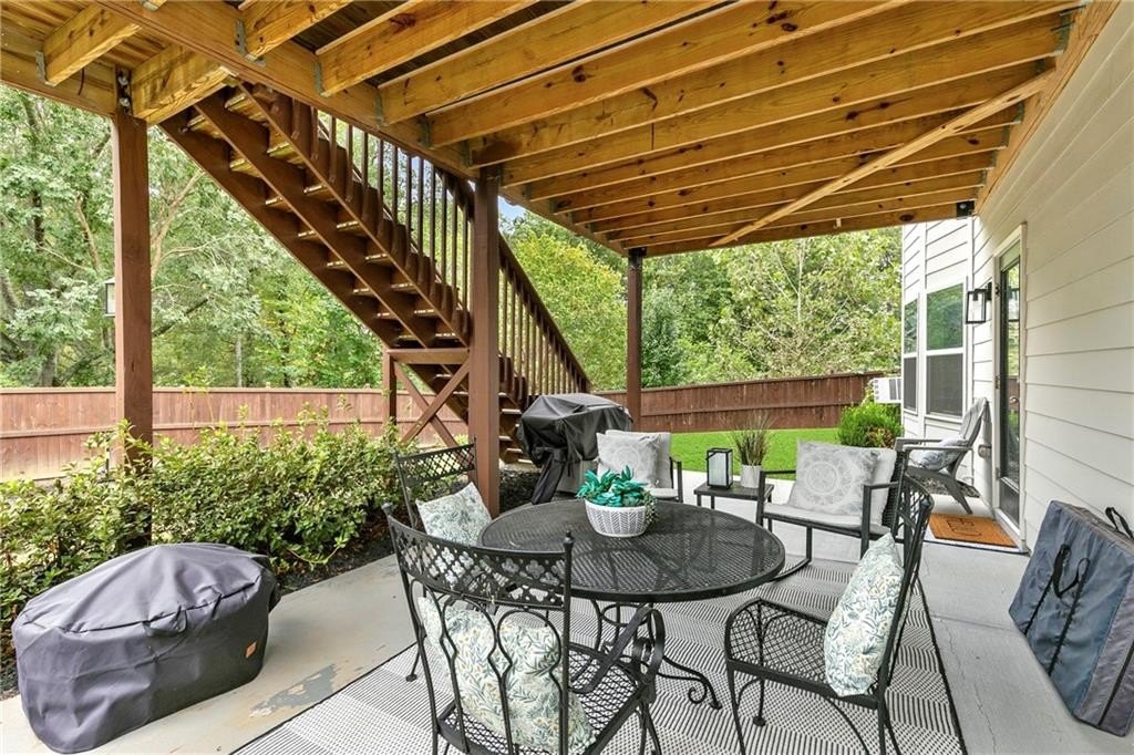 The semi-finished terrace-level basement expands your living space with versatility. Complete with its own heating and cooling unit, this area is perfect for a home gym, office, or entertaining space and walks out to a private patio, creating a seamless indoor-outdoor connection.