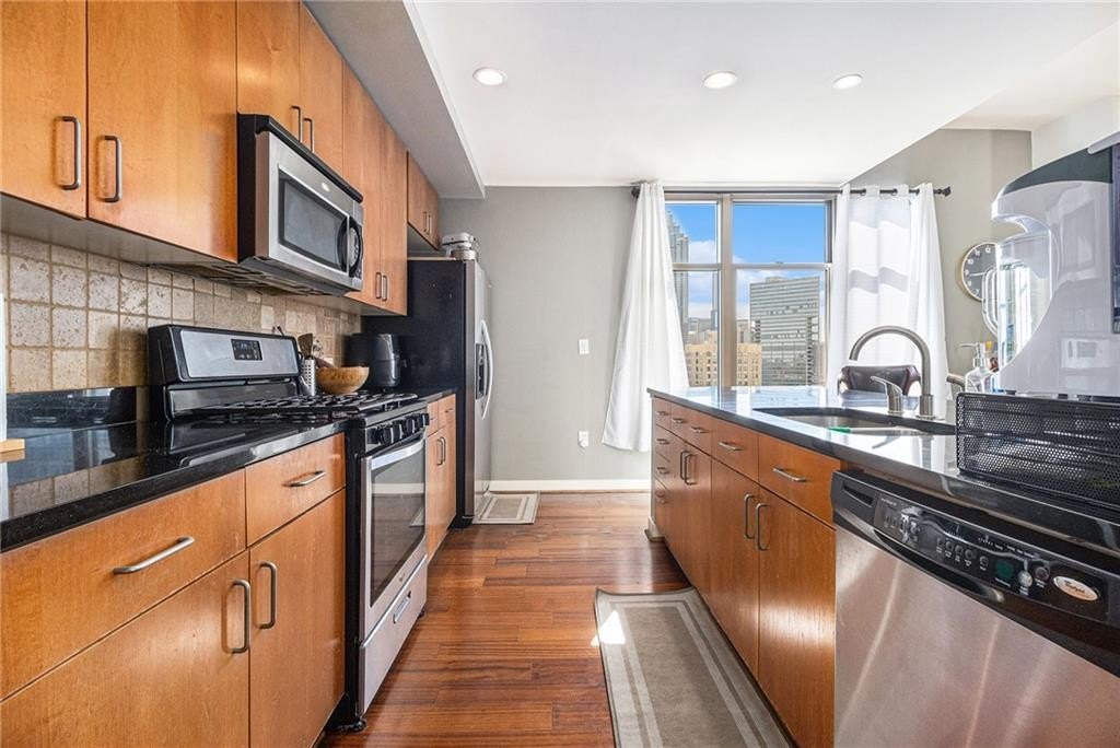 Enjoy your private walk-out balcony with sweeping views of Peachtree Street. Additional amenities include a resort-style pool, catering kitchen, and clubhouse on the 7th floor. This home also comes with two side-by-side parking spaces, guest parking, and a 5' x 7.5' storage unit.