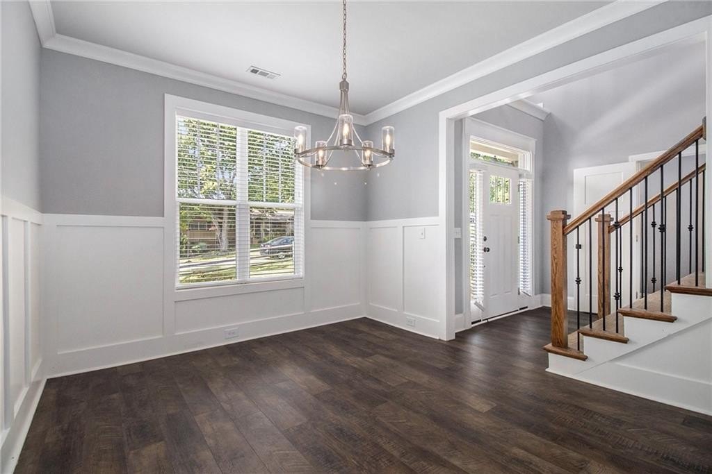 Welcome to this beautifully maintained 4-bedroom, 2.5-bath ranch home in Gainesville, perfectly blending comfort, style, and convenience—all just minutes from Lake Lanier! Step into the grand 2-story foyer, where natural light and tall ceilings immediately set the tone for the home’s open and airy feel. The formal dining room offers the perfect space for gatherings, while the vaulted family room with a cozy