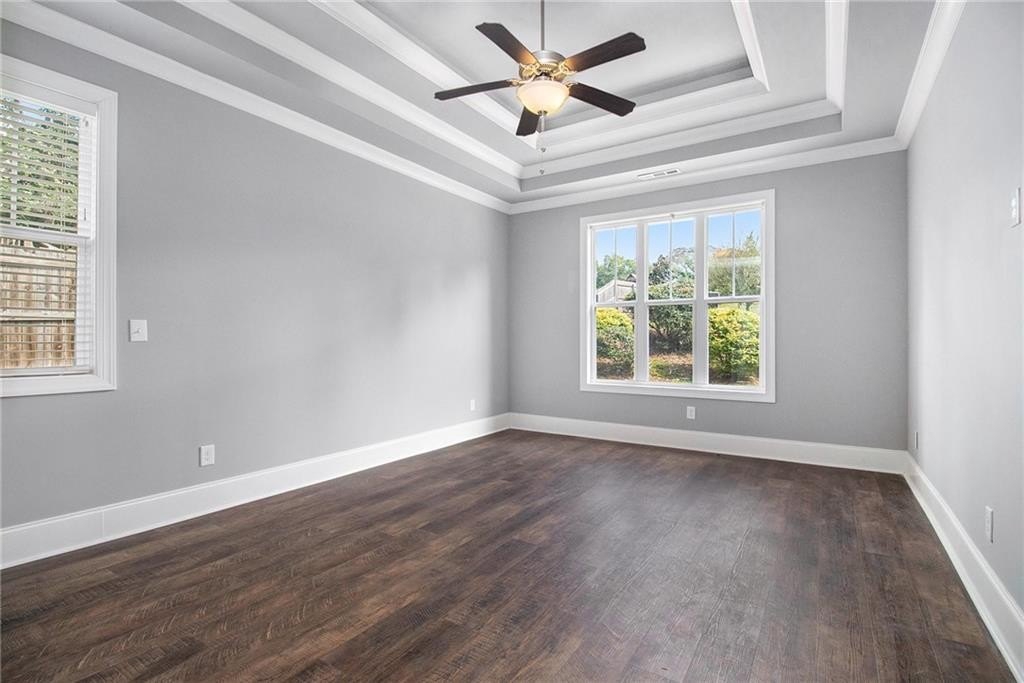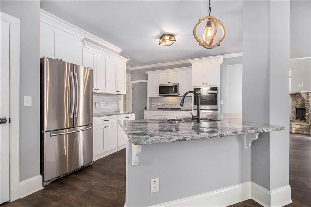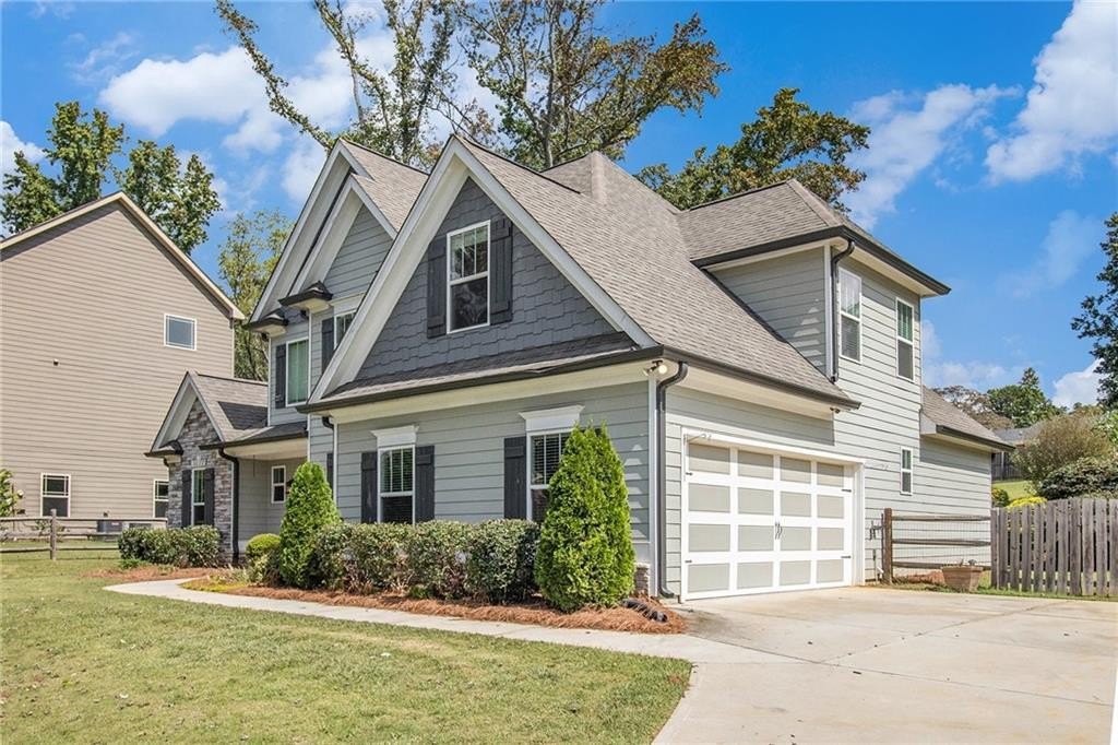 fireplace creates a warm and inviting atmosphere. The chef’s kitchen is sure to impress with its white cabinets, stone counters, tiled backsplash, stainless steel appliances, and breakfast bar seating, all designed with both function and style in mind. The primary suite on the main level is a true retreat, featuring a tray ceiling, spa-like bath with double vanity, soaking tub, custom-tiled shower, and a large walk-in closet. Upstairs, you’ll find three additional spacious bedrooms, including one with direct access to the full bath, offering plenty of space and privacy for family or guests. Enjoy outdoor living on the patio overlooking the fenced-in backyard, perfect for grilling, entertaining, or relaxing after a day on the lake. With Lake Lanier nearby, you’ll have endless opportunities for boating, fishing, and water recreation. Plus, the home is conveniently located close to Gainesville’s shopping, dining, and entertainment, giving you easy access to everything you need. No HOA means more freedom and flexibility for how you live or invest. This home combines the best of lake-area living with modern comfort—schedule your showing today!