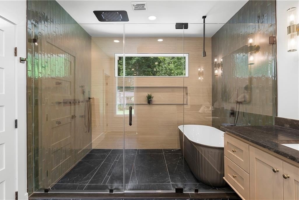 Priced 200K below appraisal! Step into luxury living at its finest in this exceptional custom-built estate nestled in the heart of Atlanta’s coveted 30345 zip code. Every inch of this home has been thoughtfully curated with top-of-the-line finishes, high-performance systems, and timeless design that blends sophistication with comfort. From the moment you arrive, you’re welcomed by exotic landscaping featuring palm trees and banana trees with fruiting bananas, setting the stage for resort-style living. A heated, app-controlled gunite saltwater pool anchors the stunning outdoor oasis, complete with an outdoor bathroom, a wood-burning fireplace, and a built-in gas grill—all designed for effortless entertaining. String lights and recessed exterior lighting, also app-connected, enhance the ambiance well into the evening. Inside, the home showcases exotic hardwood flooring throughout—no carpet in sight—and a fully integrated smart home experience. WiFi-controlled lighting flows seamlessly through the home, including subtle step lighting on the staircase and recessed fixtures throughout. A built-in speaker system provides high-quality sound across indoor living areas, perfect for entertaining or relaxing with your favorite playlist. The main kitchen is a chef’s dream, featuring marble countertops, a 48” cooktop with pot filler, double ovens, a drawer microwave, high-end appliances, a built-in pull-out trash system, and a wine fridge tucked into the oversized island. A marble backsplash adds elegance, while the adjacent butler’s pantry includes a prep sink and a second wine fridge for added convenience. On the lower main level, a fully equipped secondary kitchen includes a full-size refrigerator, cooktop, dishwasher, and sink—ideal for guests, entertaining, or multi-generational living. The home includes two private primary suites. The upper-level suite offers a spa-like bath with heated marble floors, a multi-head shower with built-in jets, and integrated speakers for the ultimate retreat experience. The second suite features its own private balcony and full en-suite bath. Every bedroom in the home includes its own private bathroom and custom built-in closets, offering comfort, privacy, and seamless organization. Additional highlights include three interior fireplaces, a fourth gas fireplace on the patio, a doggy shower and designated pet nook in the laundry room, a 3-car garage with an electric vehicle charger, sprinkler system installed, four HVAC units for zoned climate control, and energy-efficient tankless water heaters. Perfectly located just minutes from Emory, CHOA, top-rated schools, walkable to the Highly acclaimed Globe Academy charter school and the vibrant neighborhoods of Decatur and Brookhaven, this residence offers the perfect blend of modern luxury, thoughtful convenience, and timeless design.