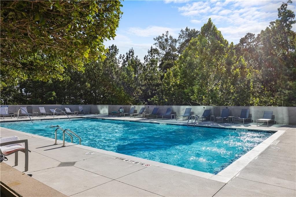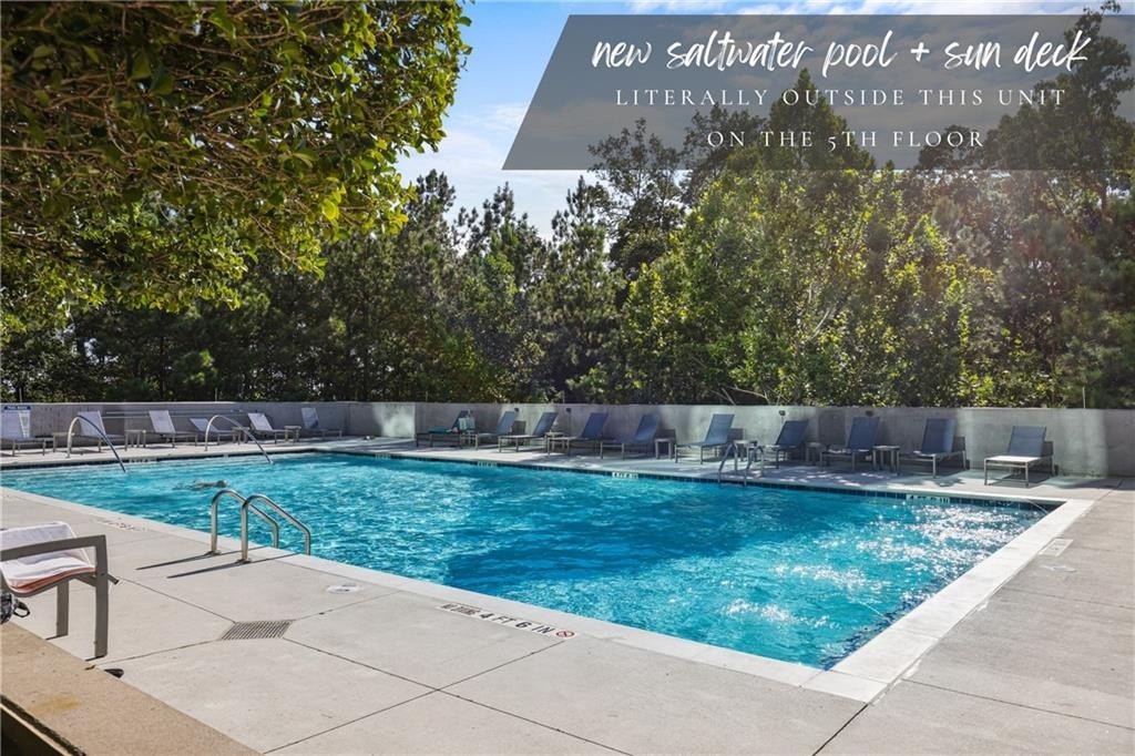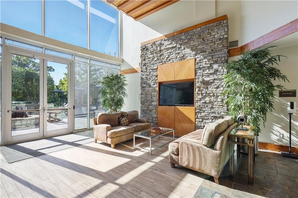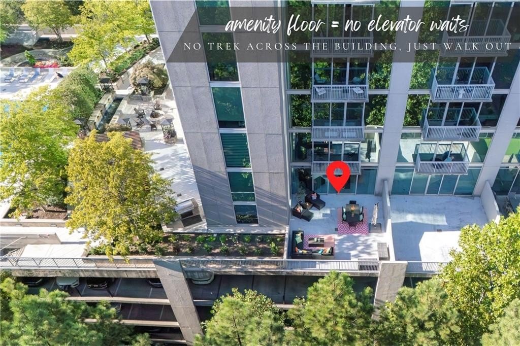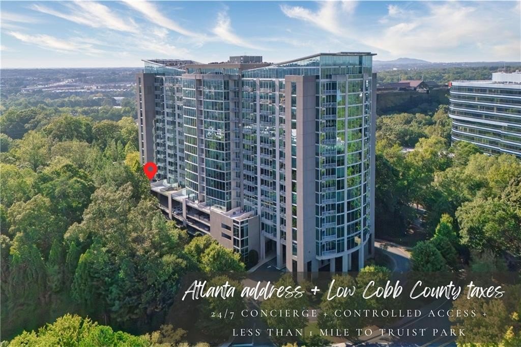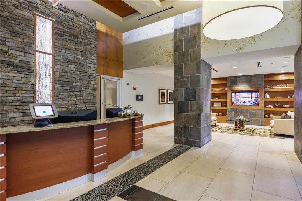 Additional amenities include 24/7 concierge, controlled access to the building and parking deck, sun deck, hot tub, fire pit, outdoor grilling and dining area with pergola, 5th-floor amenity lounge, club and conference rooms, business center, 2 dog parks, 1GB high-speed internet and cable included in HOA dues, and electric vehicle charging stations. The building sits on 6.4 acres within Wildwood, adjacent to the Chattahoochee National Recreation Area with beautifully maintained grounds and direct access to nature trails.