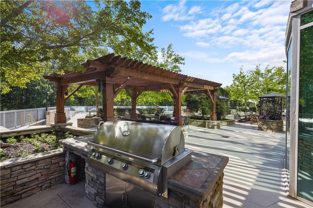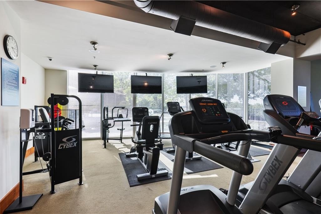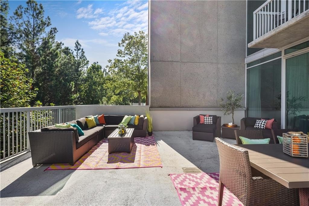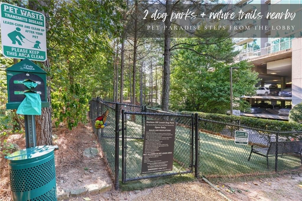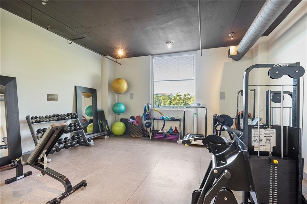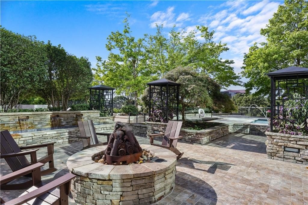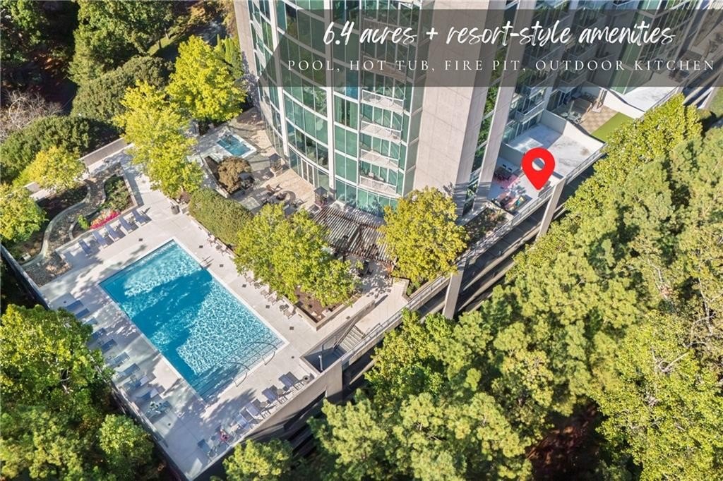 Additional amenities include 24/7 concierge, controlled access to the building and parking deck, sun deck, hot tub, fire pit, outdoor grilling and dining area with pergola, 5th-floor amenity lounge, club and conference rooms, business center, 2 dog parks, 1GB high-speed internet and cable included in HOA dues, and electric vehicle charging stations. The building sits on 6.4 acres within Wildwood, adjacent to the Chattahoochee National Recreation Area with beautifully maintained grounds and direct access to nature trails.