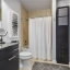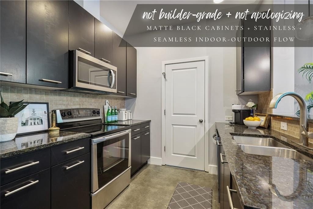 Step inside and discover what happens when industrial-chic design gets a little moody. Custom matte-black cabinetry anchors the open kitchen, where granite counters and stainless appliances set the stage for Saturday morning rituals or impromptu dinner parties that spill seamlessly onto the private outdoor living room. Floor-to-ceiling windows frame every view, while custom drapes add softness to the architectural lines. This isn't a cookie-cutter condo finish. It's a blank canvas that already knows who it is.