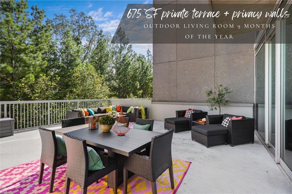 Here's where this unit becomes a unicorn: only 12 units in the entire 237-unit building have oversized terraces, and only 8 are this generously sized. This is one of them. And here's the other rarity: polished concrete floors throughout. Only 2 units in the building have concrete flooring, converted from wood in 2023 to create that gallery-meets-loft energy without trying too hard. With privacy walls flanking either side of the terrace and no neighbors peering in, the space invites brunches, stargazing with a glass of wine, or simply breathing without anyone else's eyes or noise creeping in. The parking garage sits below, so there's no one underneath to hear footsteps or complain about music choices. And because you'll be on the amenity floor, the new saltwater pool, fitness center, clubrooms, and outdoor kitchen are literally steps from the front door. No elevator wait. No trek across the building. Just step out and live.