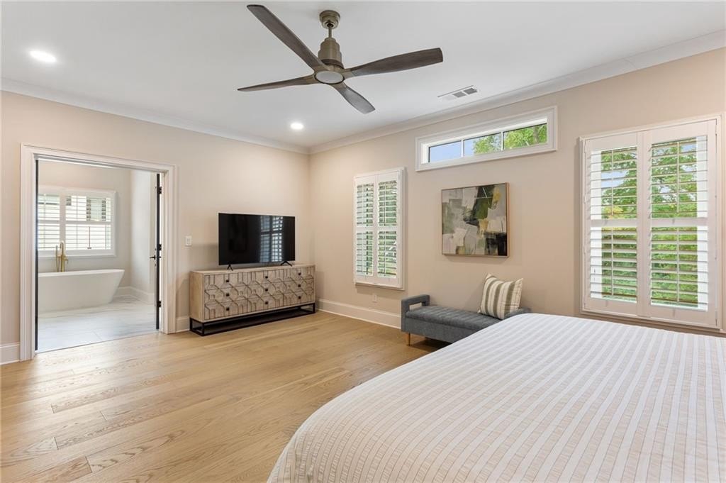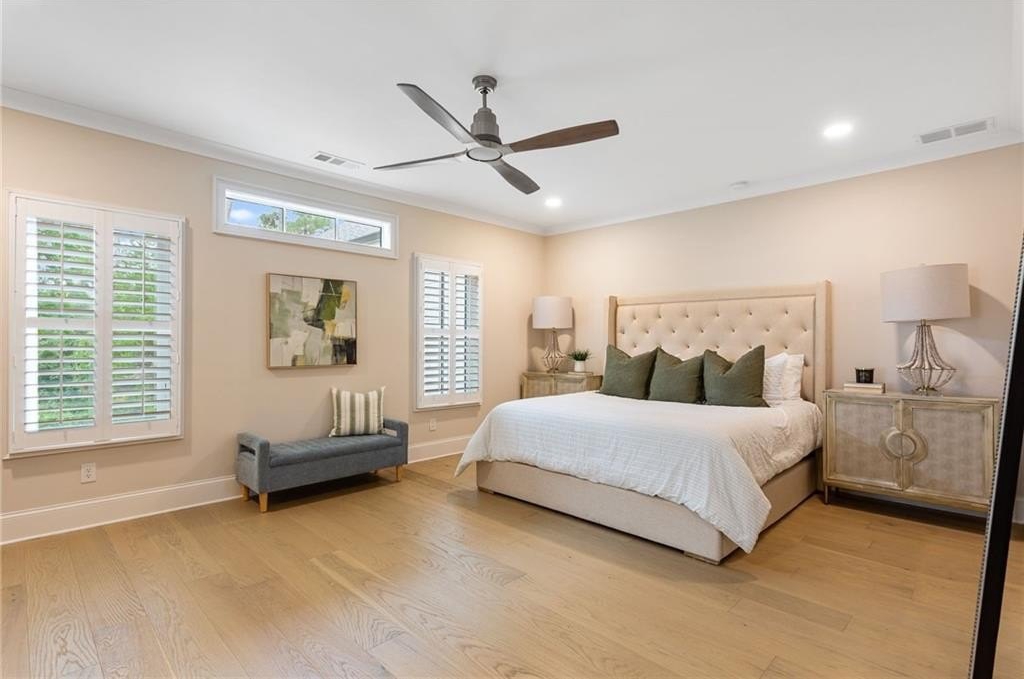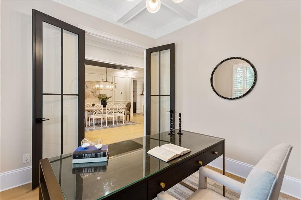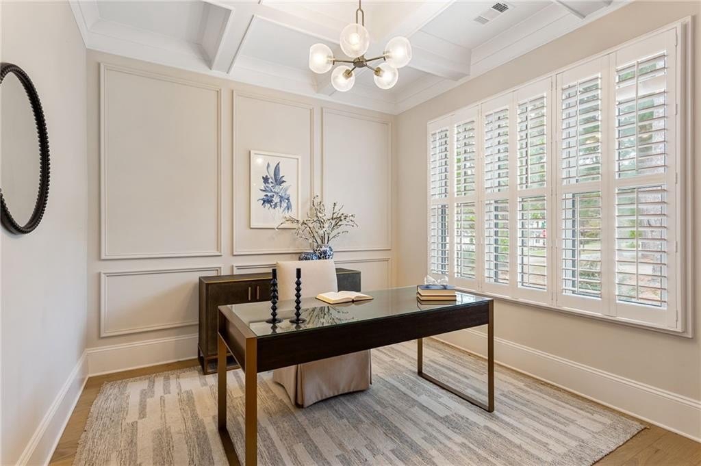 Set on a manicured corner lot with a fenced backyard and covered patio, this property is made for both entertaining and quiet enjoyment. Inside, you’ll find exquisite finishes at every turn: crown molding, coffered ceilings, wainscoting accents, gleaming hardwoods, upgraded lighting, and plantation shutters.