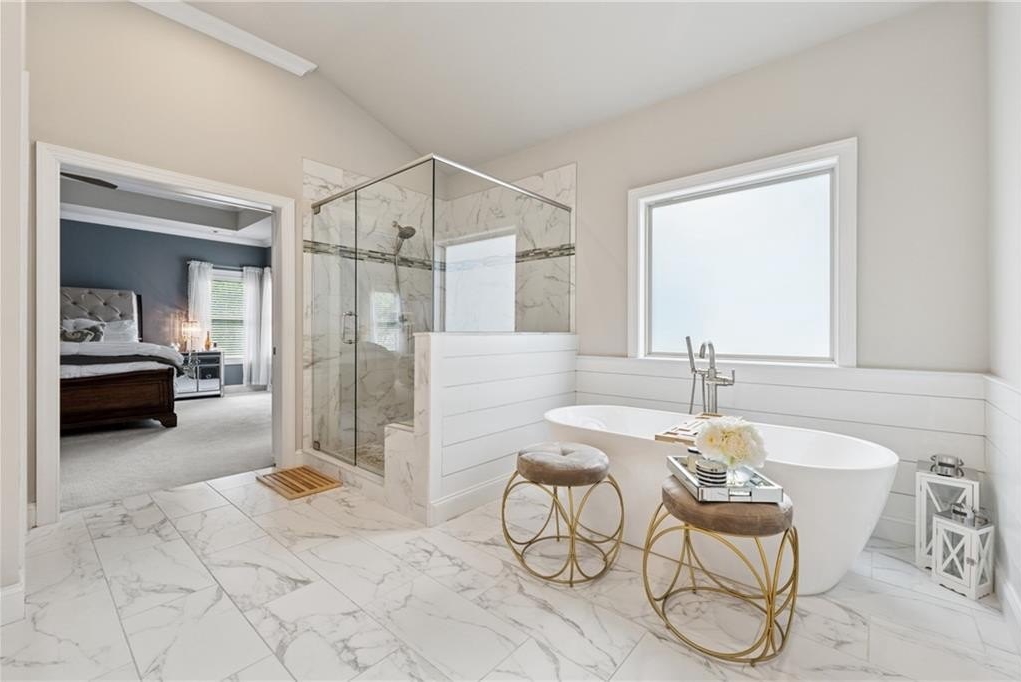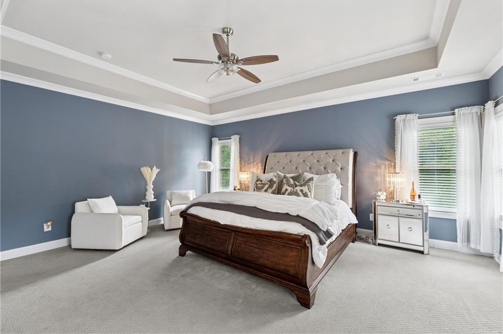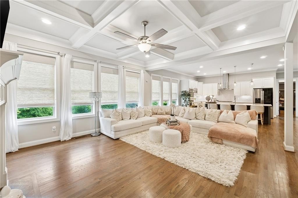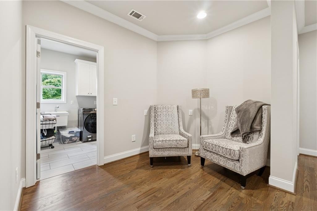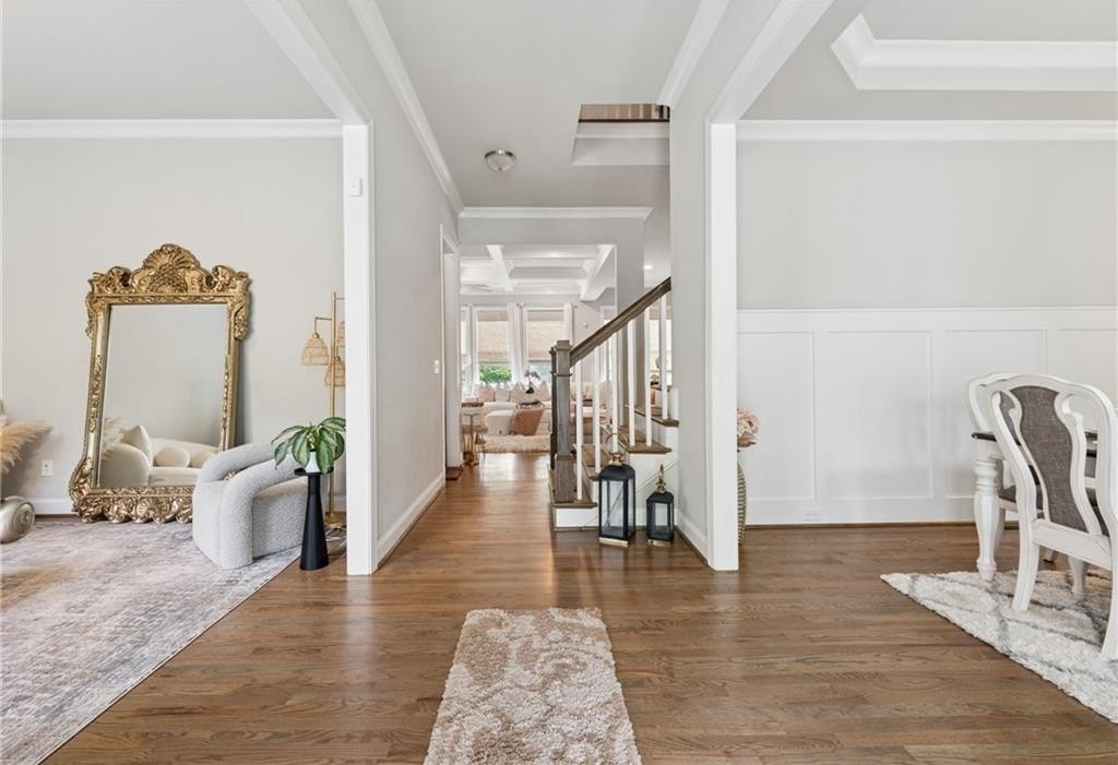 Welcome to Huntley Estates, a collection six thoughtfully designed homes situated around a private cul-de-sac abutting a beautiful wooded area. Priced well below appraised value, this 4-bedroom, 4.5-bathroom custom craftsman has been impeccably maintained by its current owner. The main level welcomes you with rich hardwood floors that seamlessly flow between the dining, sitting, and living areas, anchored by a chef-inspired kitchen featuring Bosch appliances-double ovens and a 5-burner gas cooktop-paired with a massive granite island, a huge walk-in pantry, and a dry bar perfect for entertaining. The generous living space includes window treatments, coffered ceilings, a gas fireplace, and beautiful built-ins. Upstairs, you'll find 4 spacious bedrooms, each with an ensuite bathroom. The primary suite features a frameless glass shower, free-standing tub, and plenty of closet space. The cherry on top of this ideal floor plan is the additional 1,700sqft of potential living space in the unfinished, daylight basement, stubbed and ready for your designs. Step outside to your quiet escape, equipped with tasteful hardscaping and a fire-pit. Additional features include main and terrace level patios, a 2-car garage, mudroom, and plantation shutters.