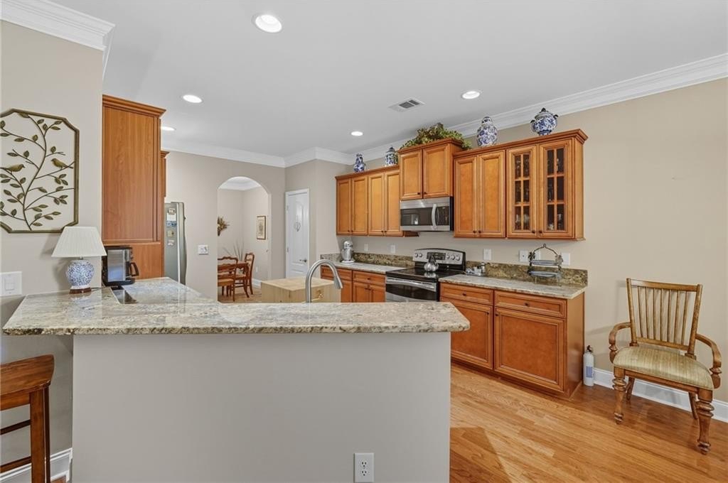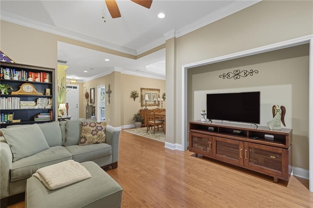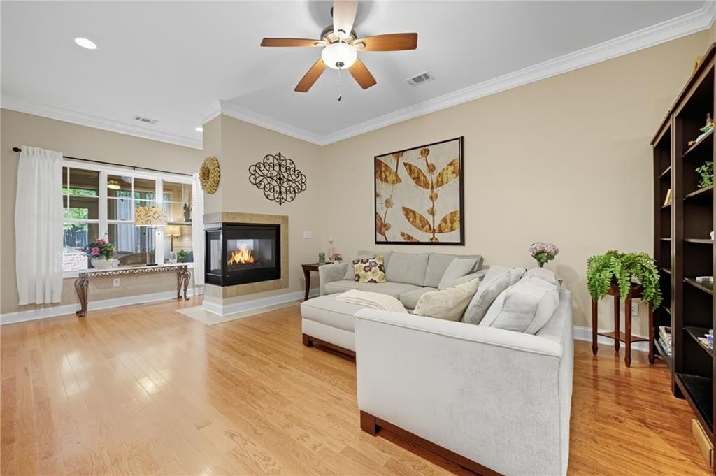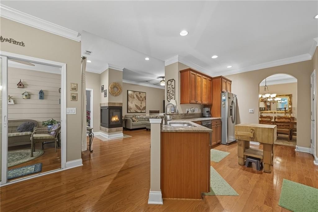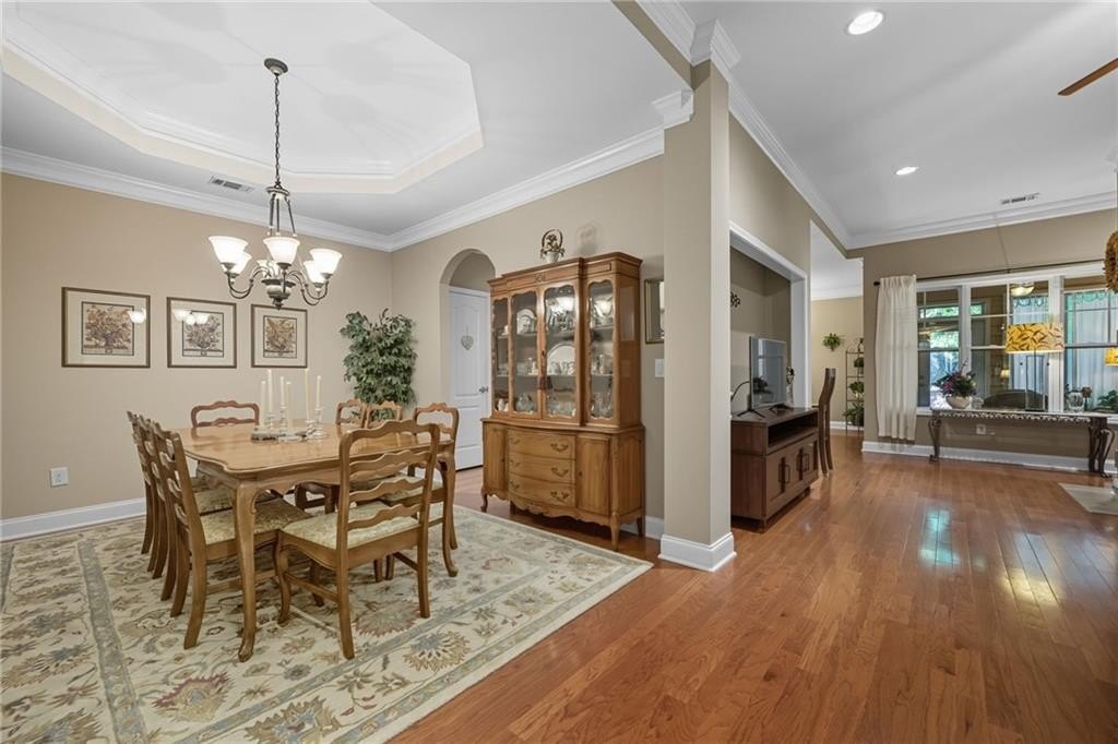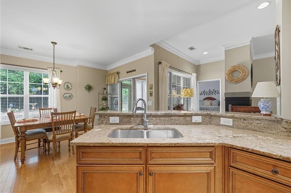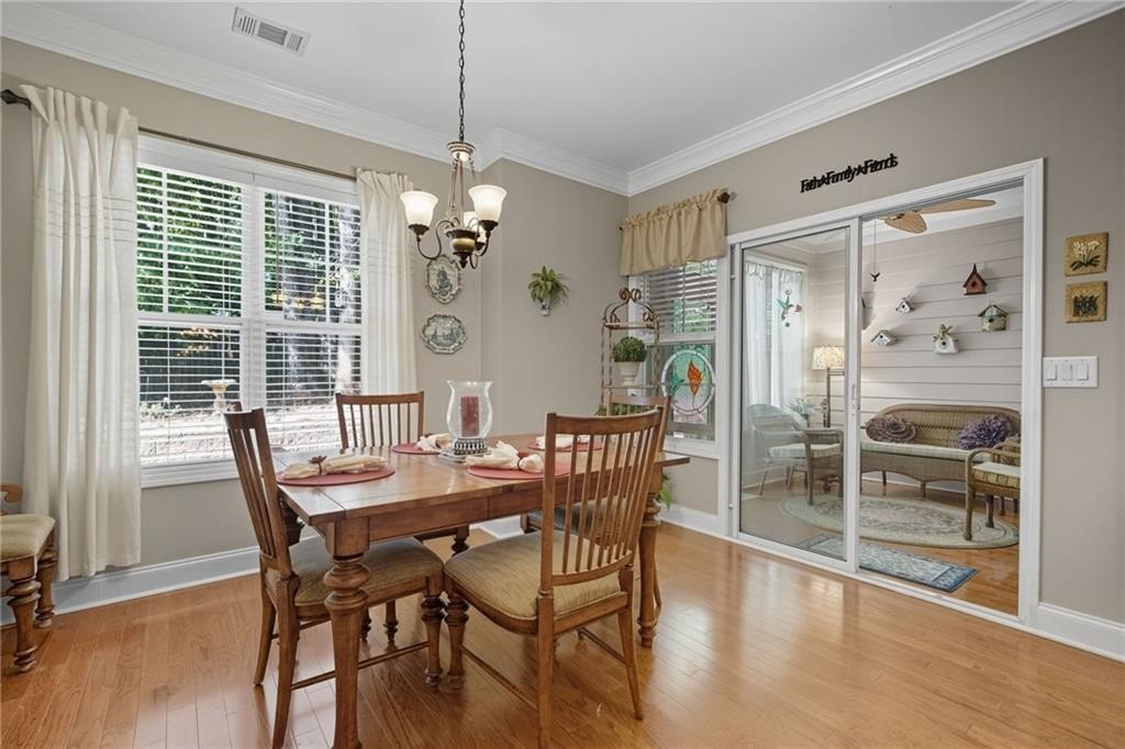 You don’t want to miss this beautiful turn-key villa! Enjoy single-level living with 2 bedrooms, 2 full baths, plus a versatile bonus room that can flex as an office, guest space, or hobby room. The open floor plan features a custom kitchen with eat-in breakfast area, a separate dining space for entertaining, and a sunroom looking out to your private backyard. A 2-car garage adds the comfort of a single-family home with the convenience of villa living. Community amenities include swim, clubhouse, and fitness center — giving you a low-maintenance lifestyle with plenty of perks. Conveniently located near Avalon, shopping, dining, parks, and nearby places of worship. Schedule your showing today!