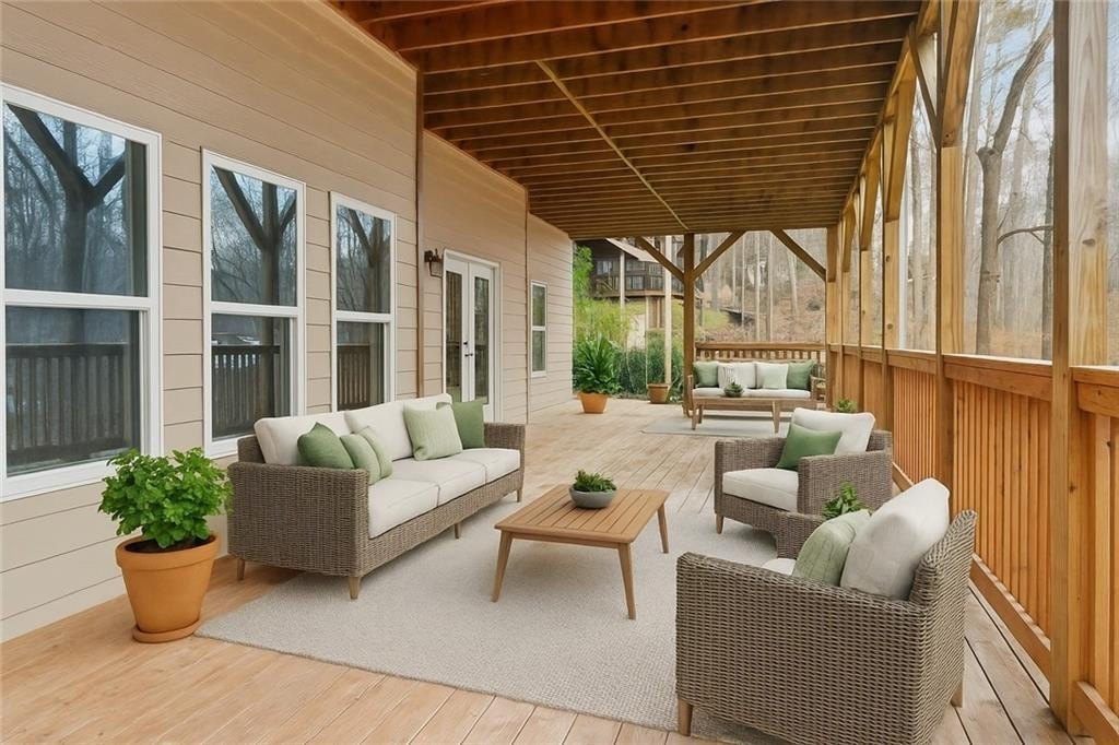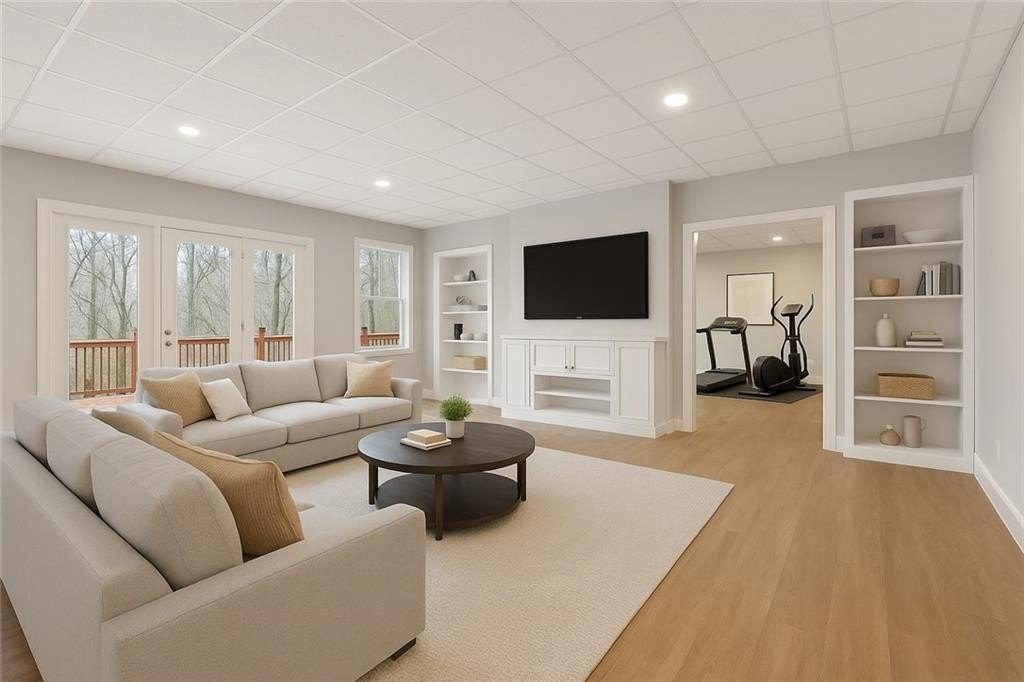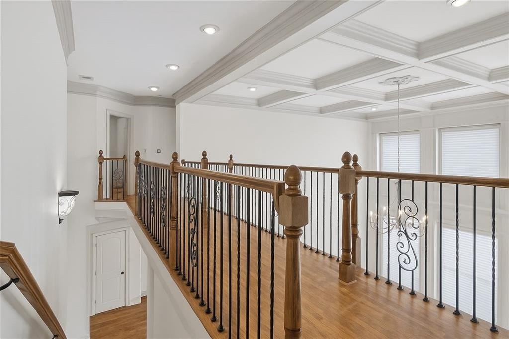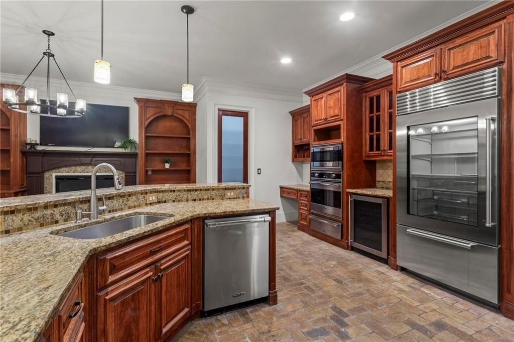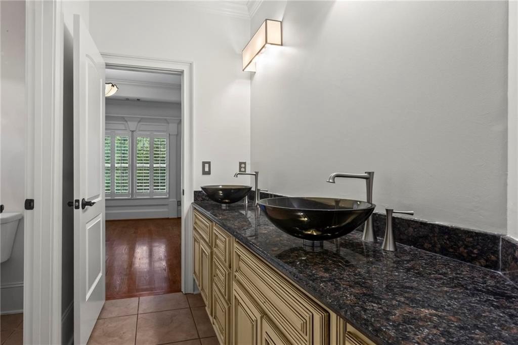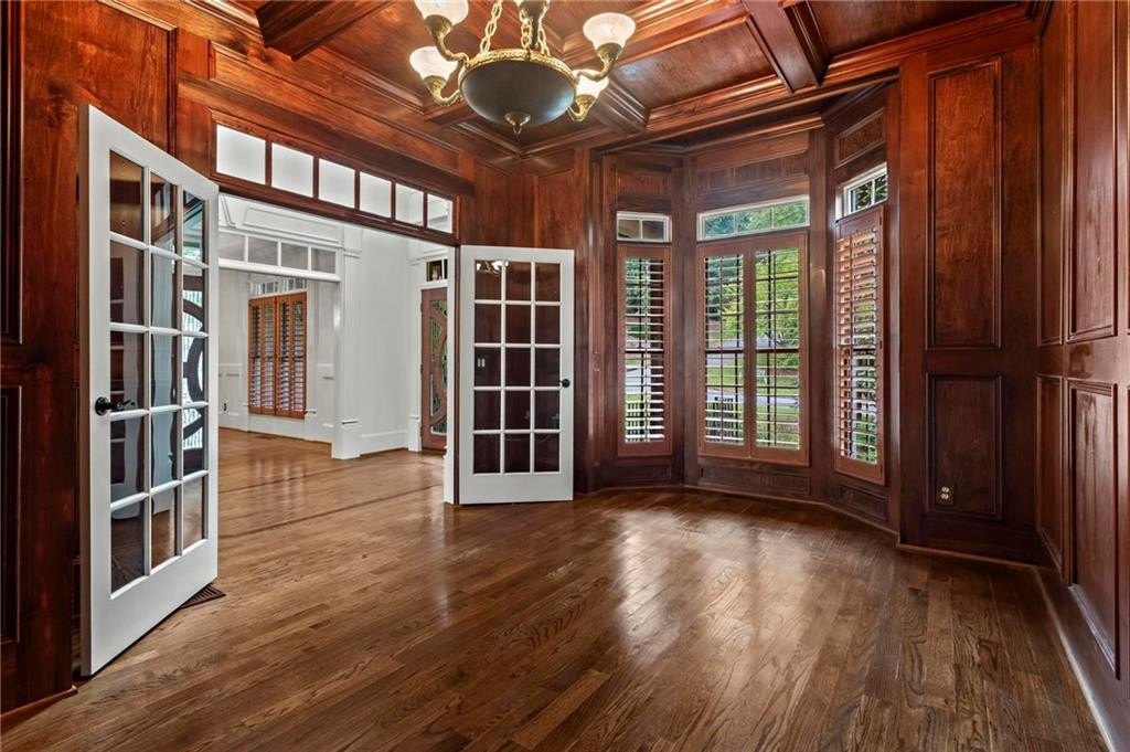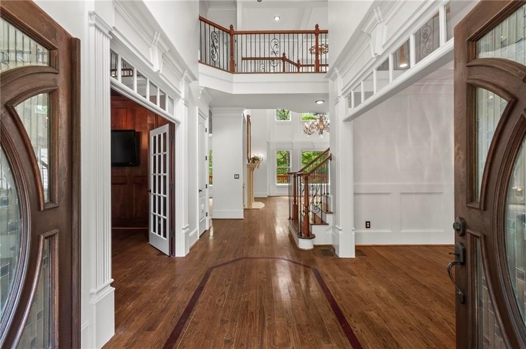Freshly painted in a timeless neutral palette, this updated luxury residence in the coveted Hillgrove School District offers exceptional style and value. Nestled on a serene, wooded acre in prestigious McNeel Farms, the home features refined craftsmanship, designer finishes, and soaring 10-foot ceilings on the main and upper levels with 12-foot ceilings in the basement.The dramatic two-story foyer opens to an elegant study and banquet-sized dining room. A breathtaking Great Room with floor-to-ceiling windows, custom fireplace, built-ins, and 20-foot coffered ceiling anchors the home. The chef’s kitchen boasts Viking appliances, Sub-Zero refrigerator, 6-burner range, custom cabinetry, brick flooring, and a walk-in pantry, flowing seamlessly into the fireside Keeping Room and cedar-paneled enclosed porch and open deck. A main-level ensuite doubles as a home office with peaceful backyard views. Upstairs, the Primary Suite offers a fireplace, spa-style bath with dual vanities, Jacuzzi tub, walk-in shower, and custom closet. Three additional bedrooms include one ensuite and a Jack-and-Jill, all with Jacuzzi tubs and designer details. A spacious laundry with custom cabinetry and soaking sink completes the level. Two daylight terrace levels—framed, plumbed, and with French door walkouts—offer endless possibilities. Recent upgrades include a Rinnai tankless water heater, 6 year old roof, and HVAC systems. Just minutes from Cheatham Hill Park and trails, this move-in-ready home combines timeless elegance with room to grow. Motivated seller, voluntary HOA, and no flood insurance required.